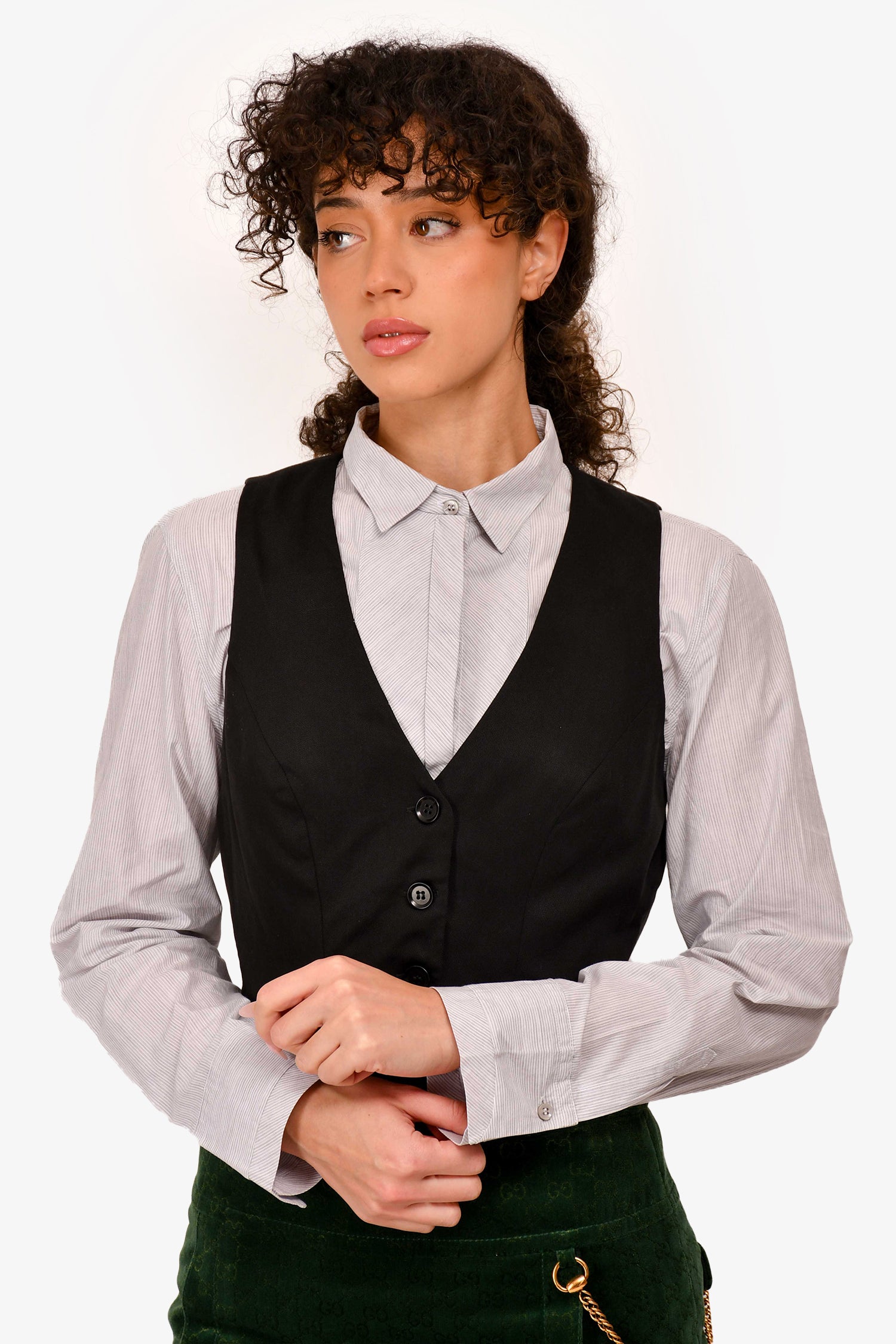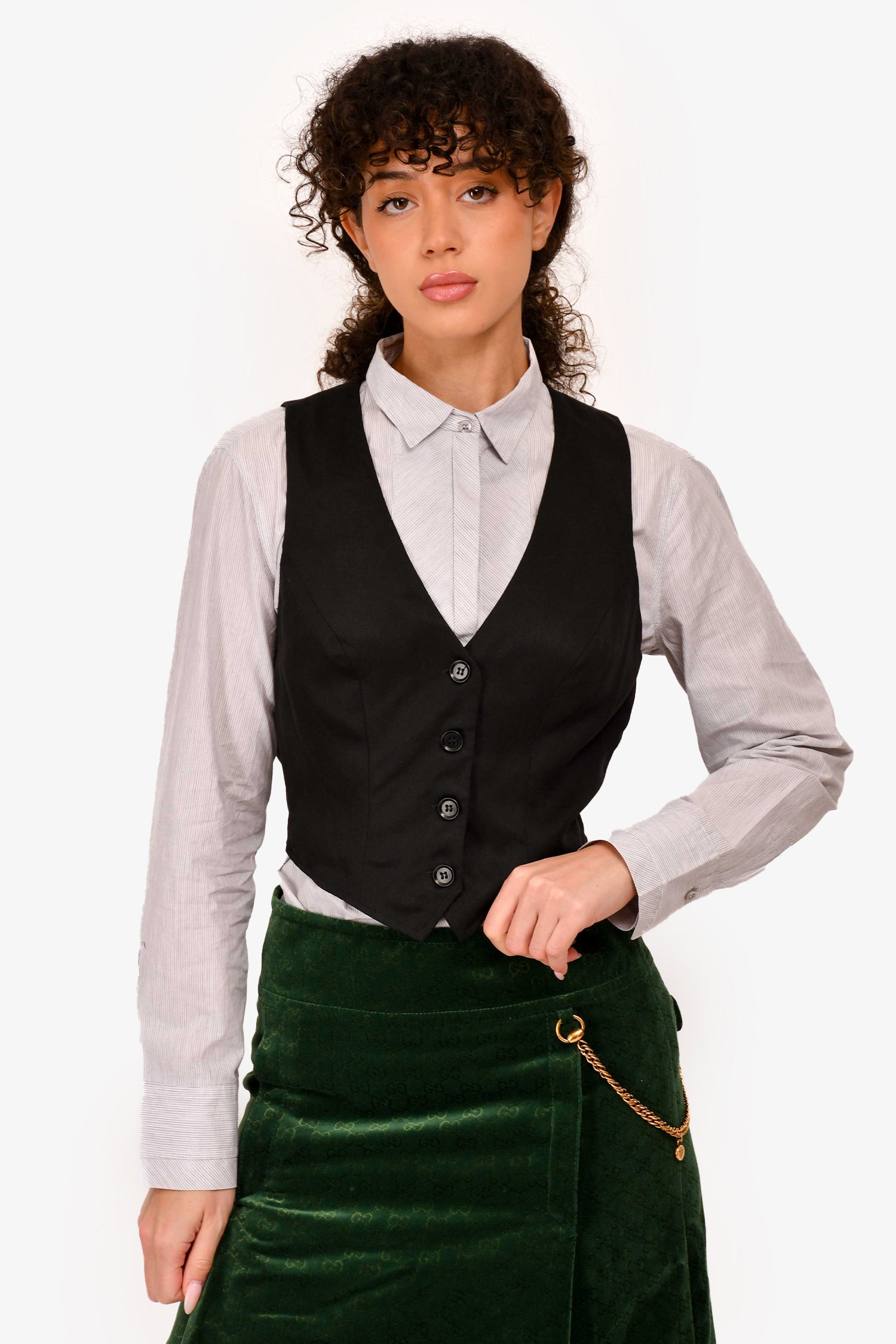 Refresh availabilityReformation Black Button Up Vest Jacket. Single breasted front closure. Tonal stitching.