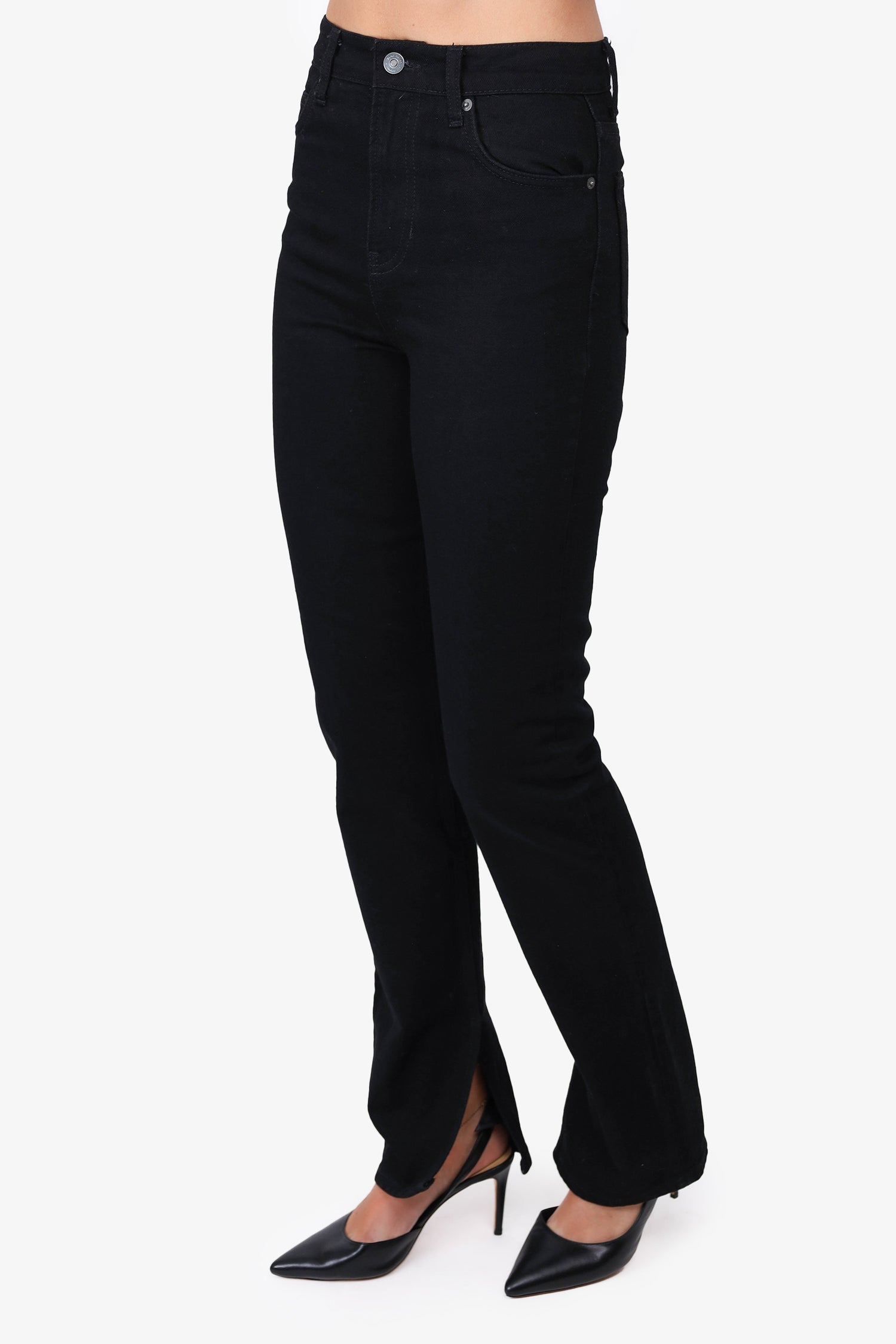 Reformation Black Denim High Waisted 'Liza' Slit Hem Jeans Size 25