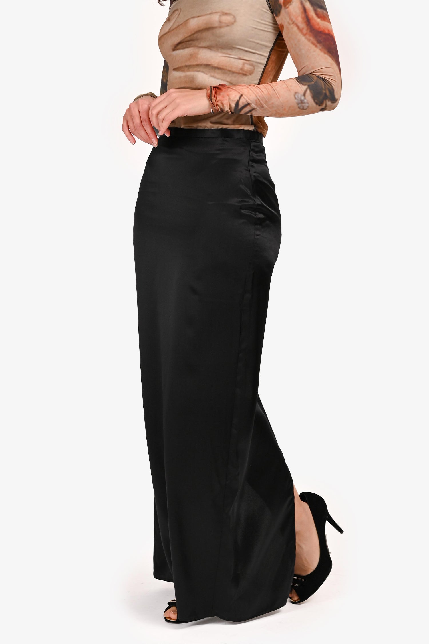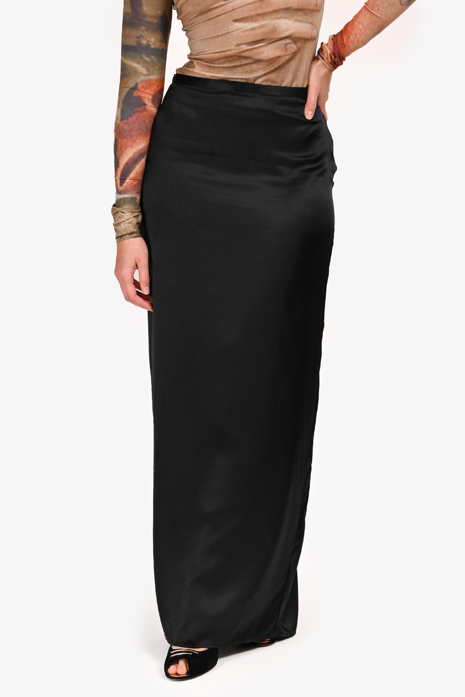 Refresh availabilityReformation Black Silk Maxi Skirt. Pull-on. Concealed rear zip closure. High-rise waist with straight silhouette and slit in the back. Unlined. Tonal stitching.