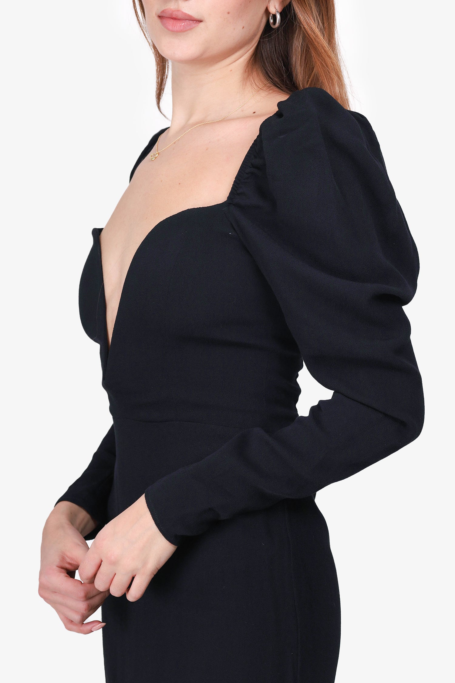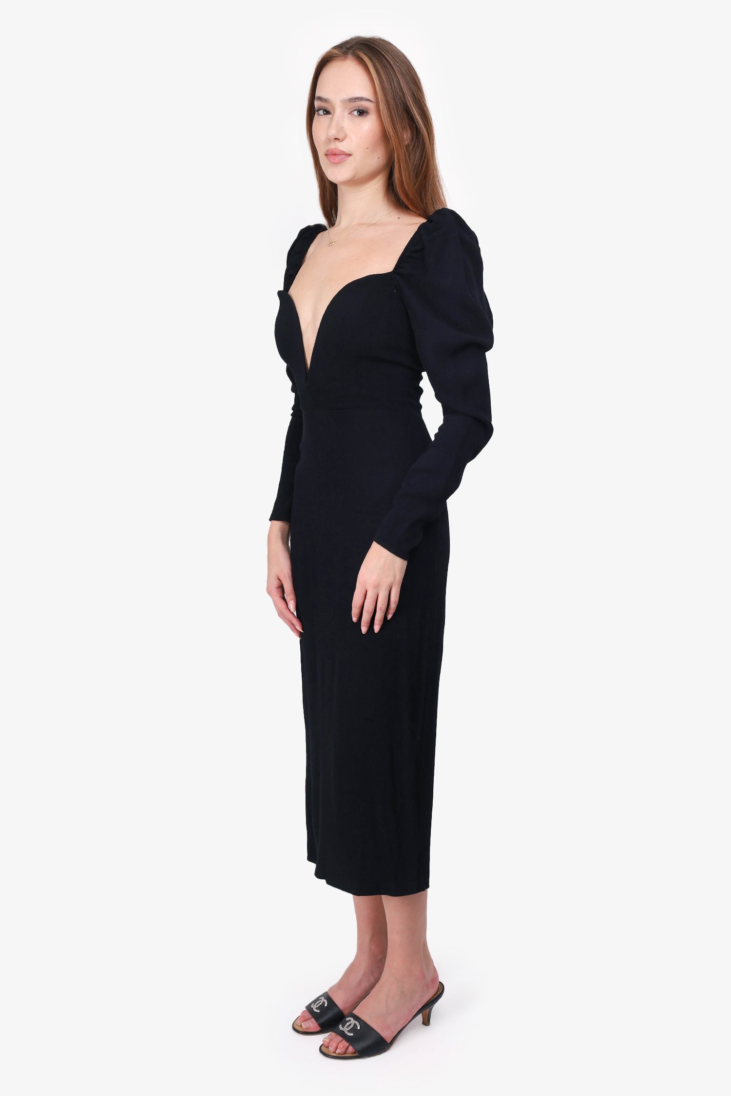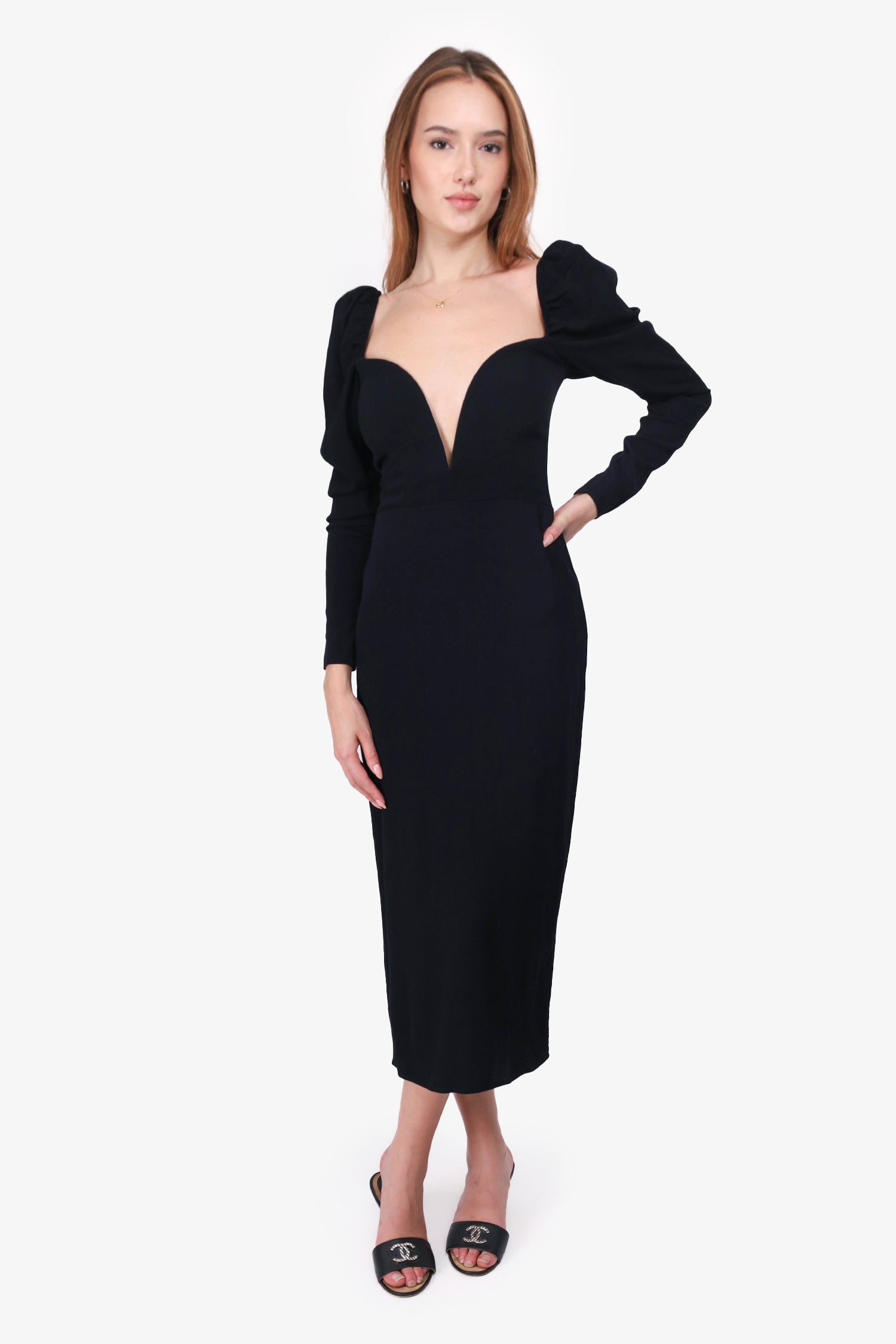 Refresh availabilityReformation Black Sweetheart Neckline Dress. Rear zip closure. Long sleeves. Tonal stitching.