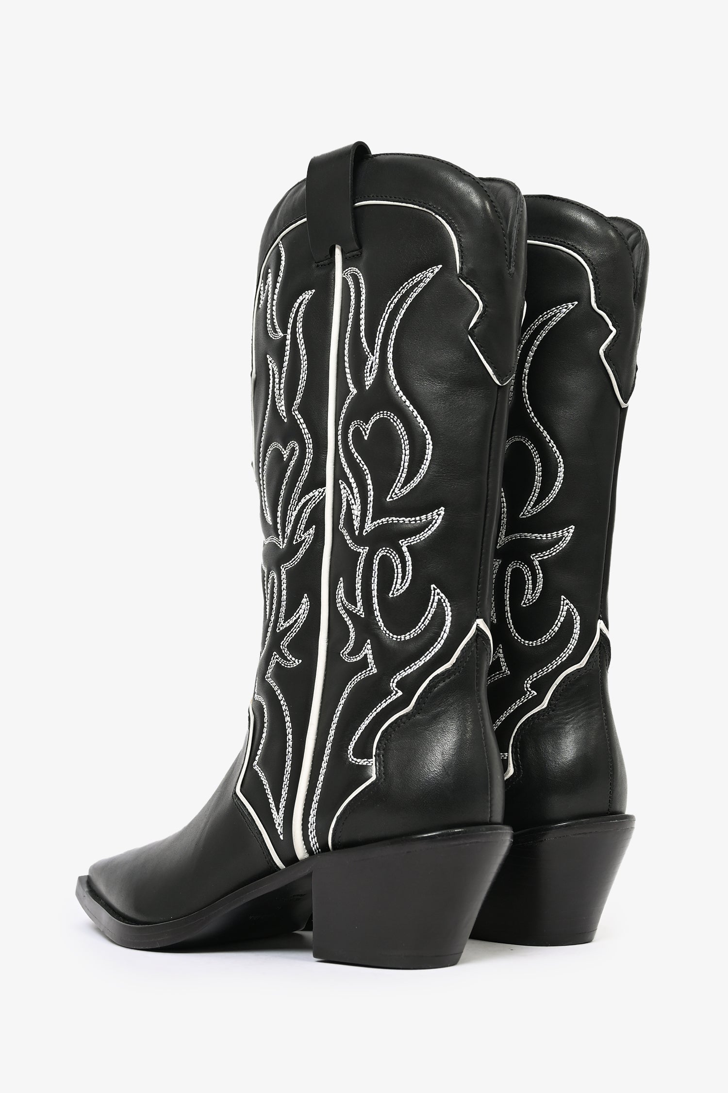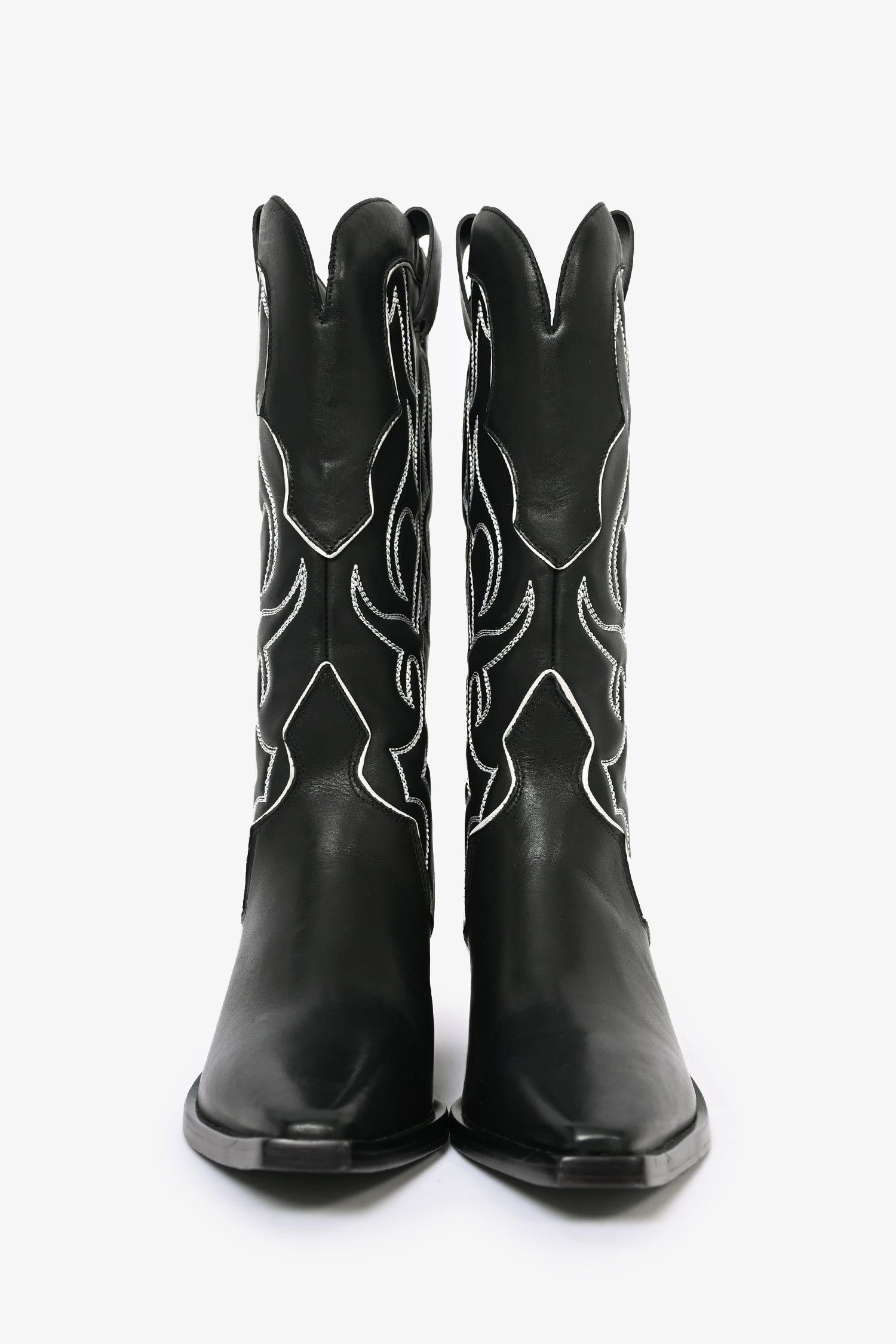 Reformation Black/White Leather 'Olive Western' Boots Size 9