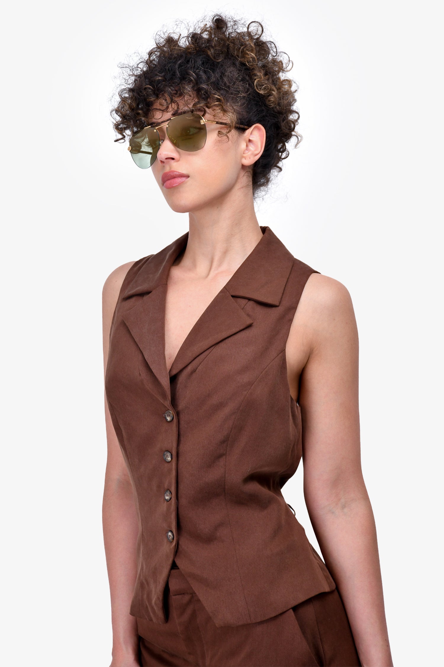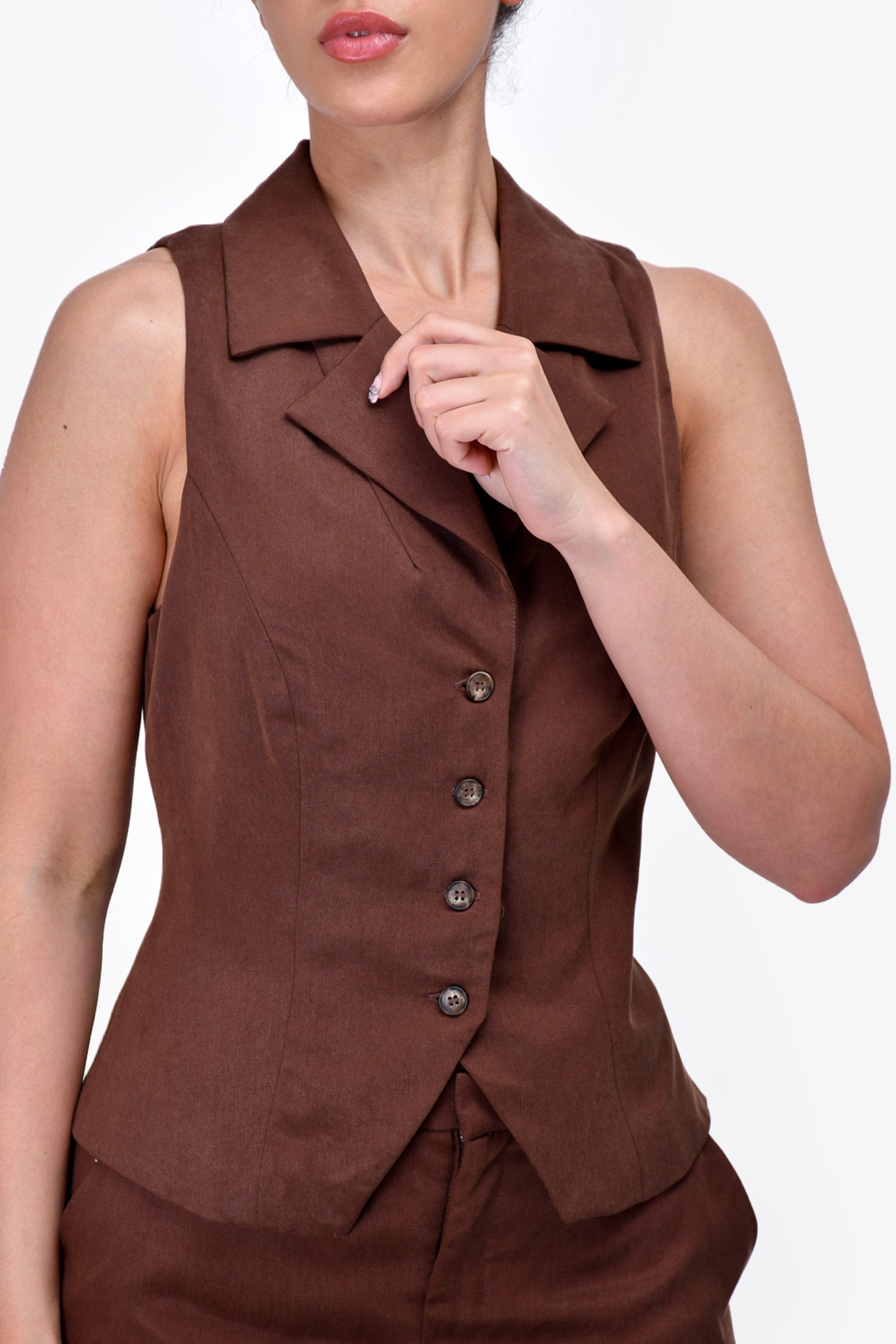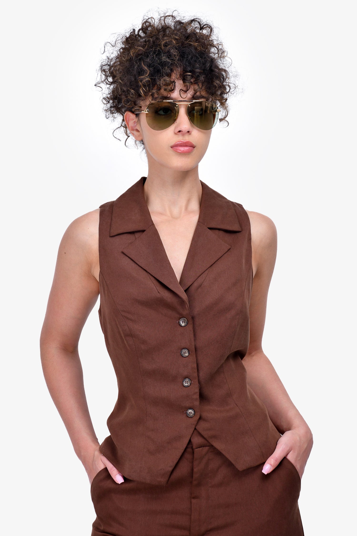 Refresh availabilityReformation Brown Sleeveless Vest. V-neck. Front button-up closure. Lined.