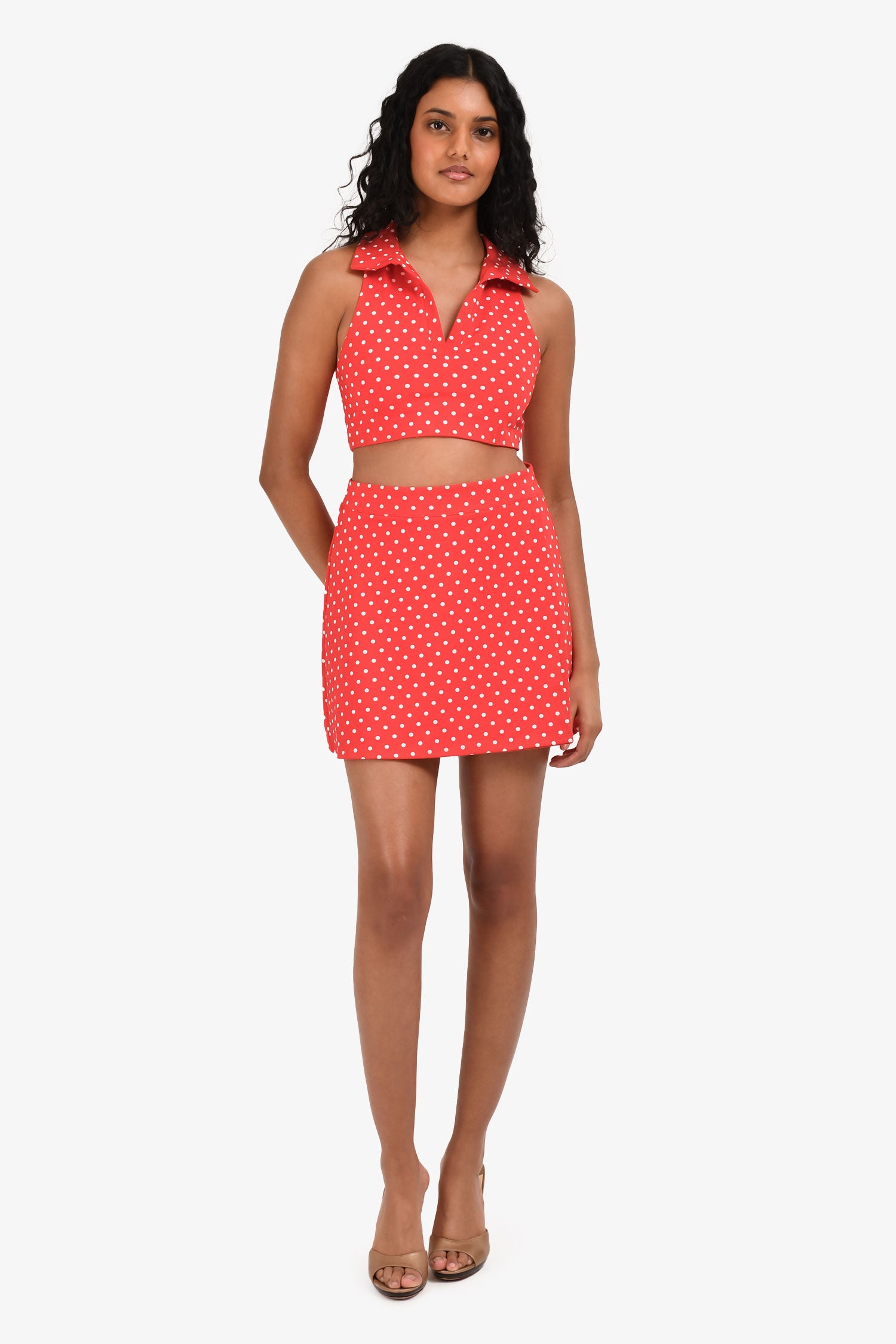 Reformation Red White Polk-a-Dot Collared Sleeveless Active Wear Crop Top Size S + Skirt Size M Set
