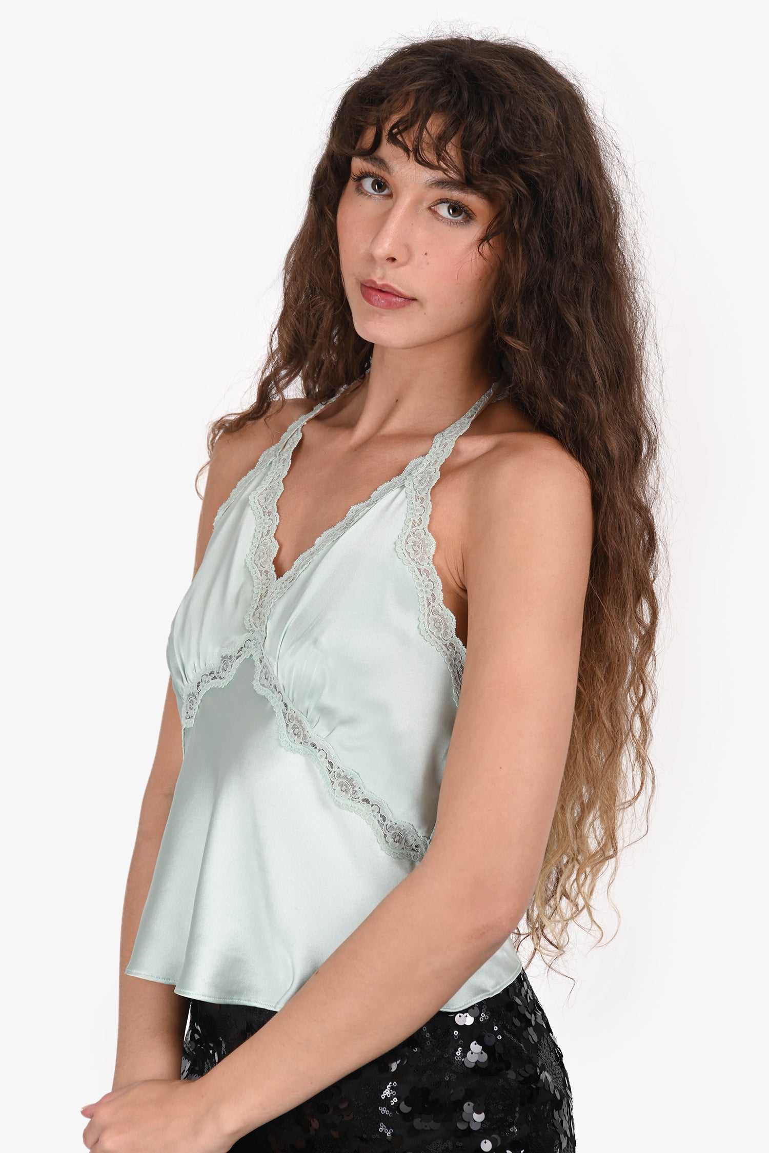 Reformation 'Sea Glass' Blue Silk 'Monica' Tank Top Size S