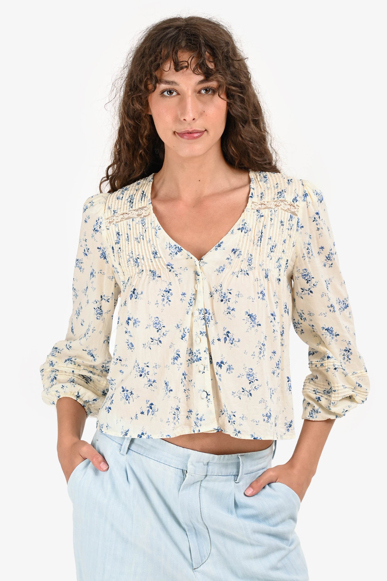 Reformation White/Blue Floral Long Sleeves Button Down Blouse Size XS