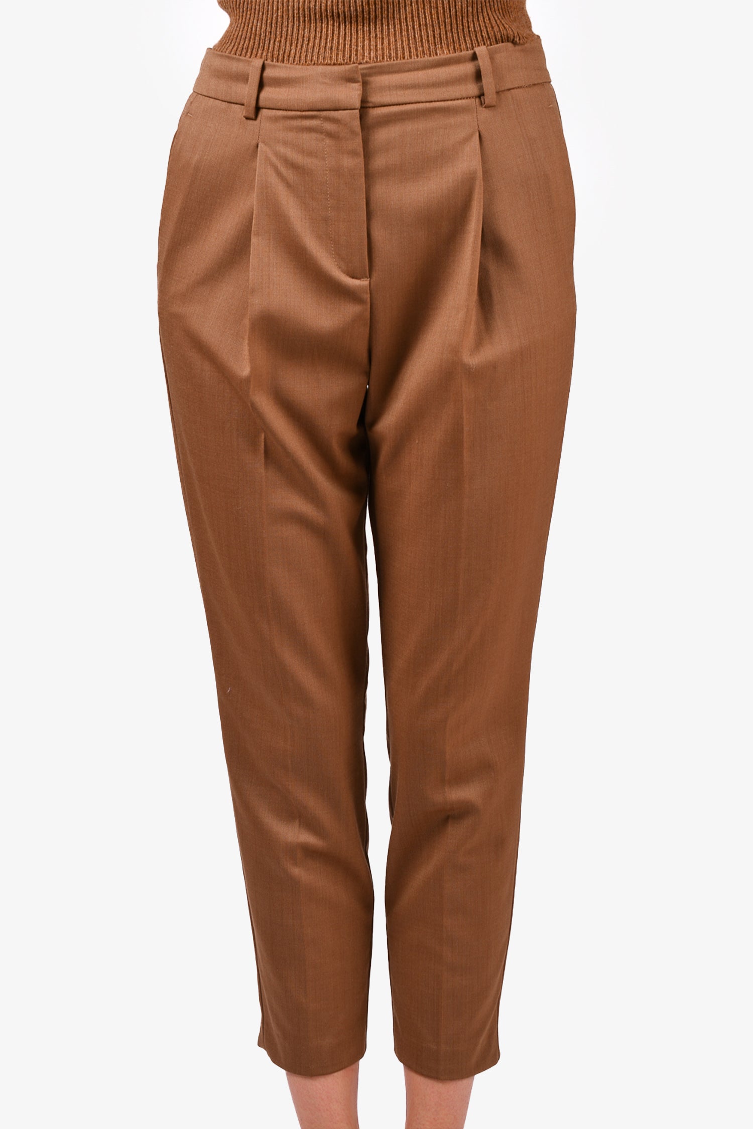 Refresh availabilityReiss Brown Suit Pants. Front zip and hook-up closure. Front pockets. Waist belt loops. Tonal stitching.