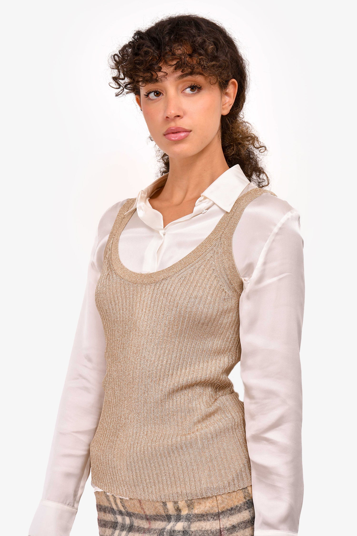 Refresh availabilityReiss Gold Shimmer Tank Top. Pull-on. Ribbed hem. Tonal stitching.