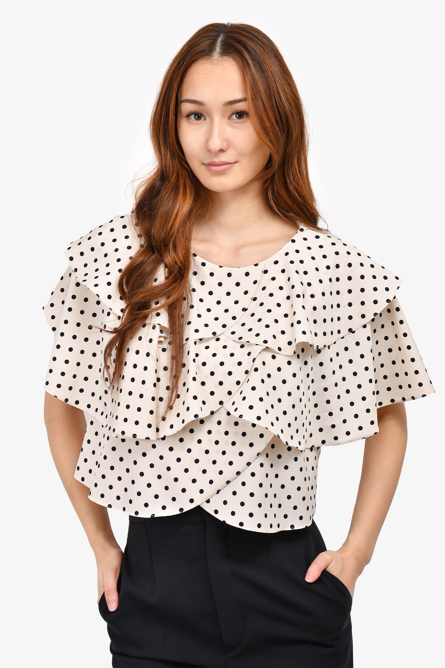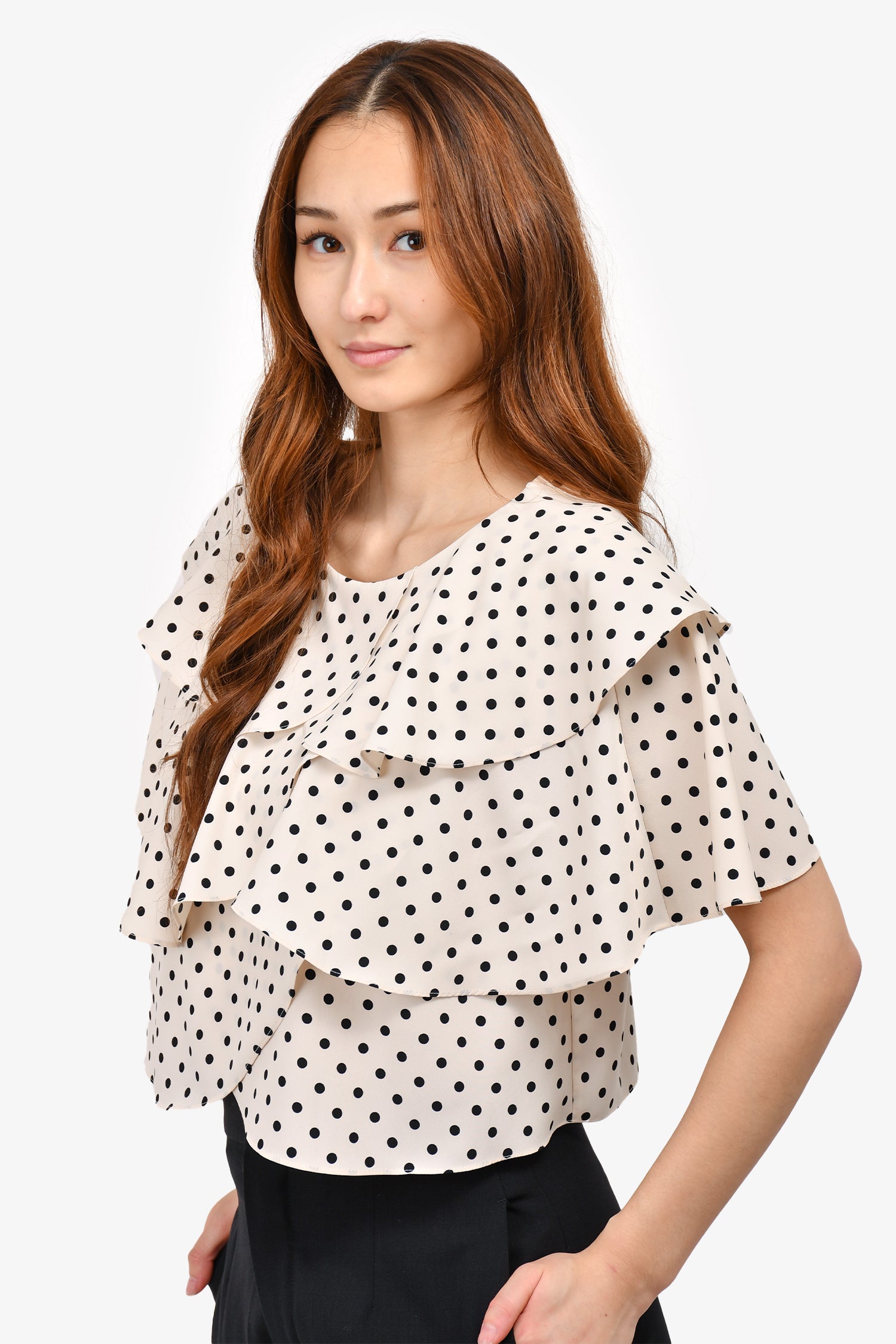 Refresh availabilityRejina Pyo White/Black Polka Dot Layered Cropped Top.