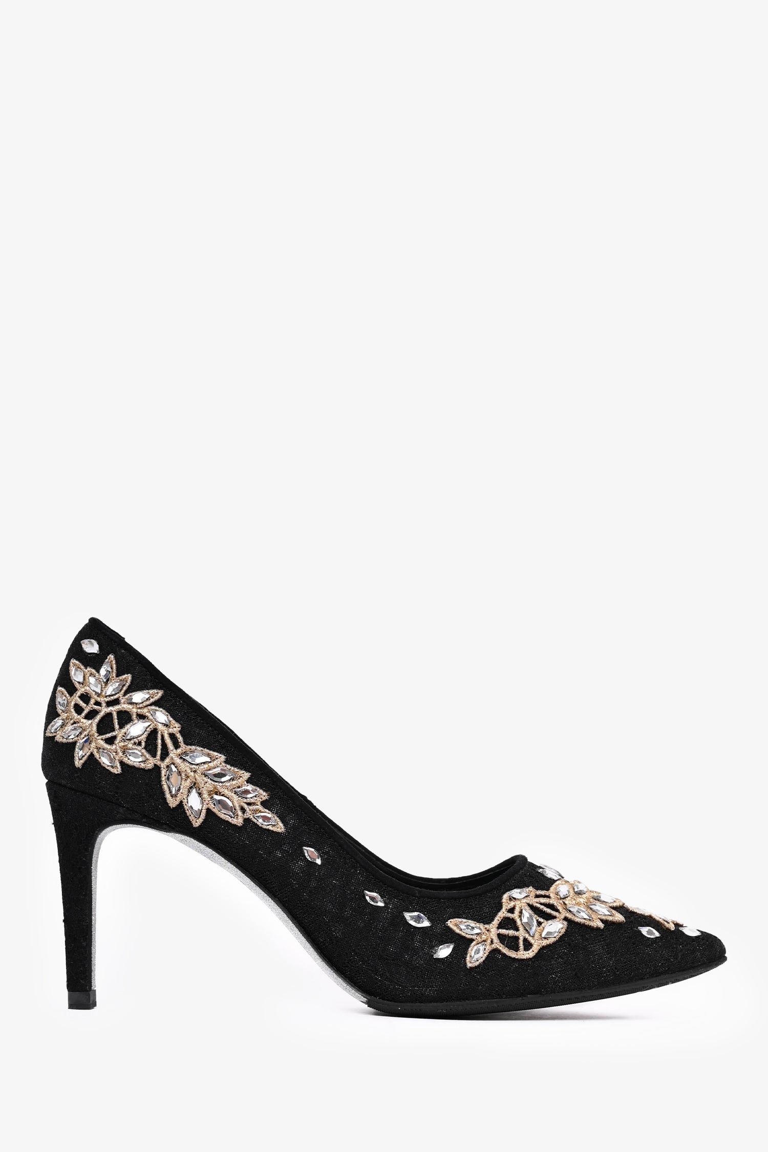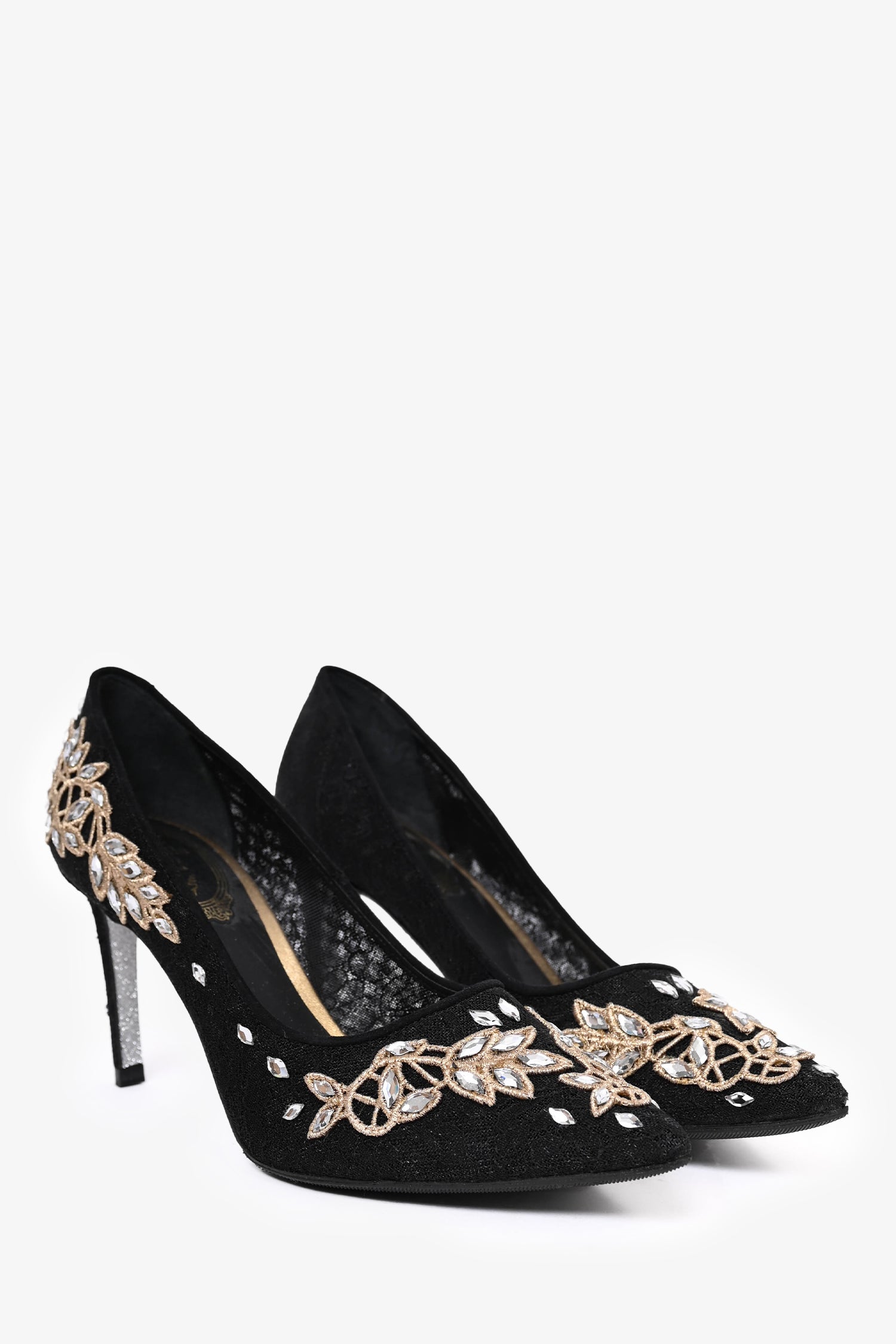 Rene Caovilla Black Gold/Crystal Embellished Heels Size 35.5