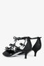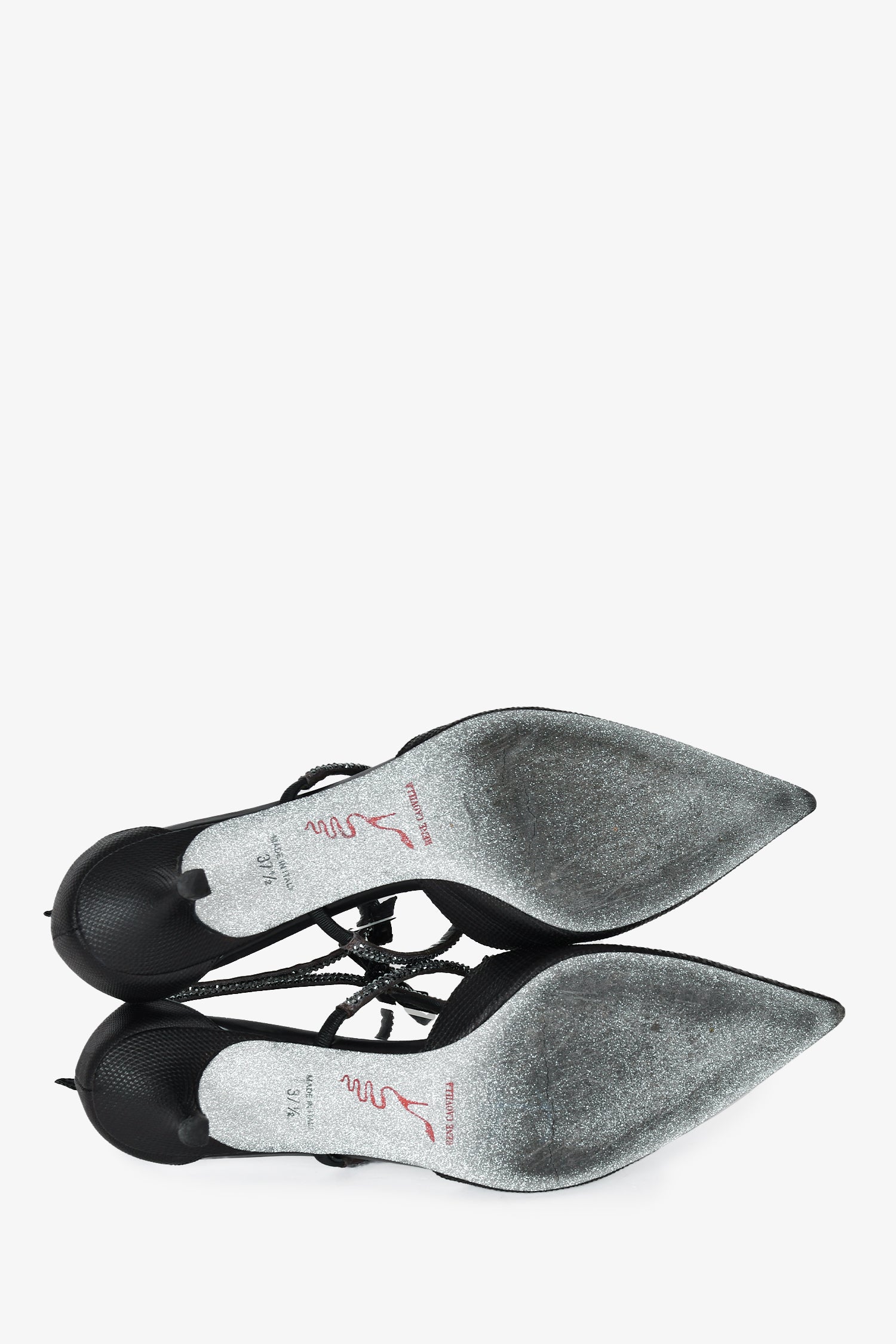 Rene Caovilla Black Leather Crystal Bow Embellished Karung Heels Size 37.5