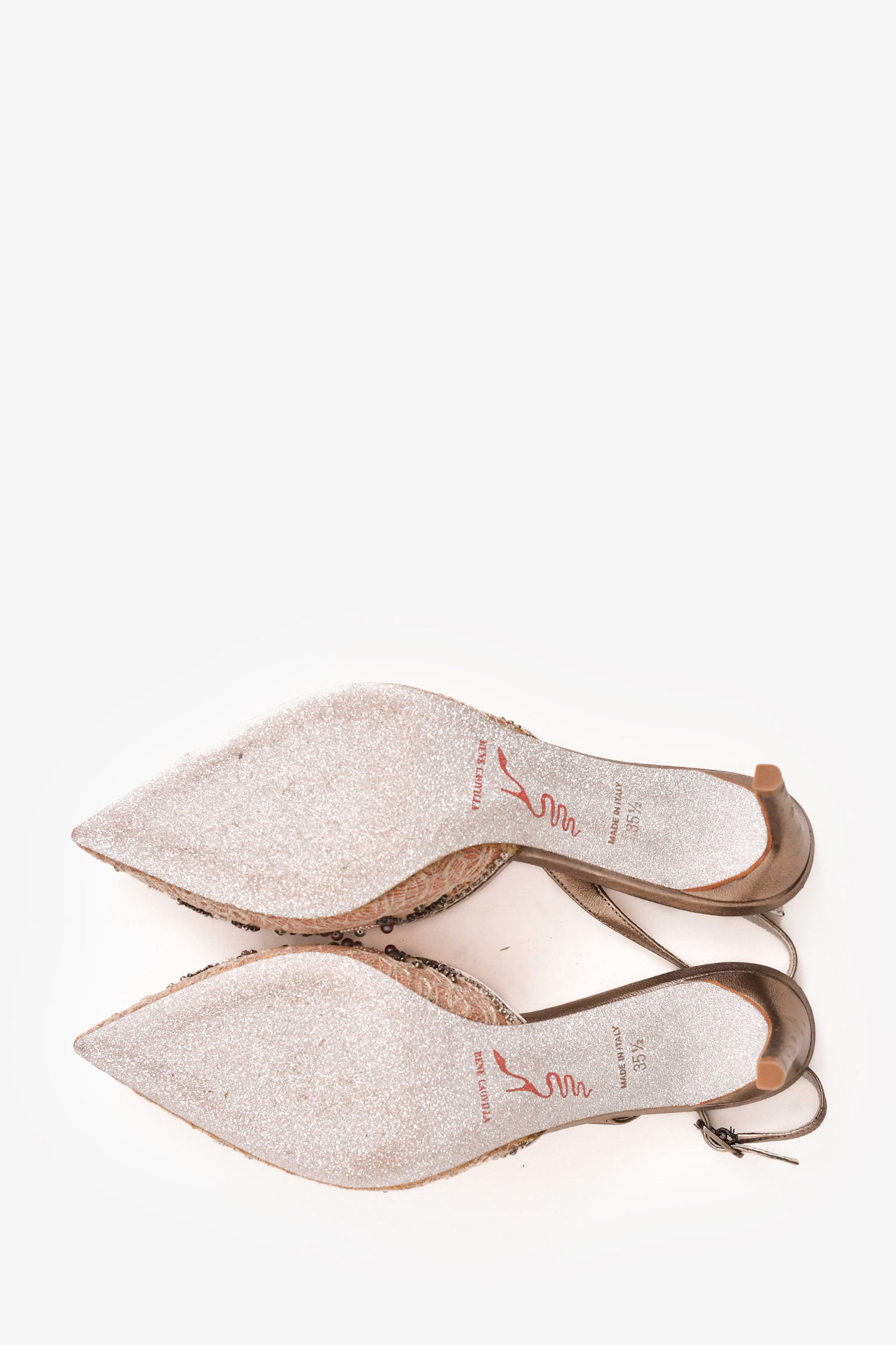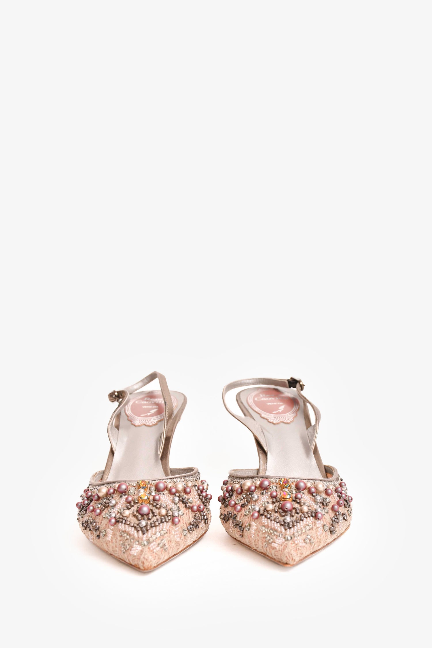 Rene Caovilla Pink/White Embellished Slingback Heels Size 35.5