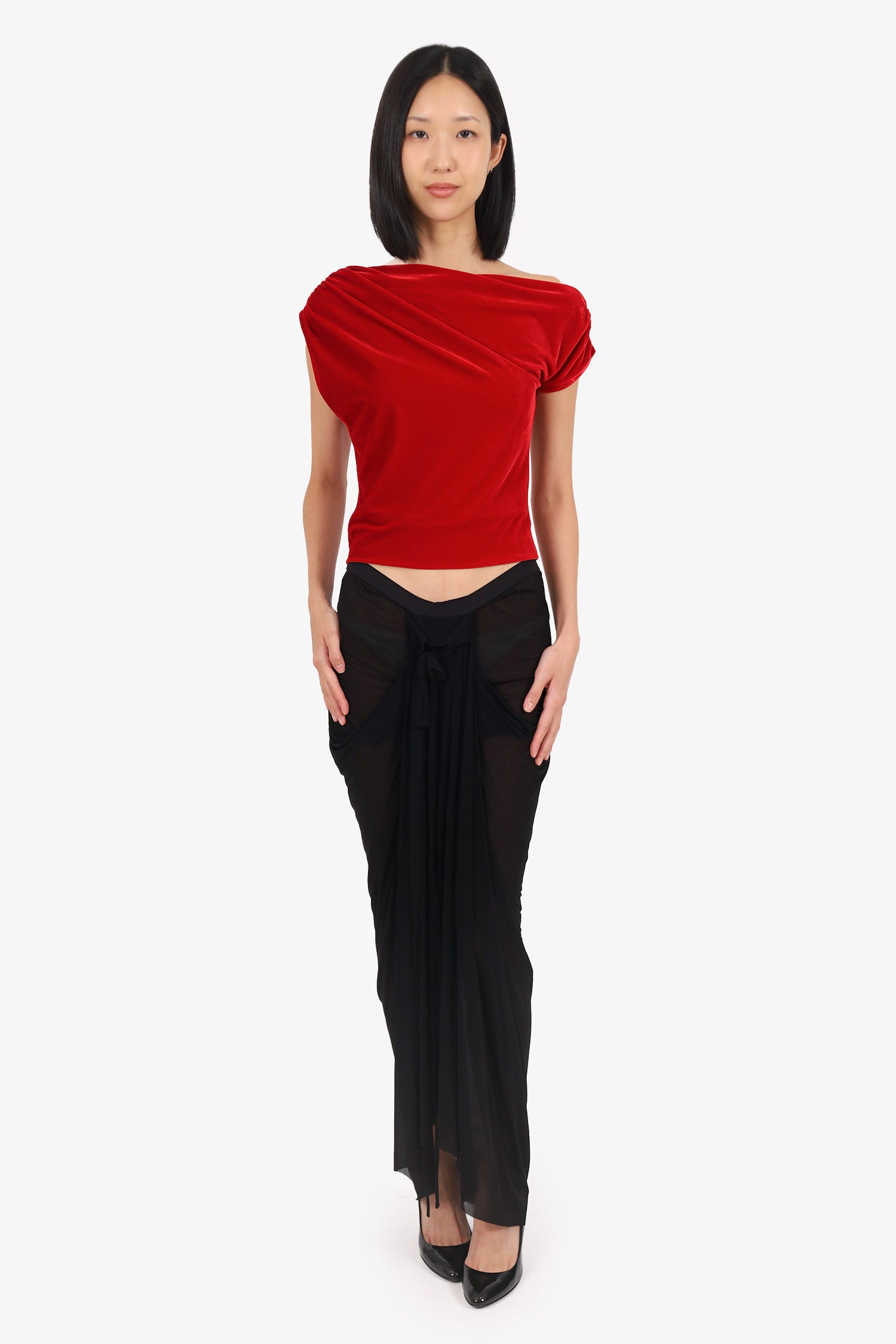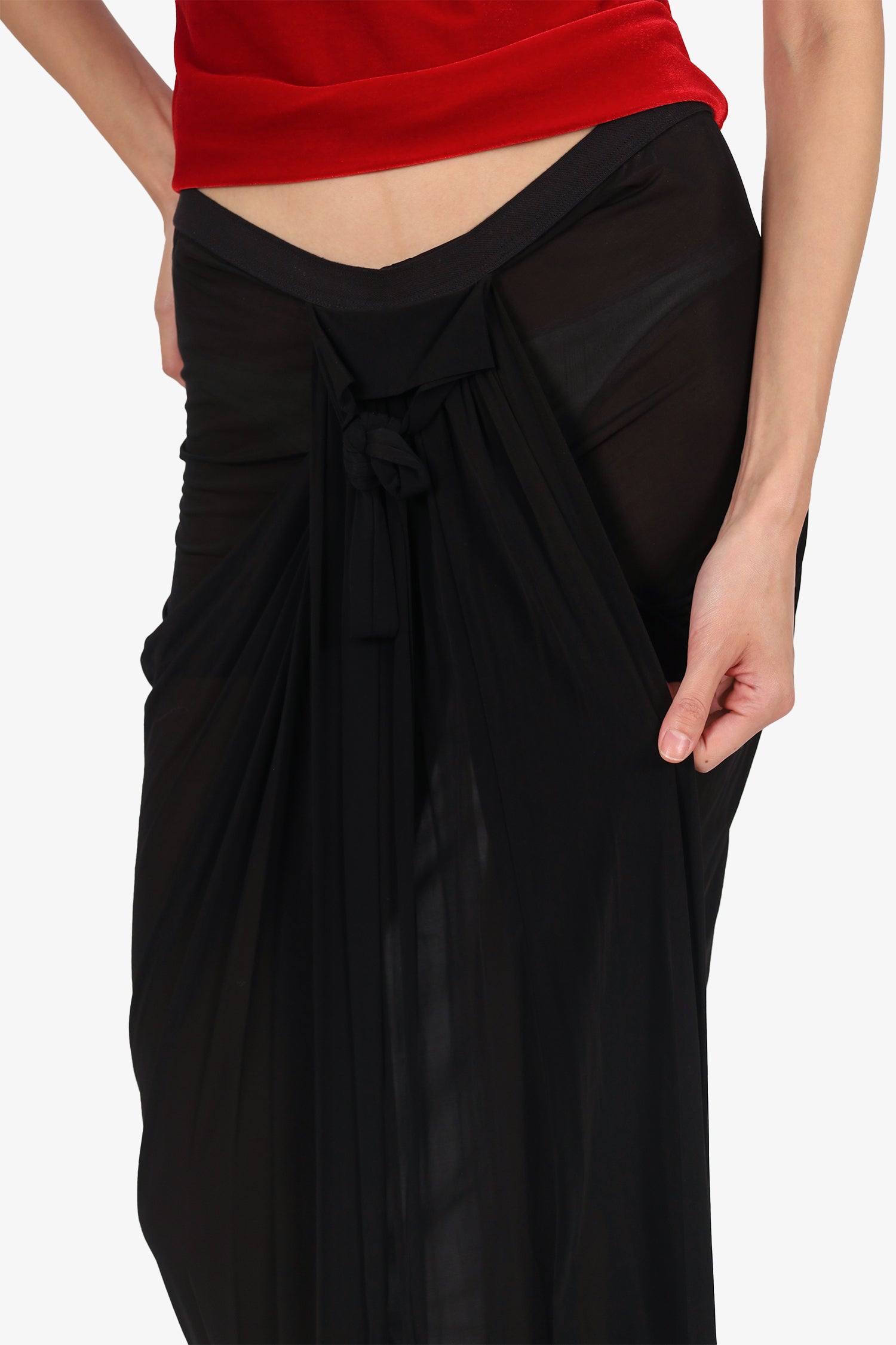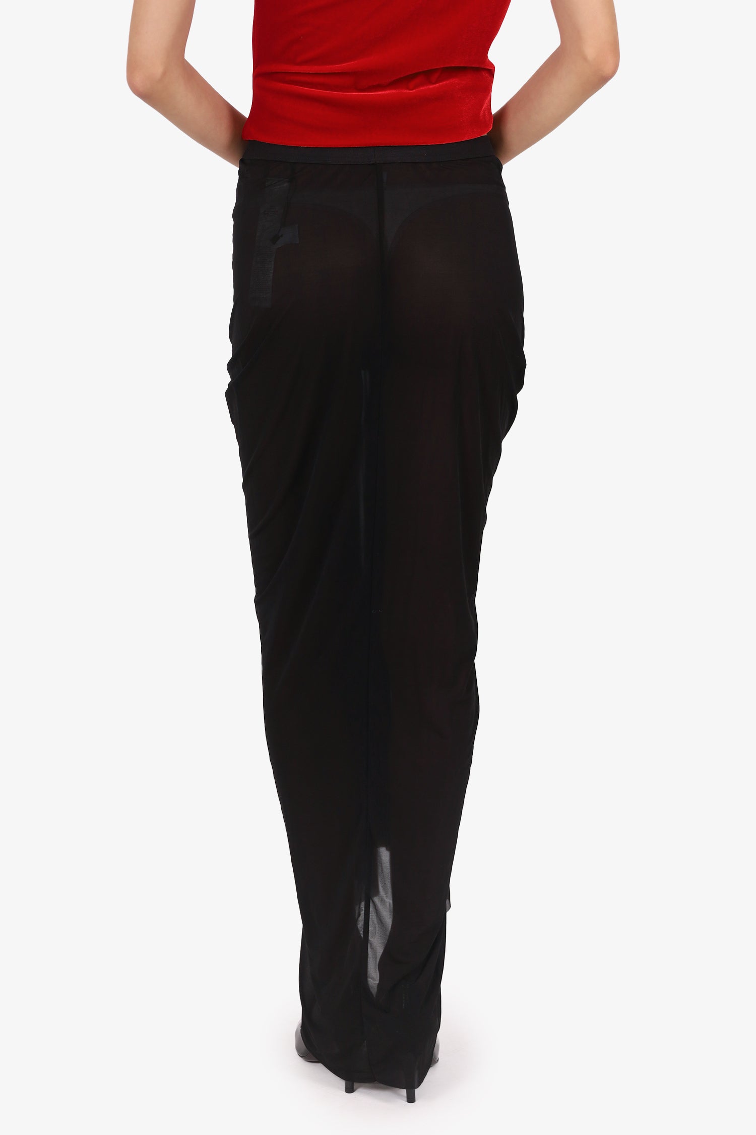 Refresh availabilityRick Owens Black Sheer Ruched Skirt. Slip-on. Elasticated waistband. Tonal stitching.