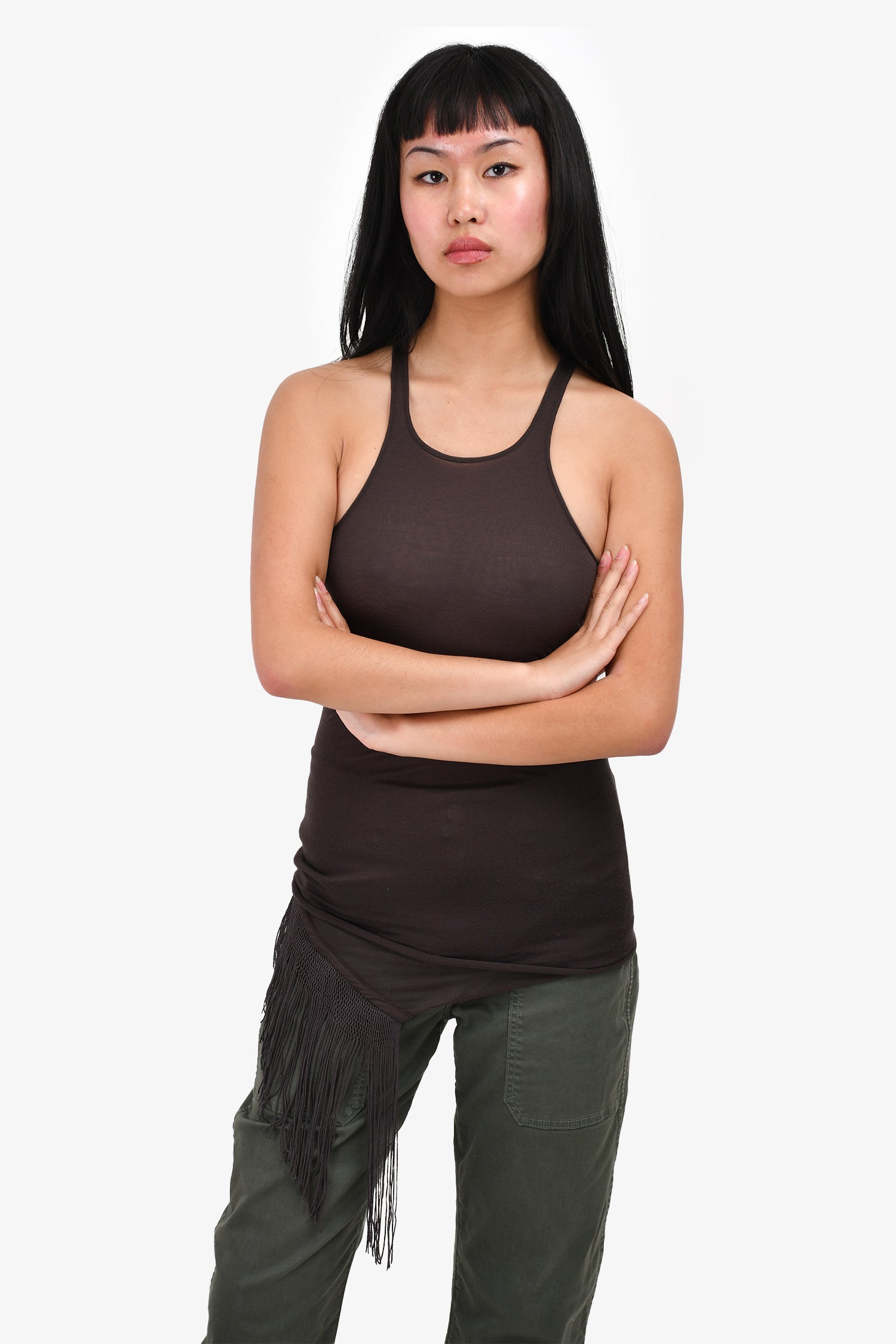 Rick Owens Brown Fringe Tank Top Size 8
