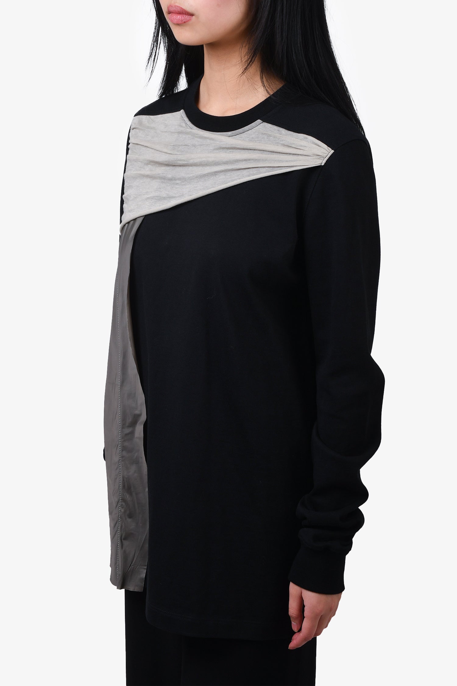 Rick Owens F/W18 Black/Grey Draped Detail T-Shirt Size 8 US