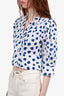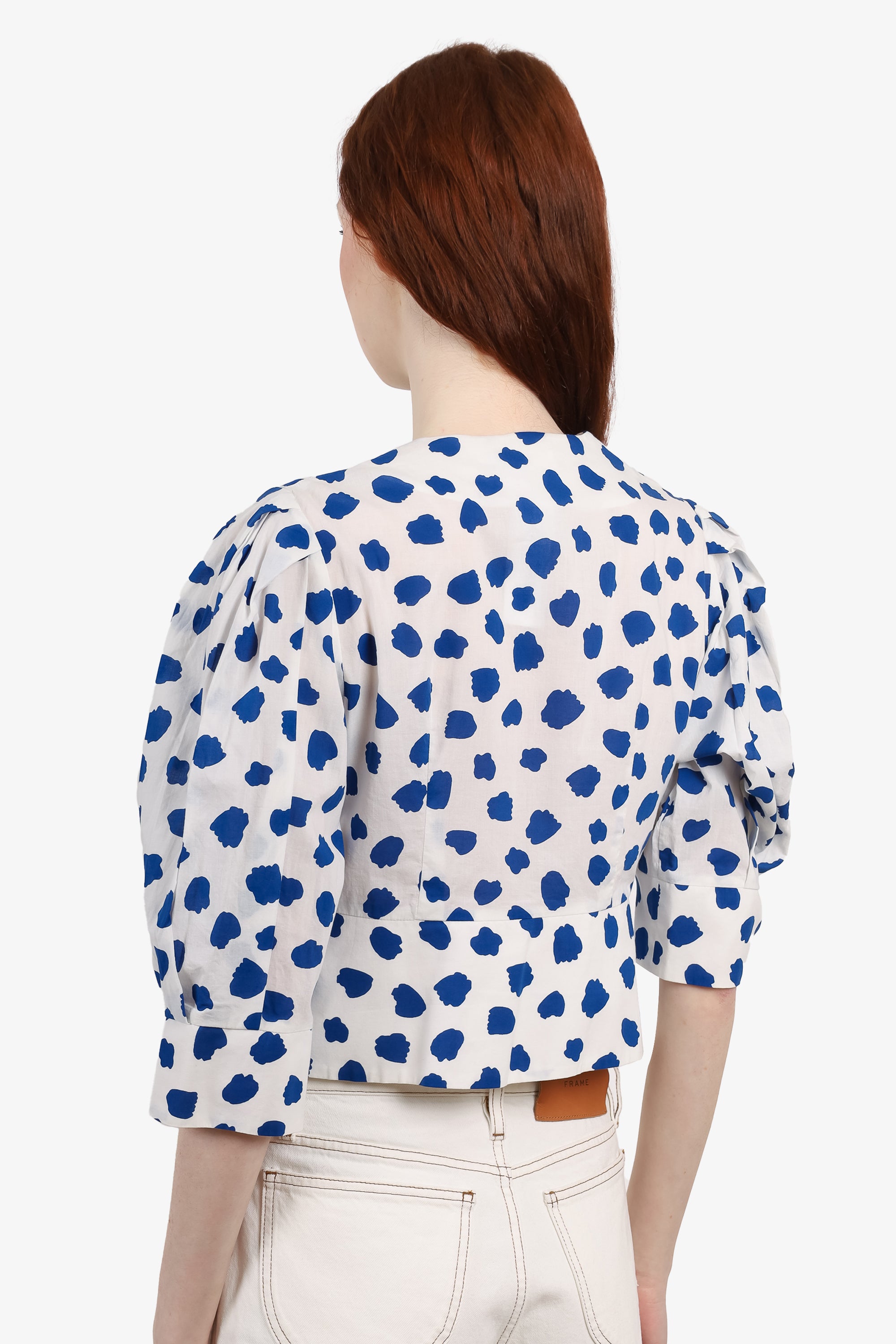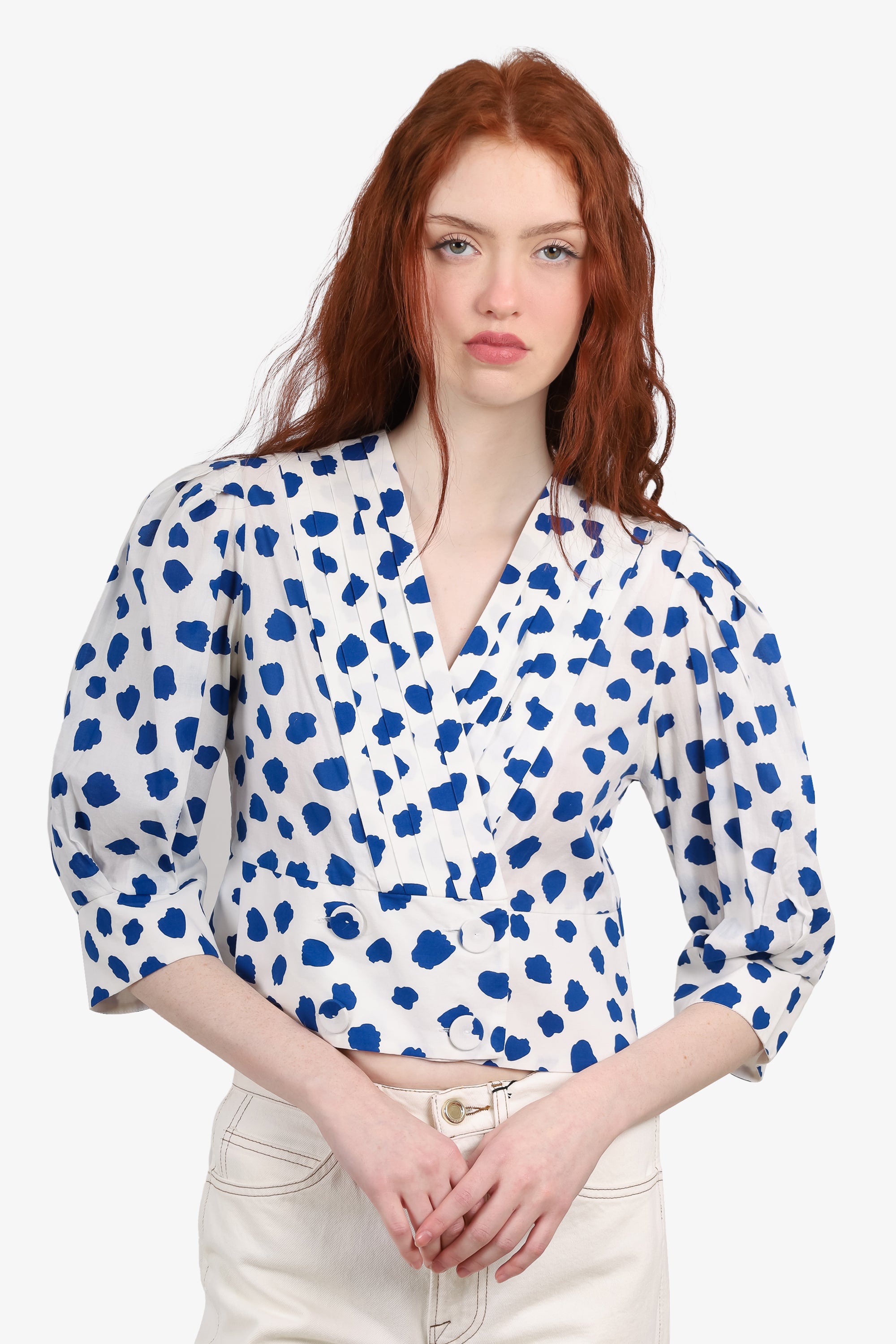 Rixo Blue/White Patterned 3/4 Sleeve Crop Top Size S