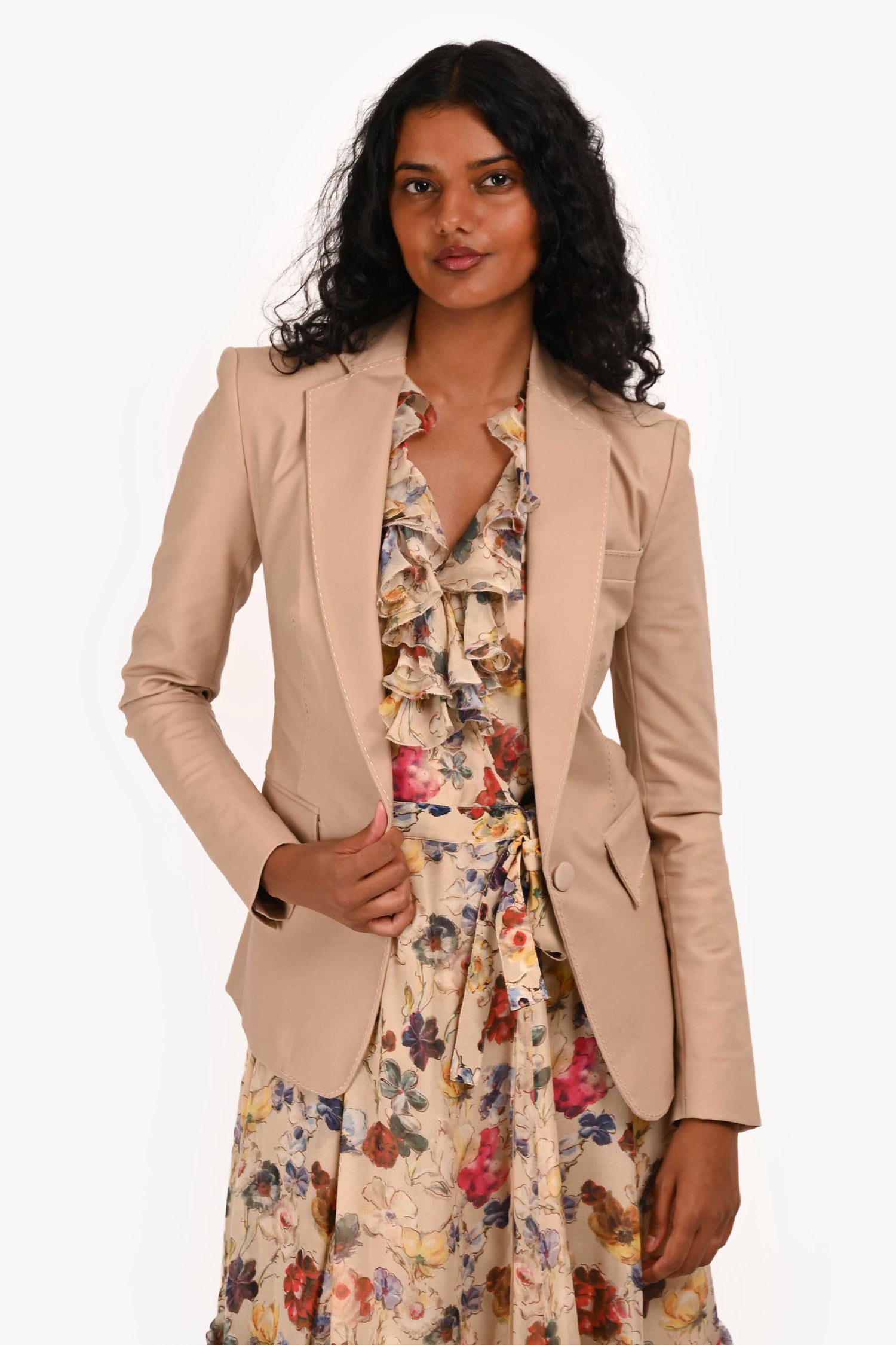 Refresh availabilityRobert Rodriguez Brown Stitch Detailed Blazer. Notched lapel collar. Front button closure. Long sleeves. Front flap pockets. Tonal stitching.