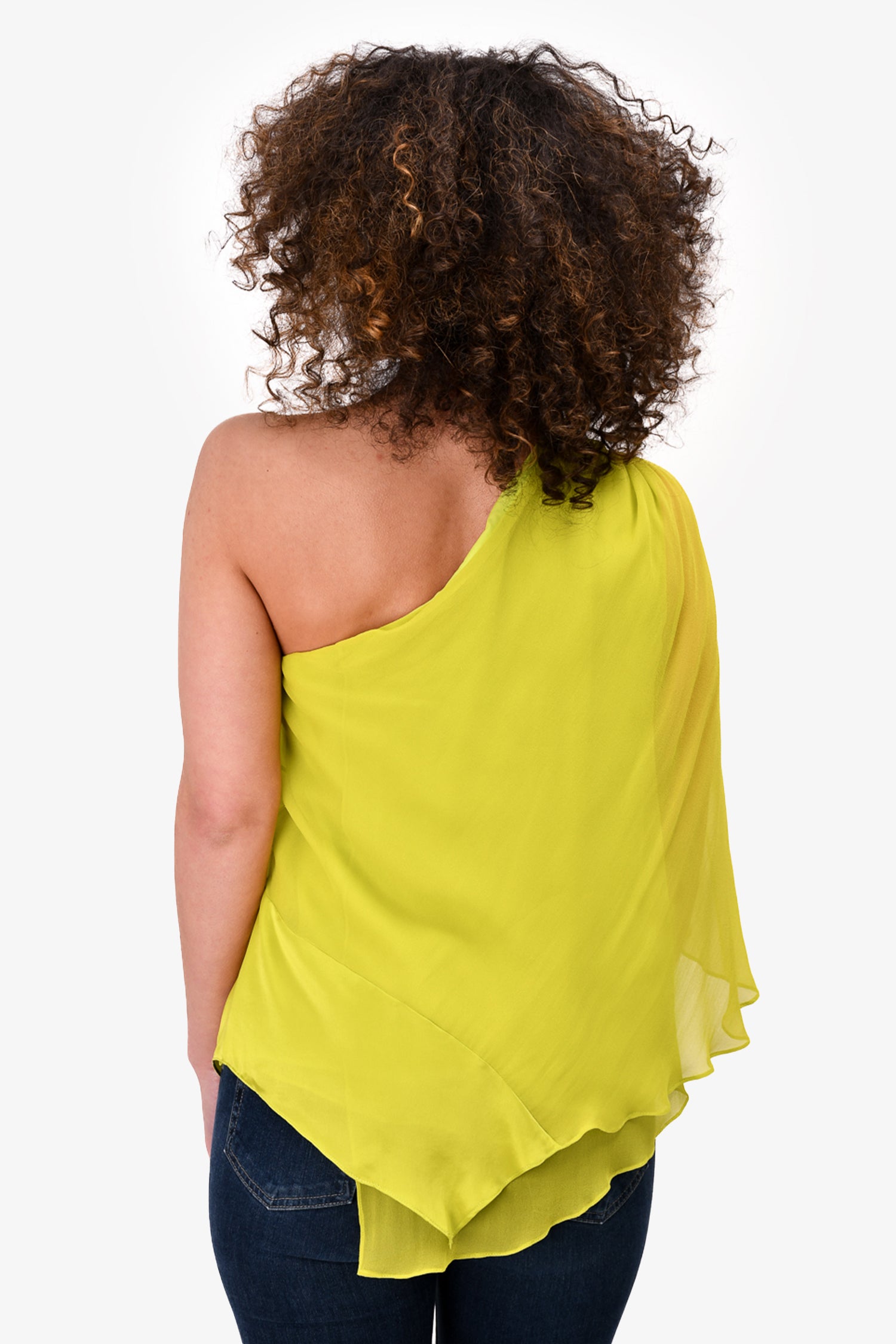 Refresh availabilityRobert Rodriguez Neon Green Silk One-Shoulder Blouse. Pull on. Lined. Asymmetrical hem.