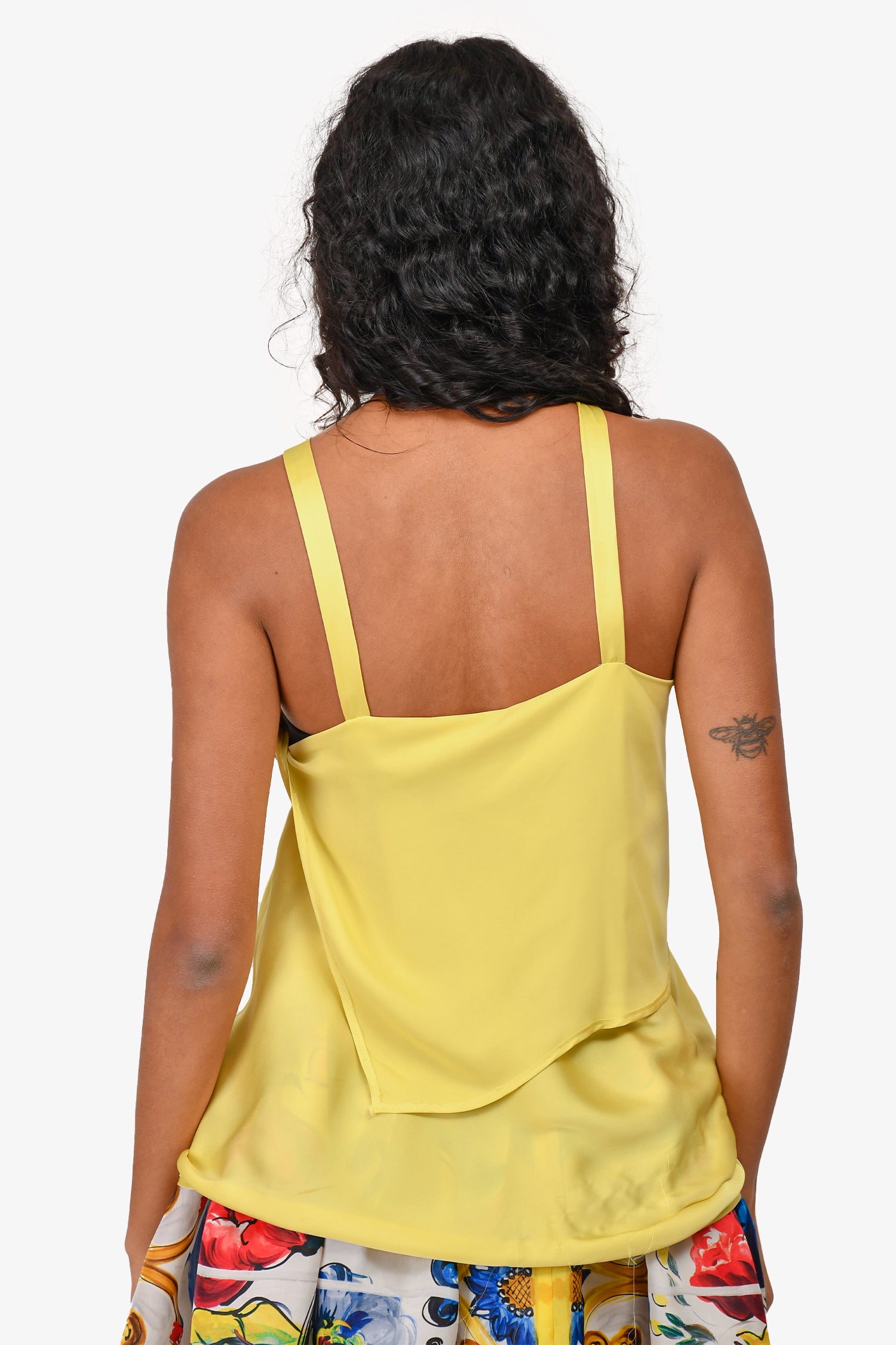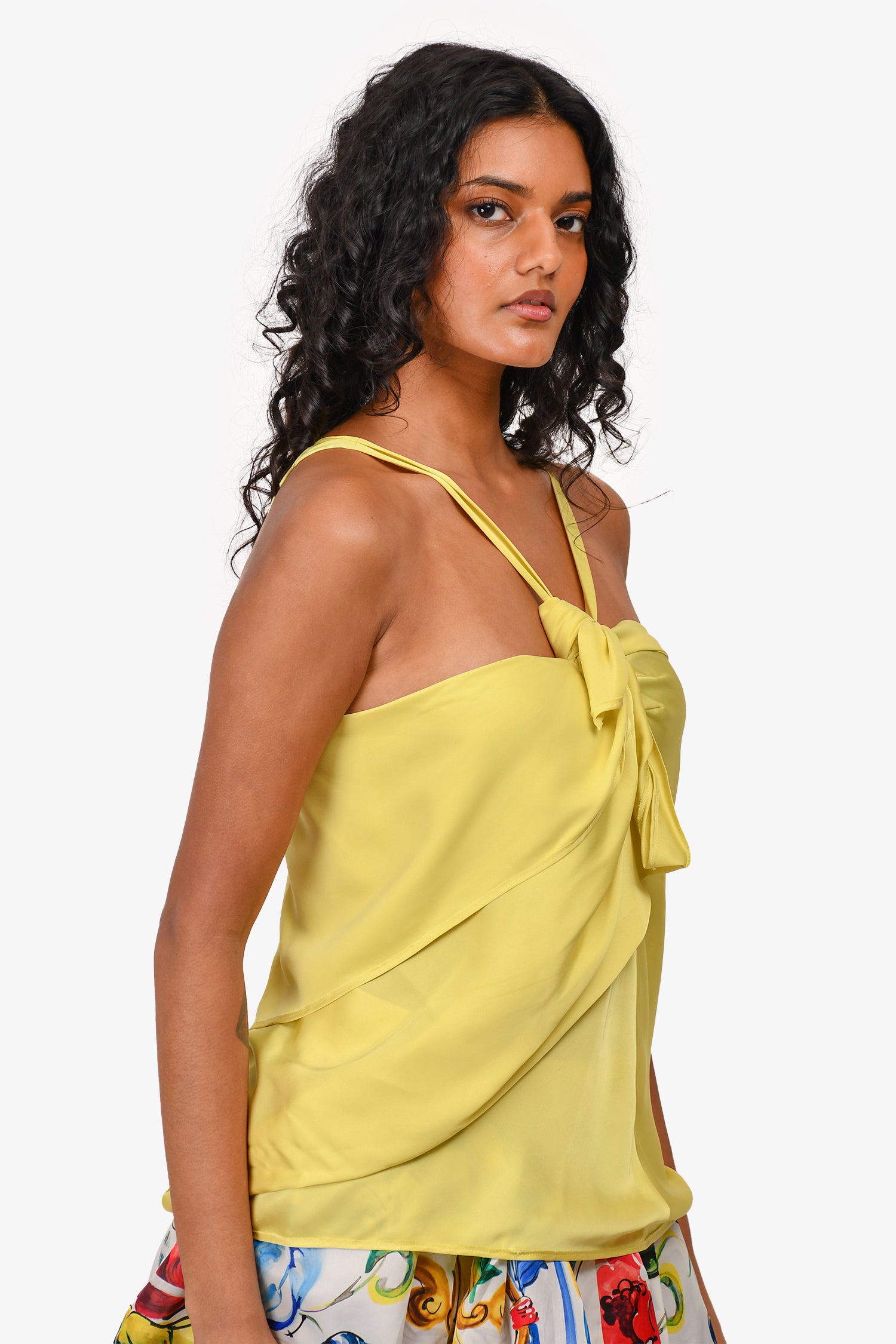 Refresh availabilityRobert Rodriguez Yellow Draped Tie Front Top. Back ribbon closure. Tonal stitching.