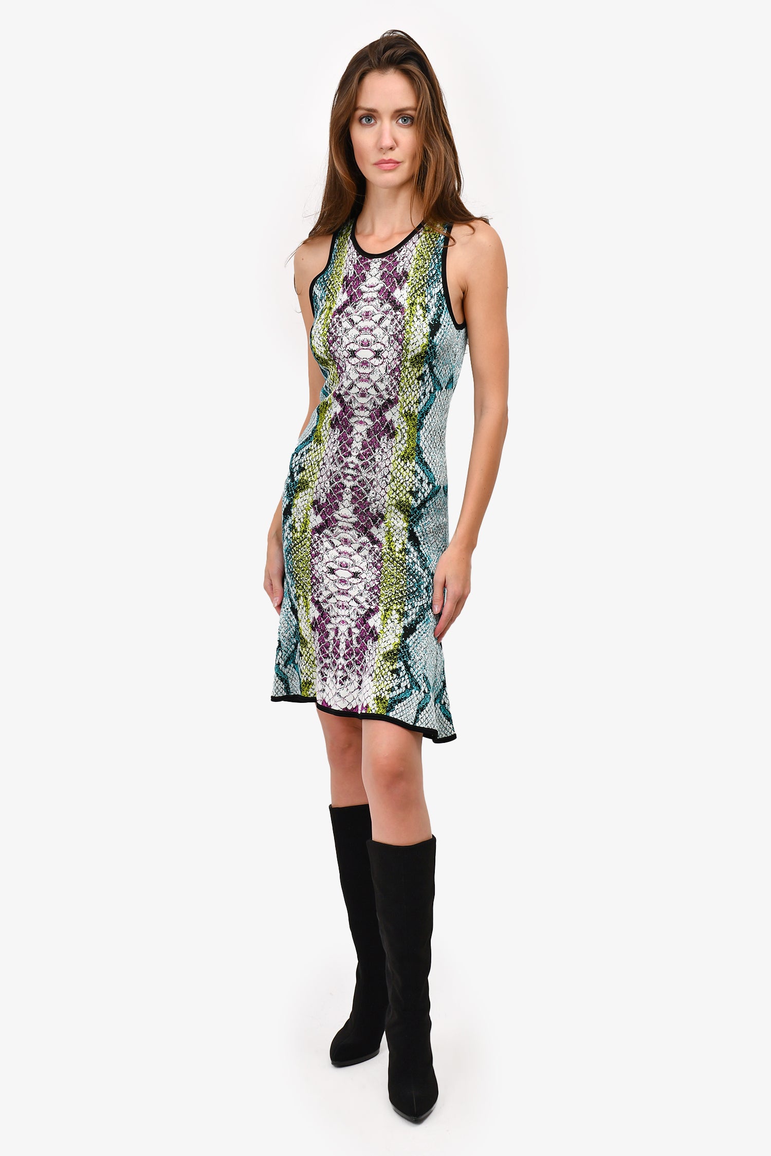 Roberto Cavalli 2000s Purple/Blue Snake Print Knit Sleeveless Midi Dress Size 40