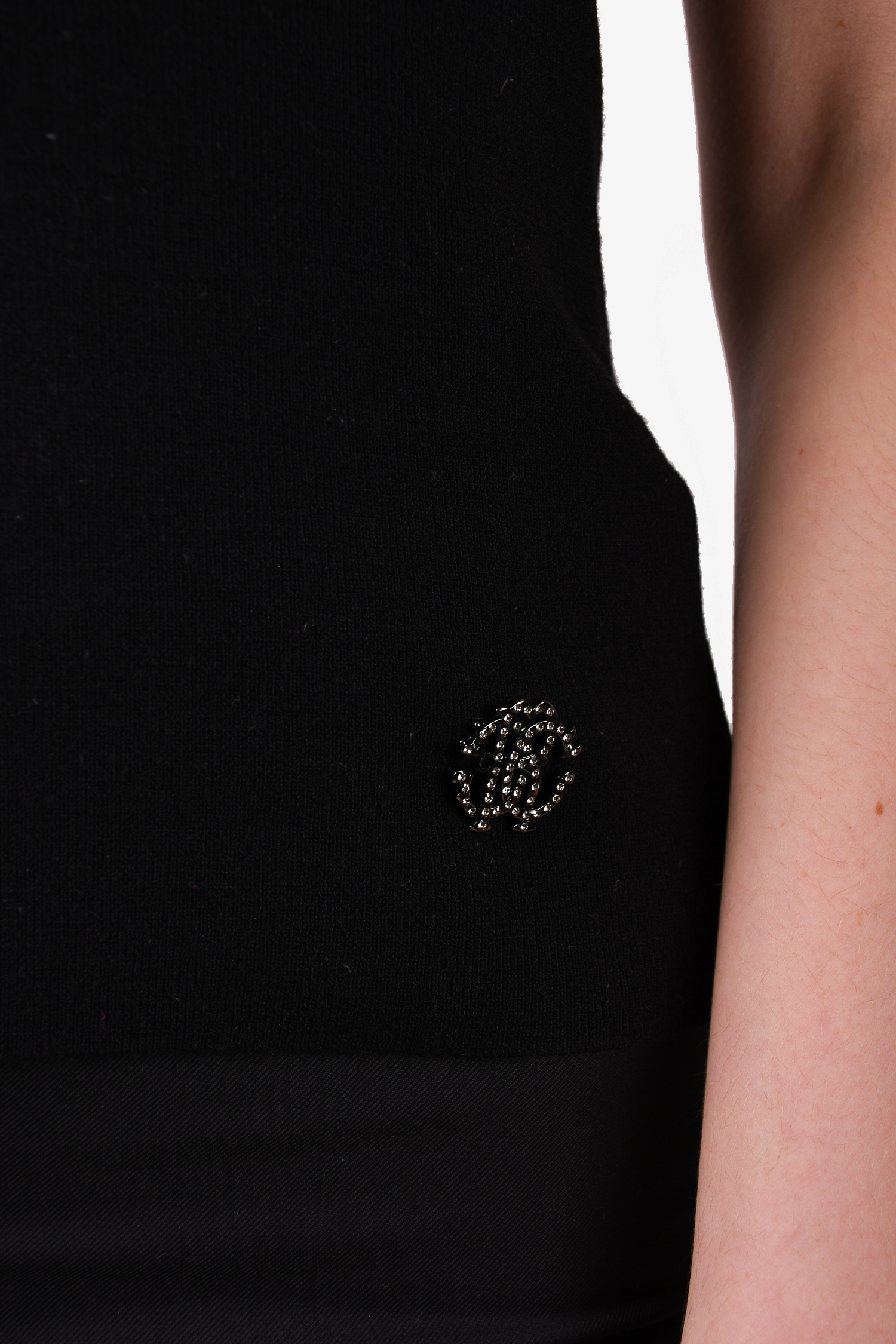 Refresh availabilityRoberto Cavalli Black Top with Patterned Trim. Pull on. Unlined. Tonal stitching.