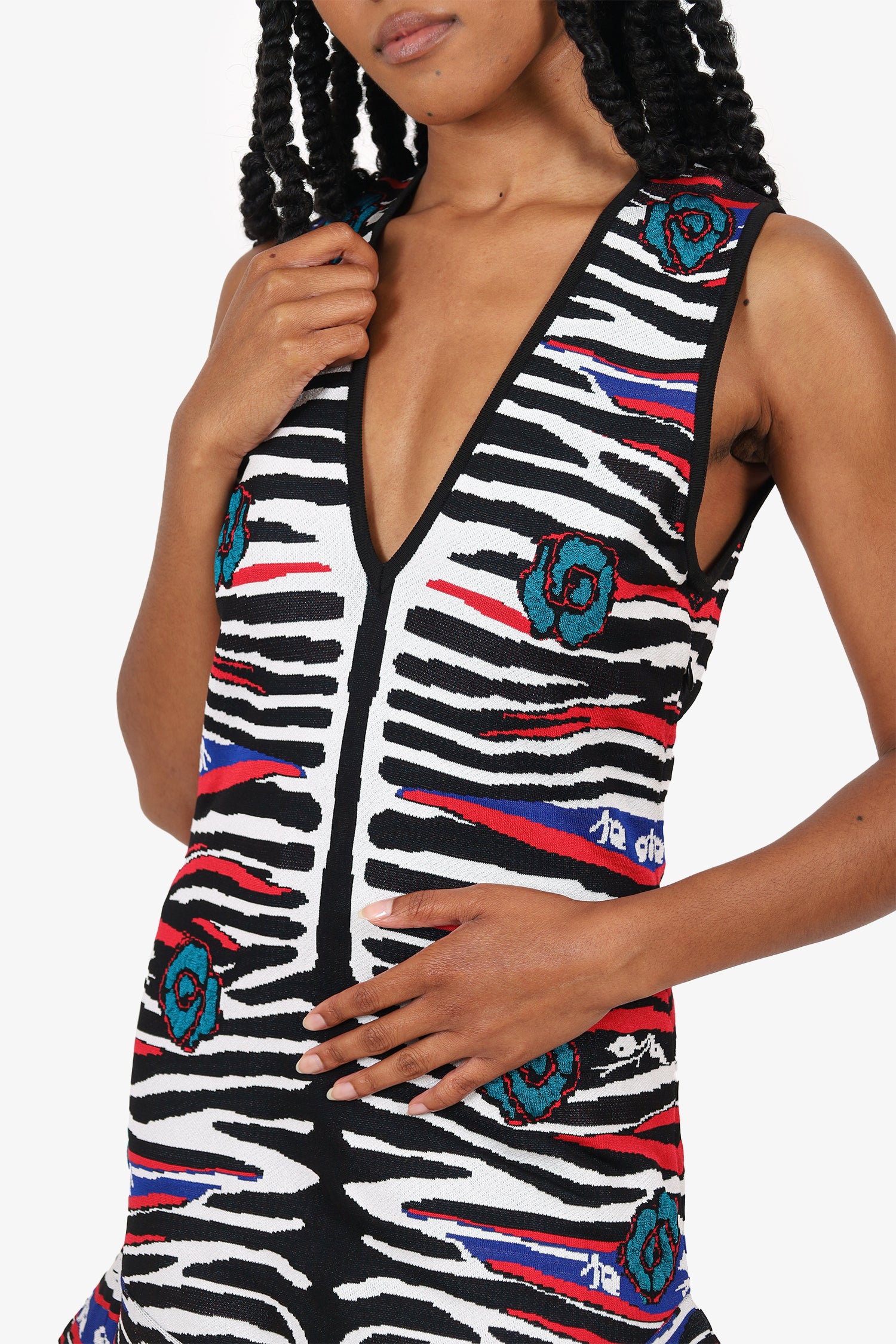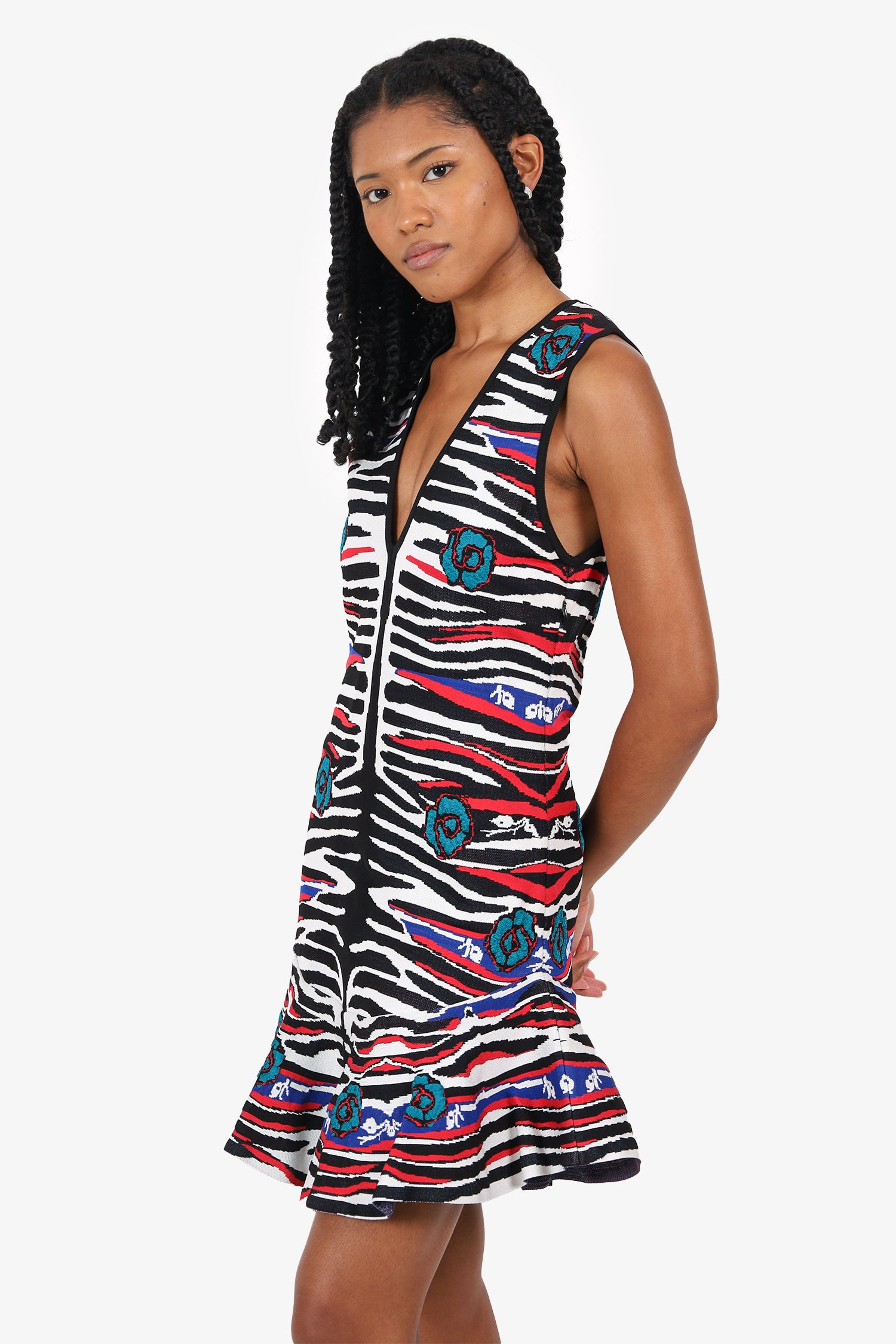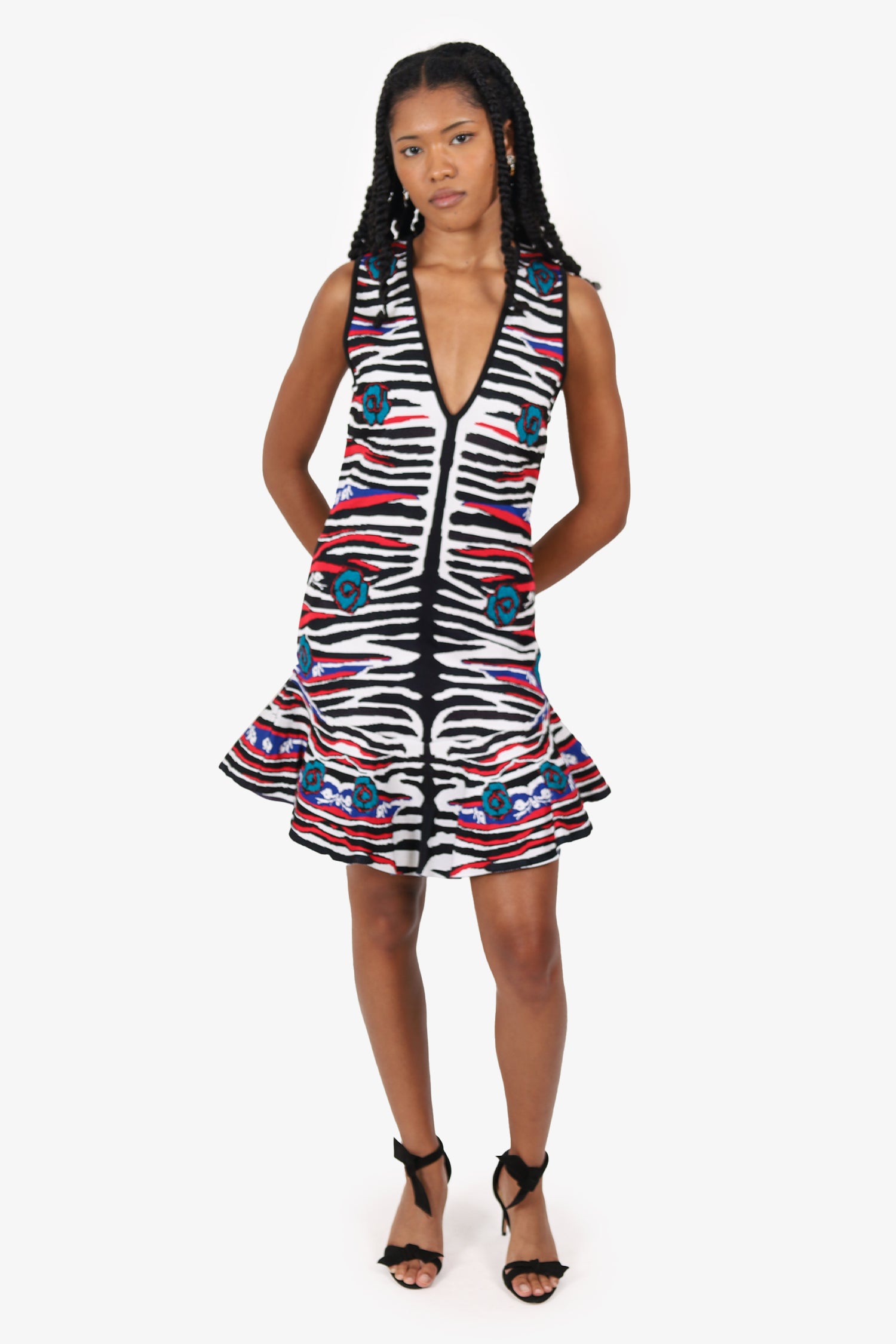 Refresh availabilityRoberto Cavalli Multicolour Zebra Stripe Flower Print Dress. Pull-on. V-neckline. Tonal stitching.