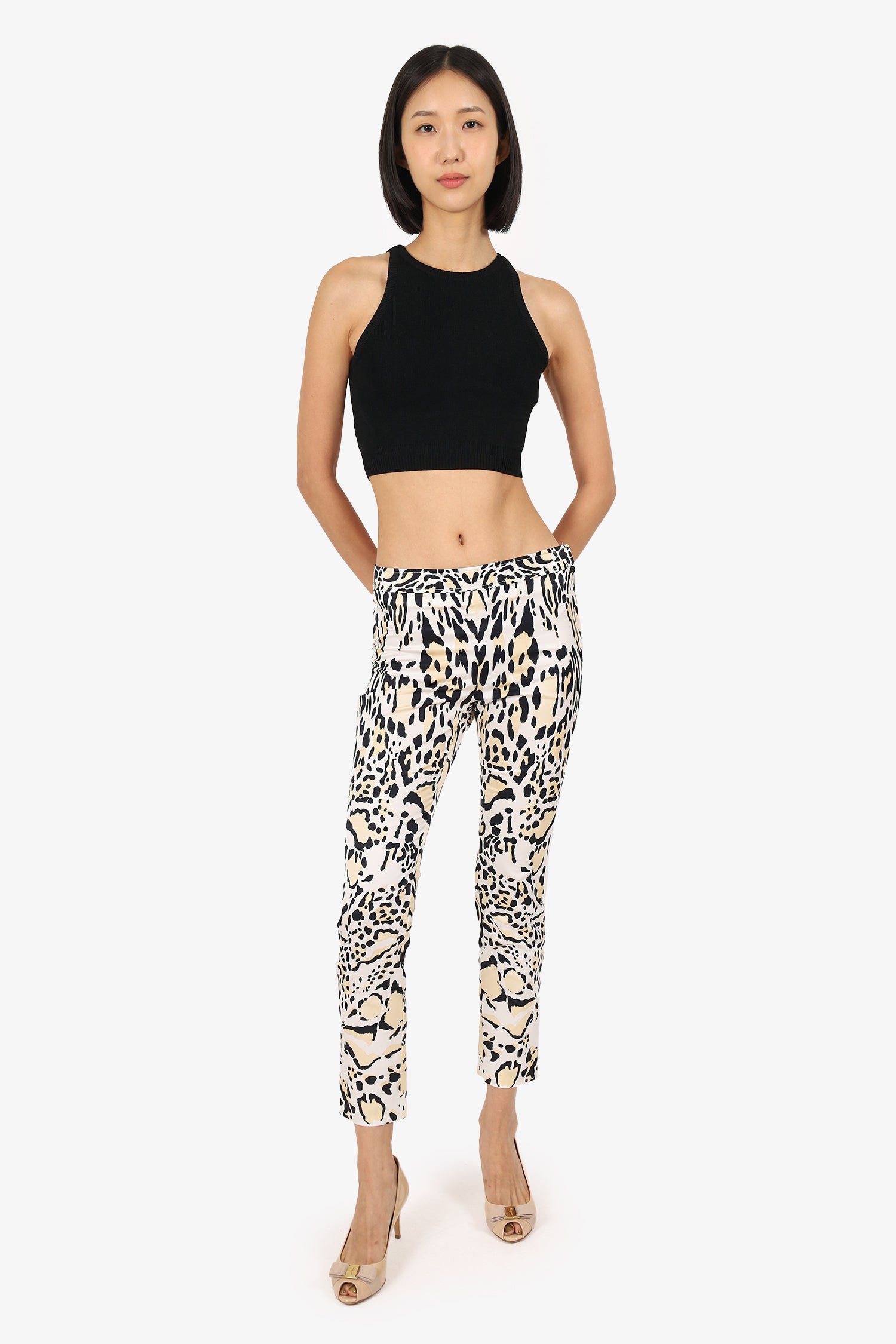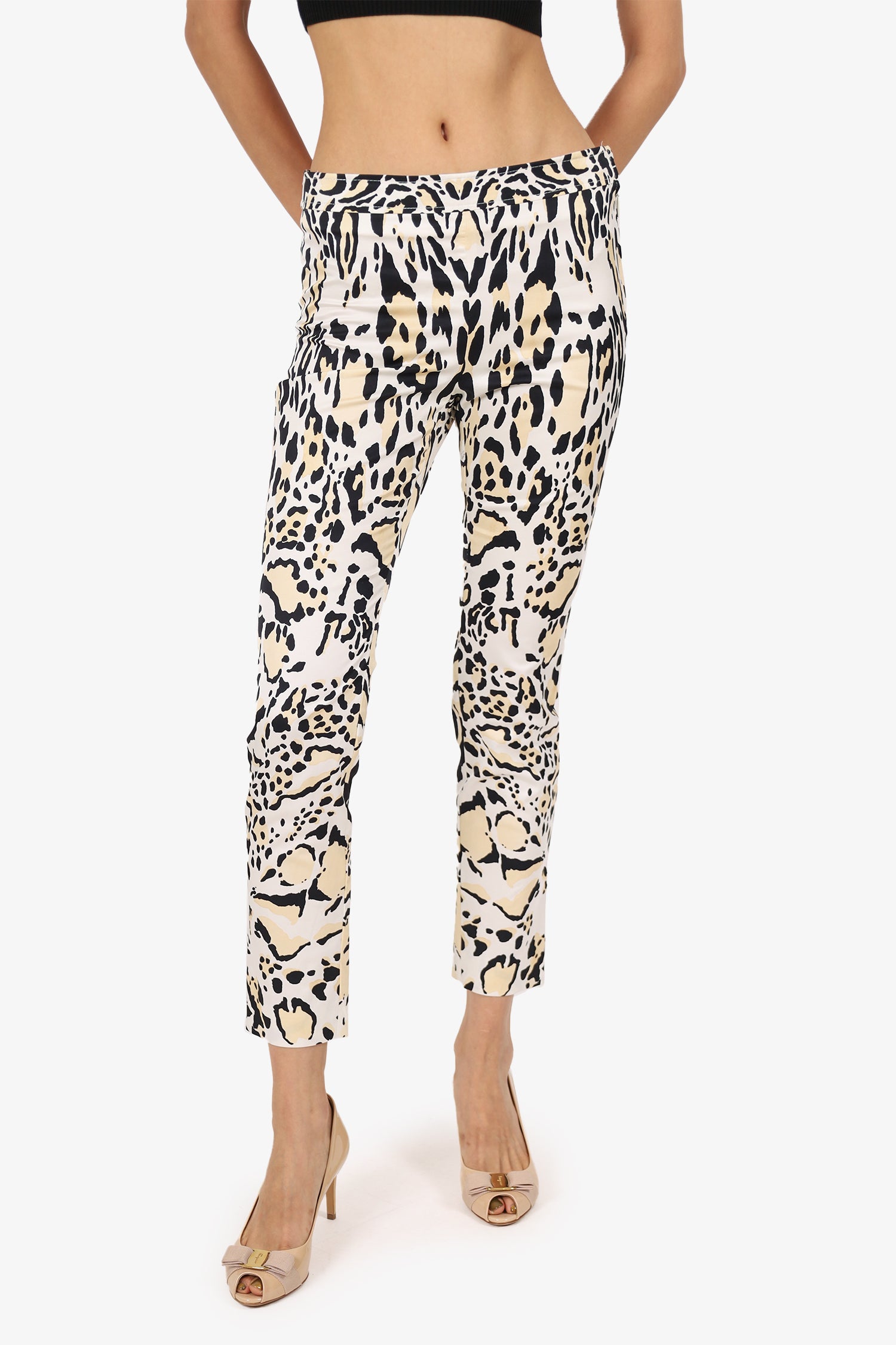 Refresh availabilityRoberto Cavalli White Cotton Leopard Print Capri Pants. Slip-on. Side zip with hook closure. Tonal stitching.