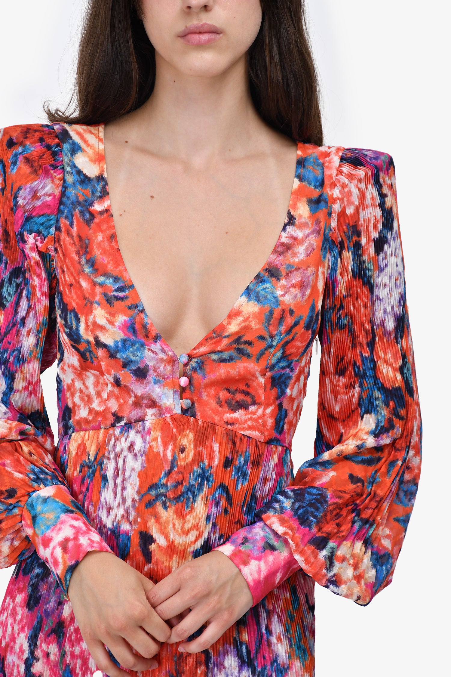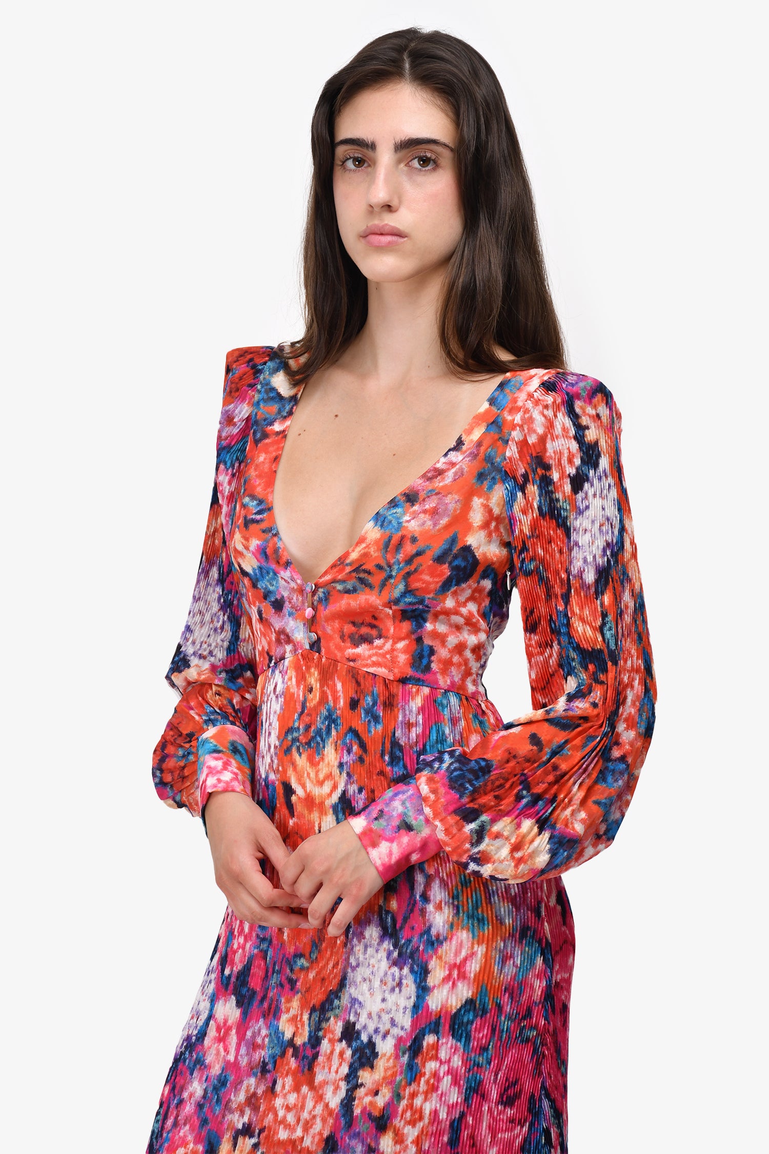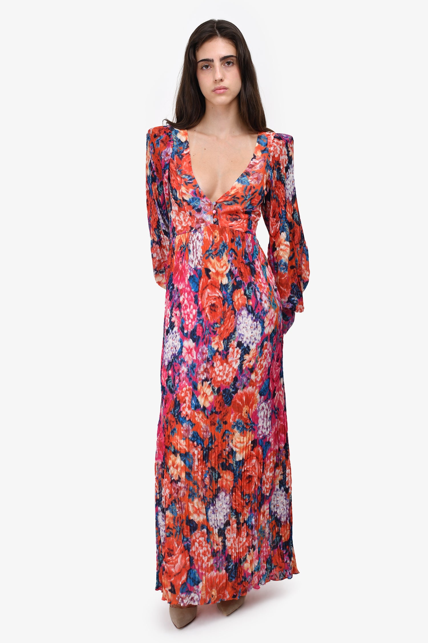 Rococo Sand Red/Blue Pleated Maxi 'Peony' Dress Size S