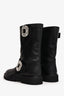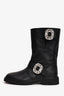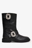 Roger Vivier Black Leather Crystal Embellished Buckle Biker Boots Size 38.5