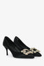 Roger Vivier Black Satin Crystal Buckle Heels Size 35