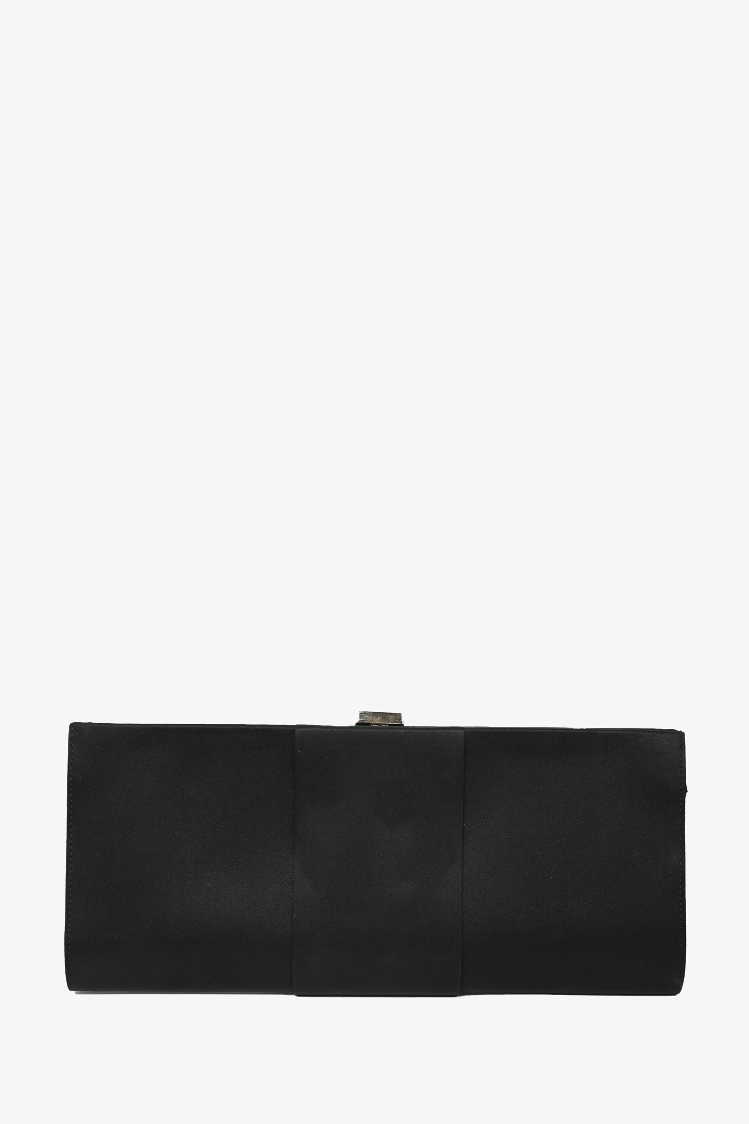 Roger Vivier Black Satin Crystal Clutch. Push-lock closure. Silver-tone hardware. Tonal stitching.