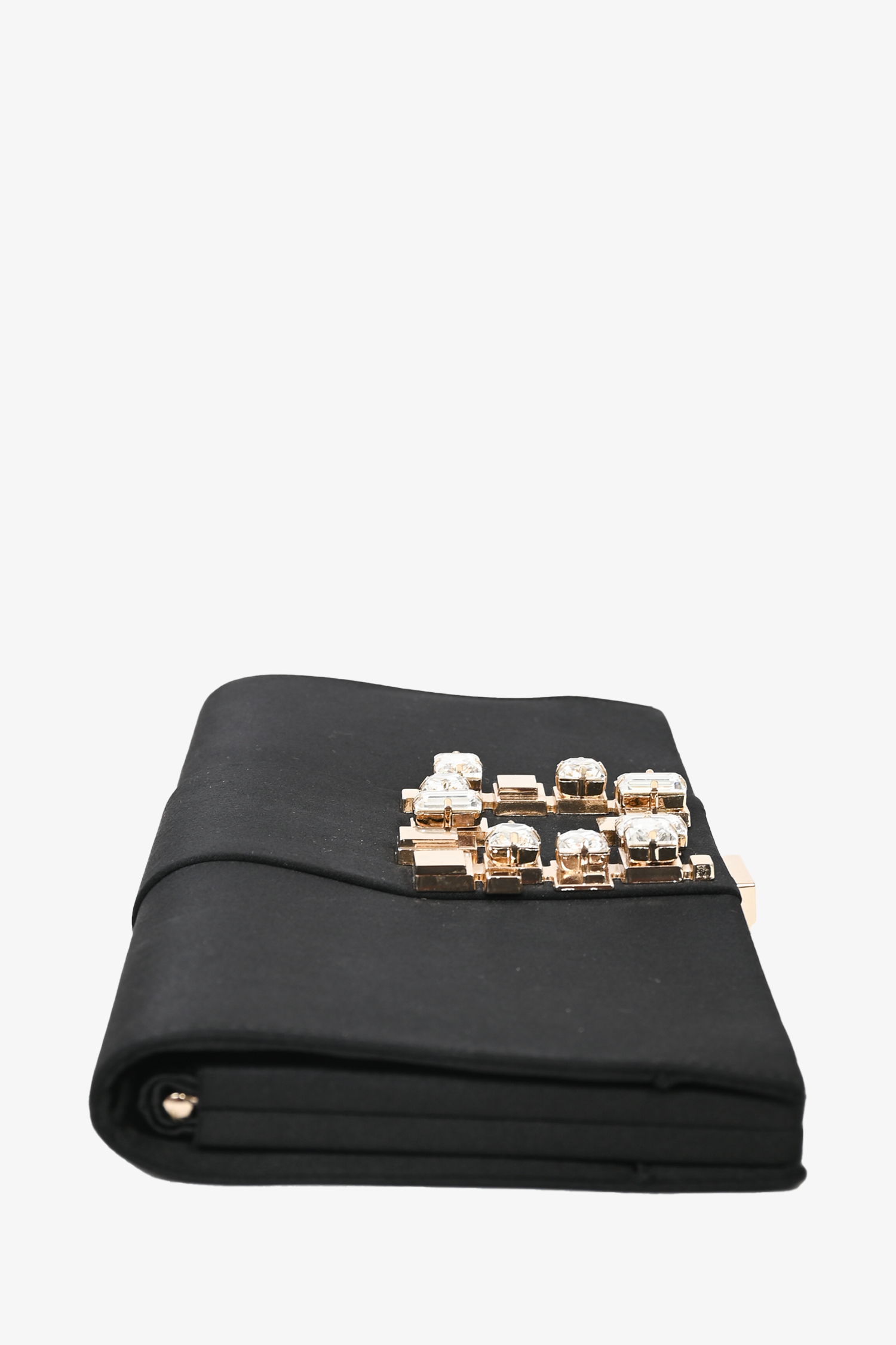 Roger Vivier Black Satin Crystal Clutch