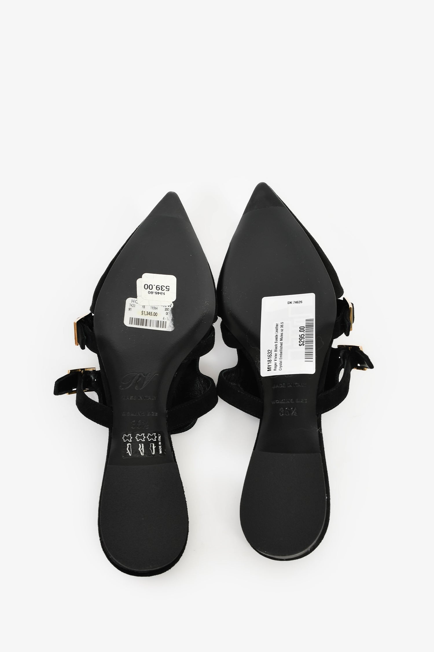 Roger Vivier Black Suede Leather Crystal Embellished Mules Size 36.5