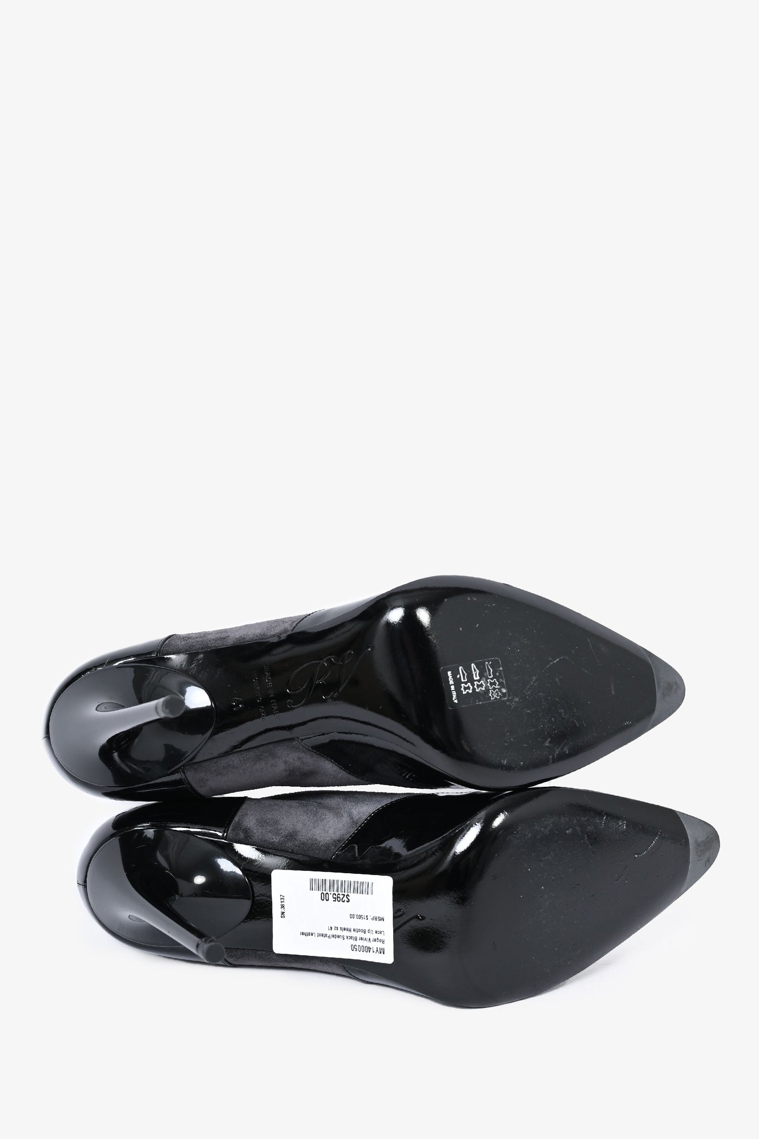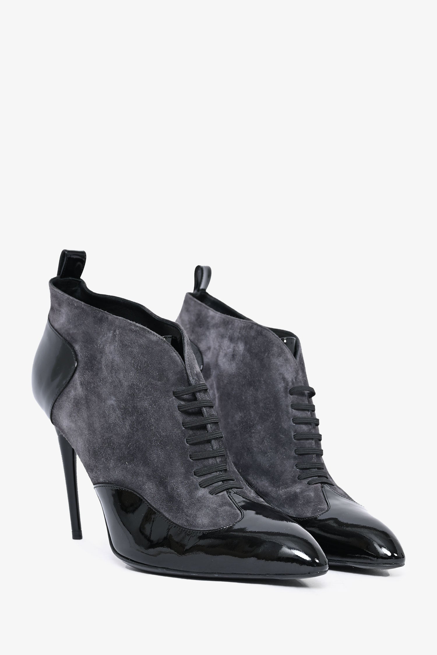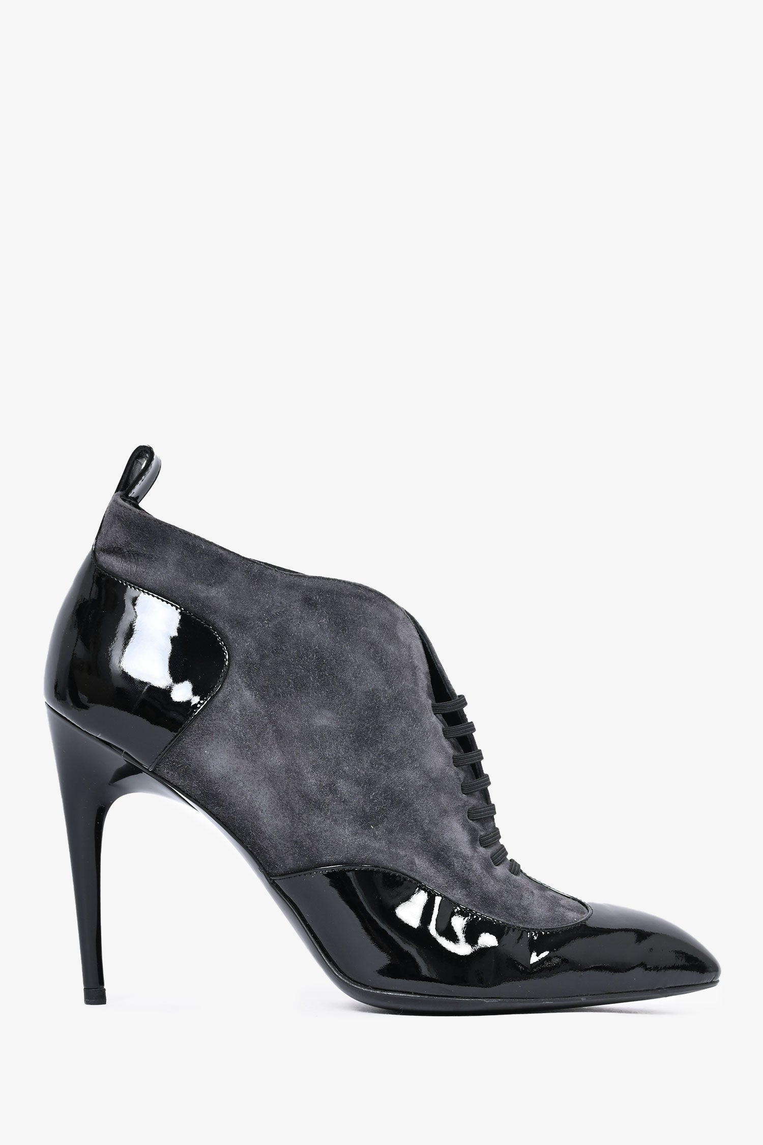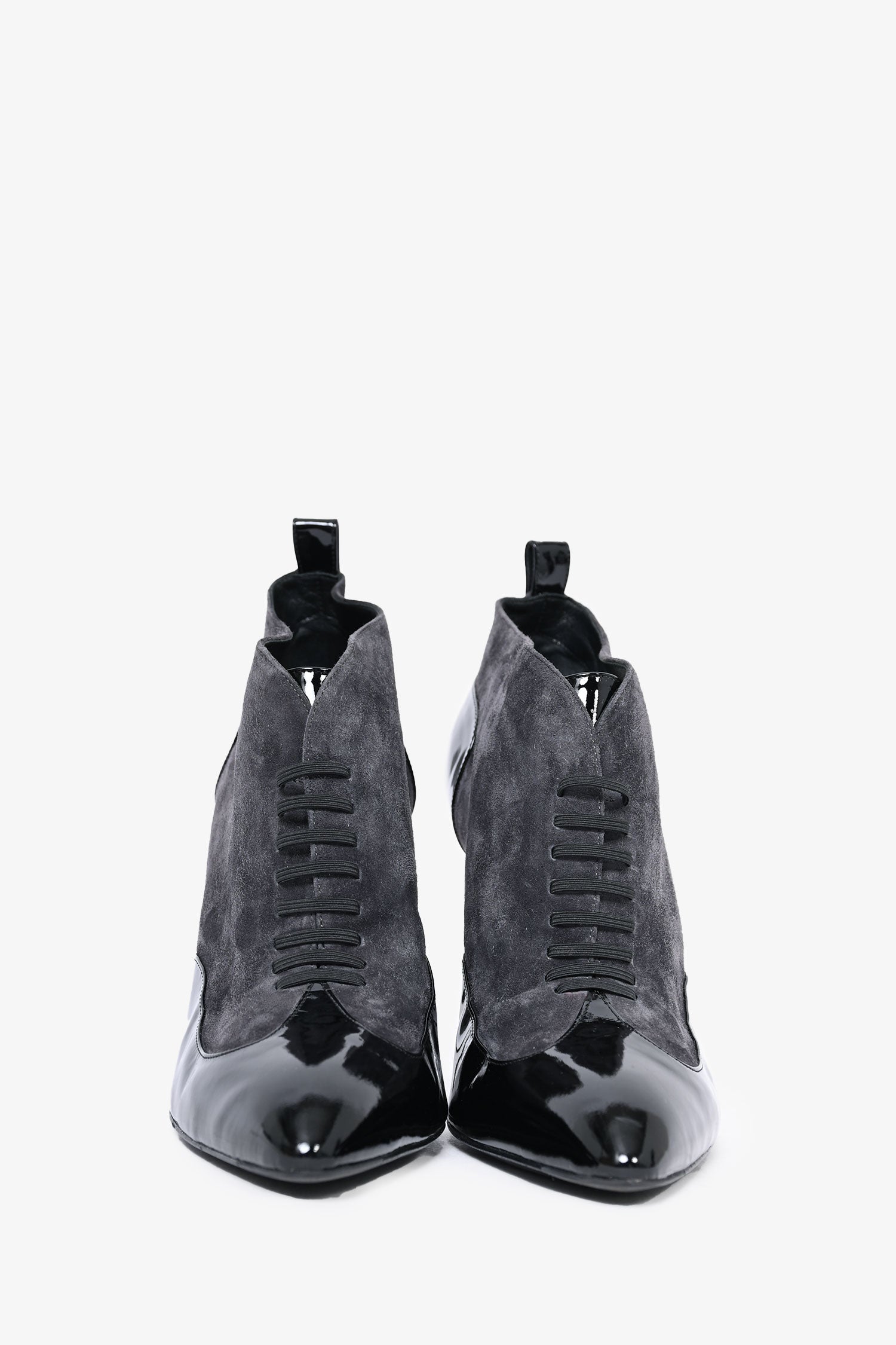 Roger Vivier Black Suede/Patent Leather Lace-Up Bootie Heels Size 41