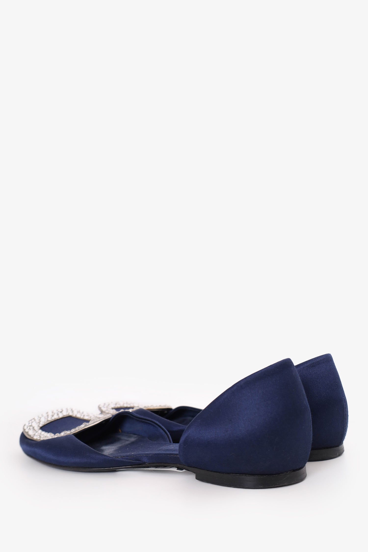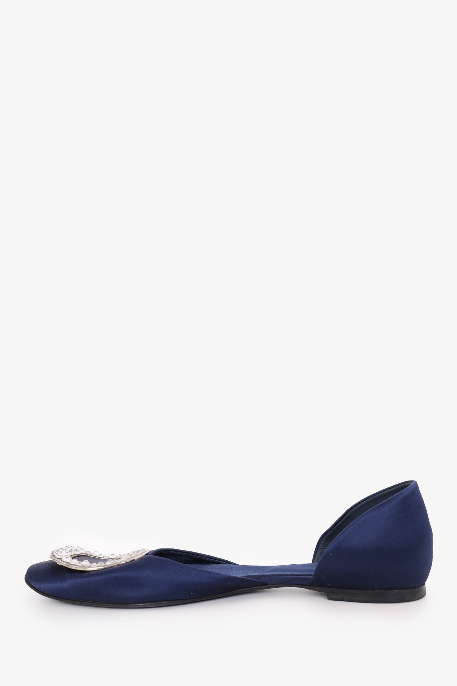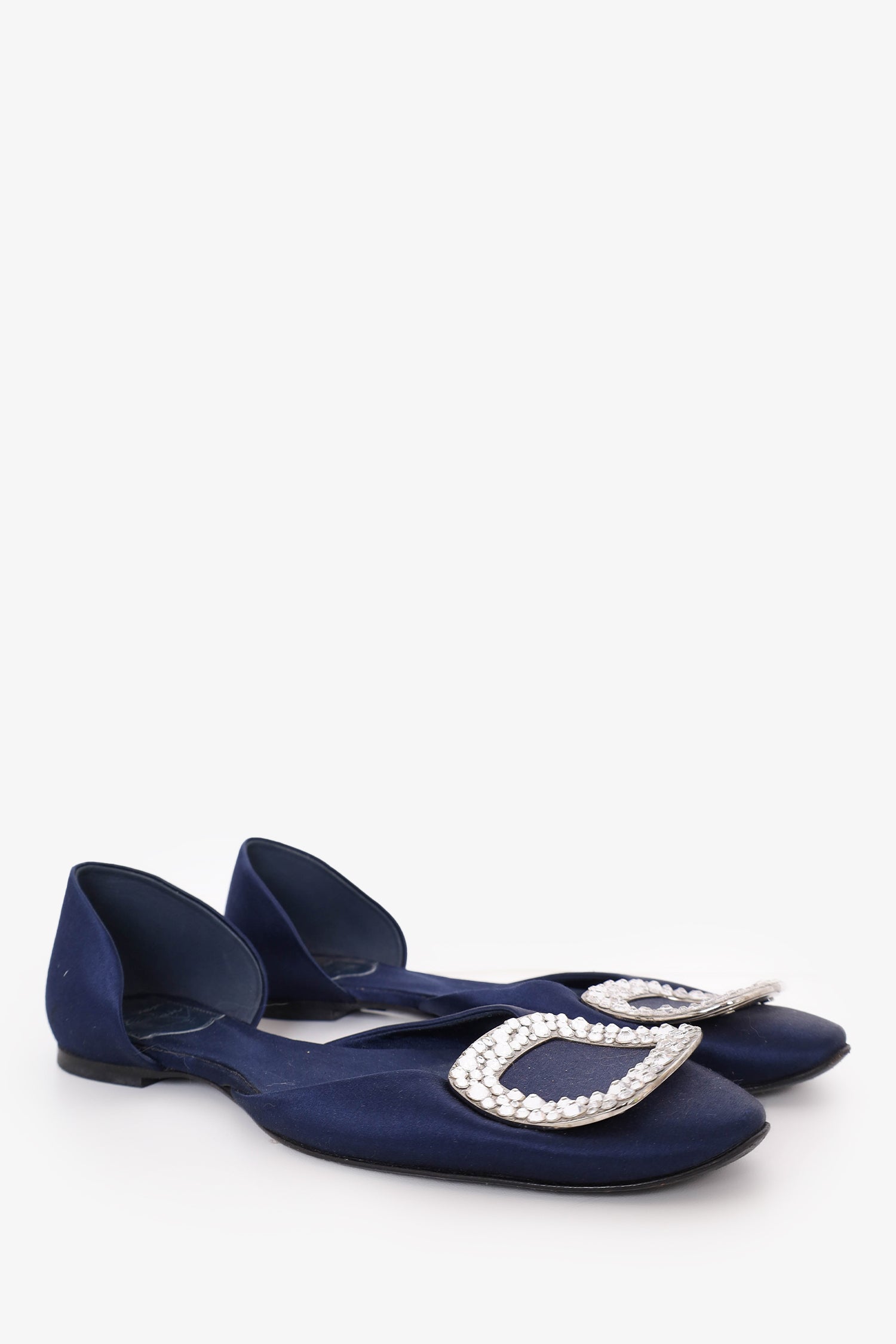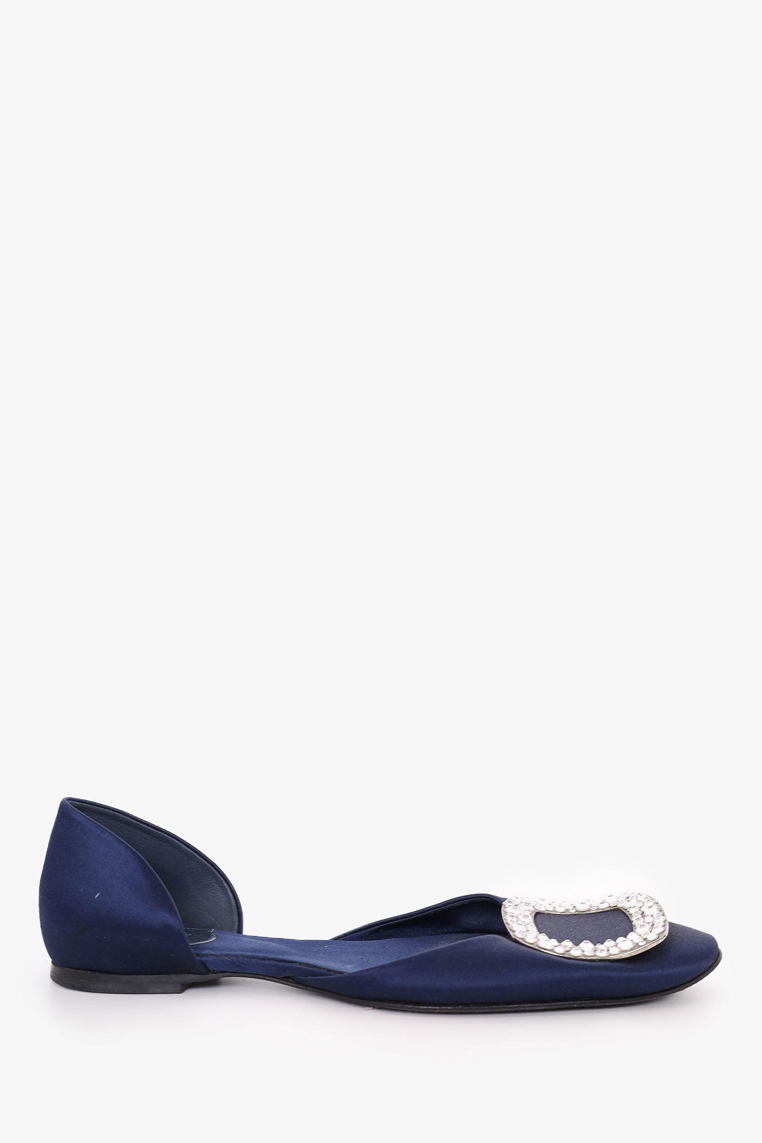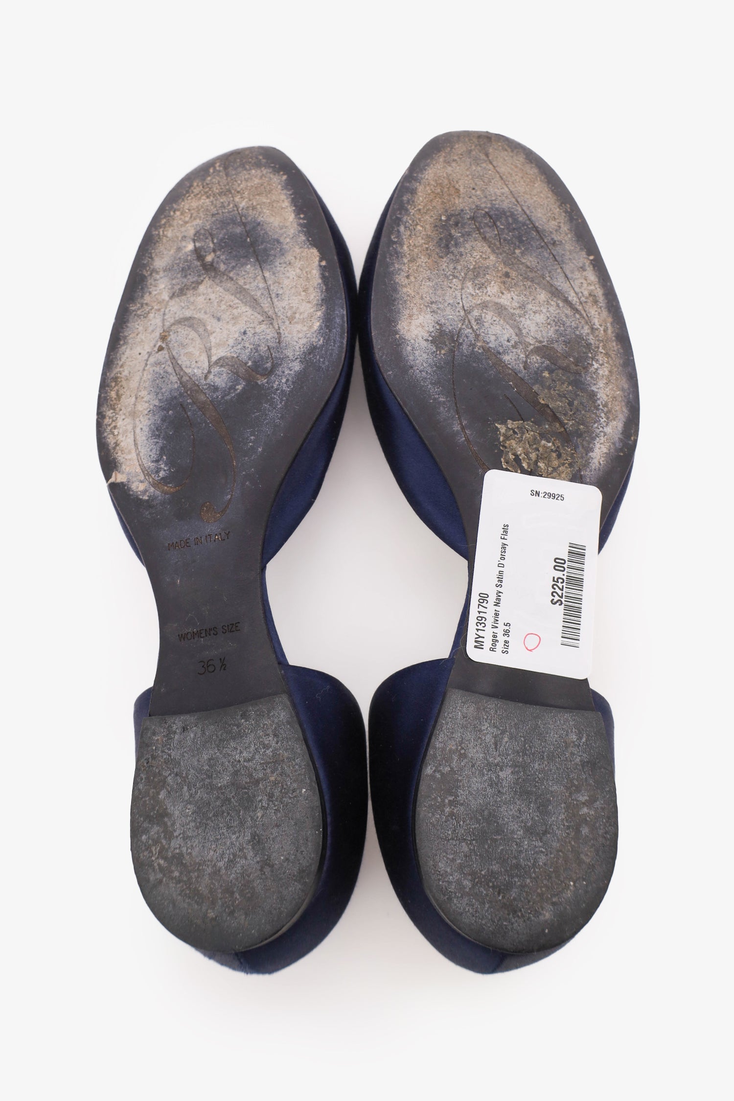 Refresh availabilityRoger Vivier Navy Satin D'orsay Flats. Slip-on. Round toe. Open on sides. Gem-tone pendant on toes. Tonal stitching.