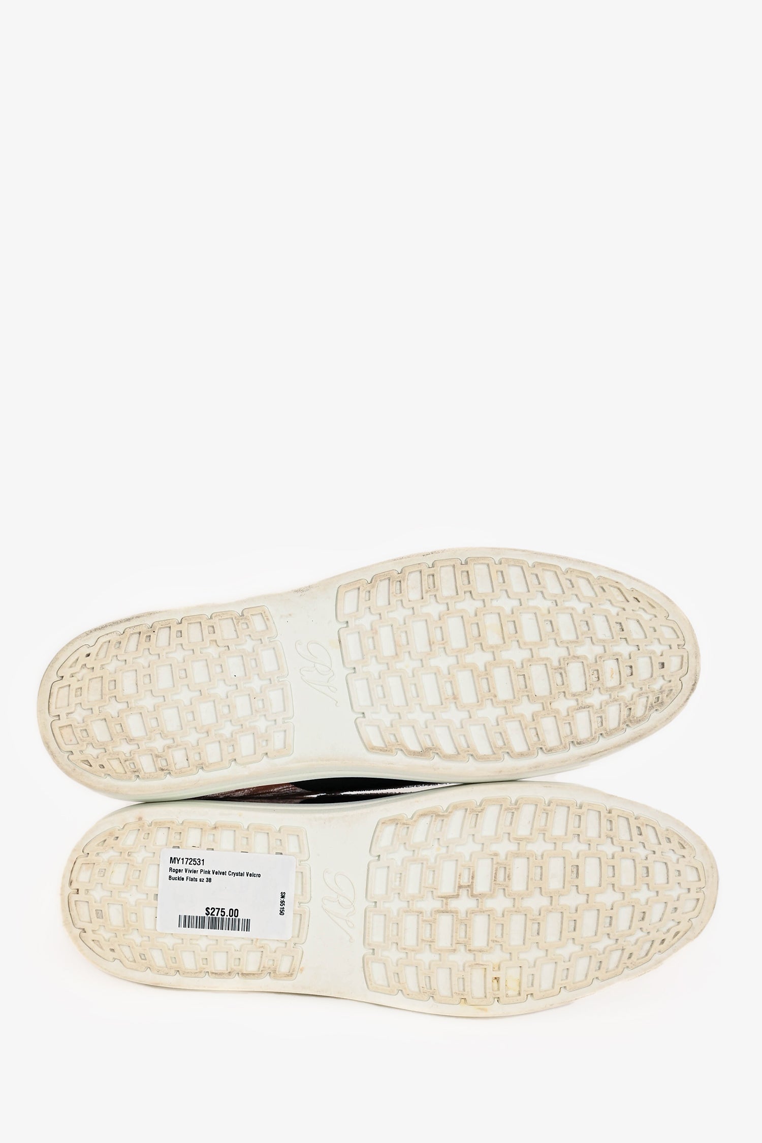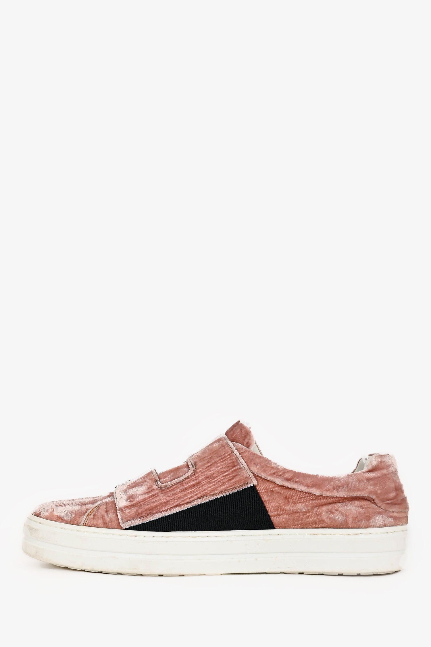 Roger Vivier Pink Velvet Crystal Velcro Buckle Sneakers Size 38