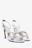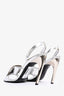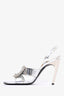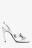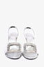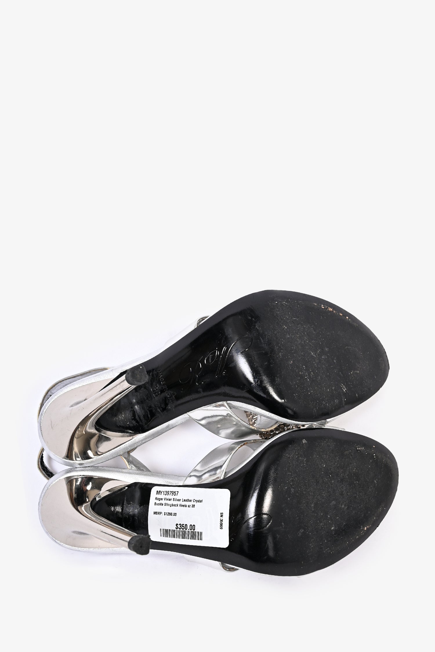 Roger Vivier Silver Leather Crystal Buckle Slingback Heels Size 38