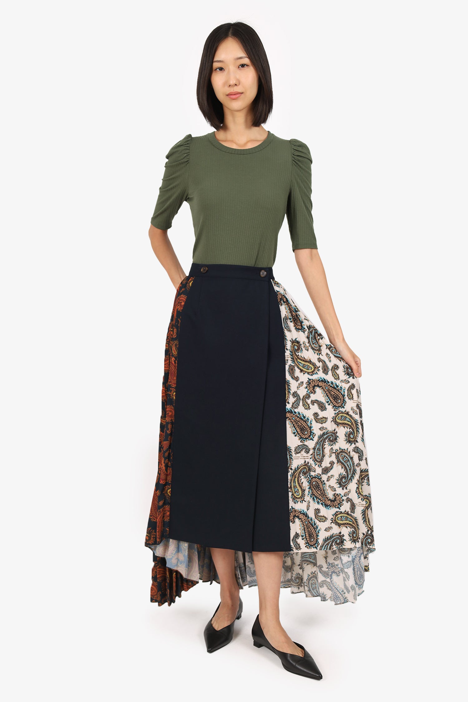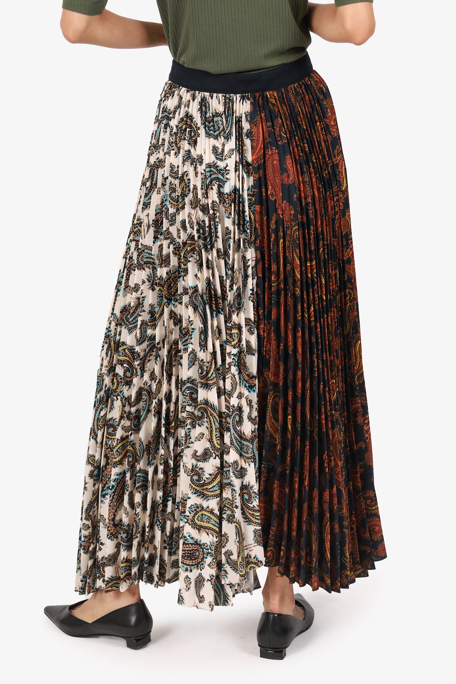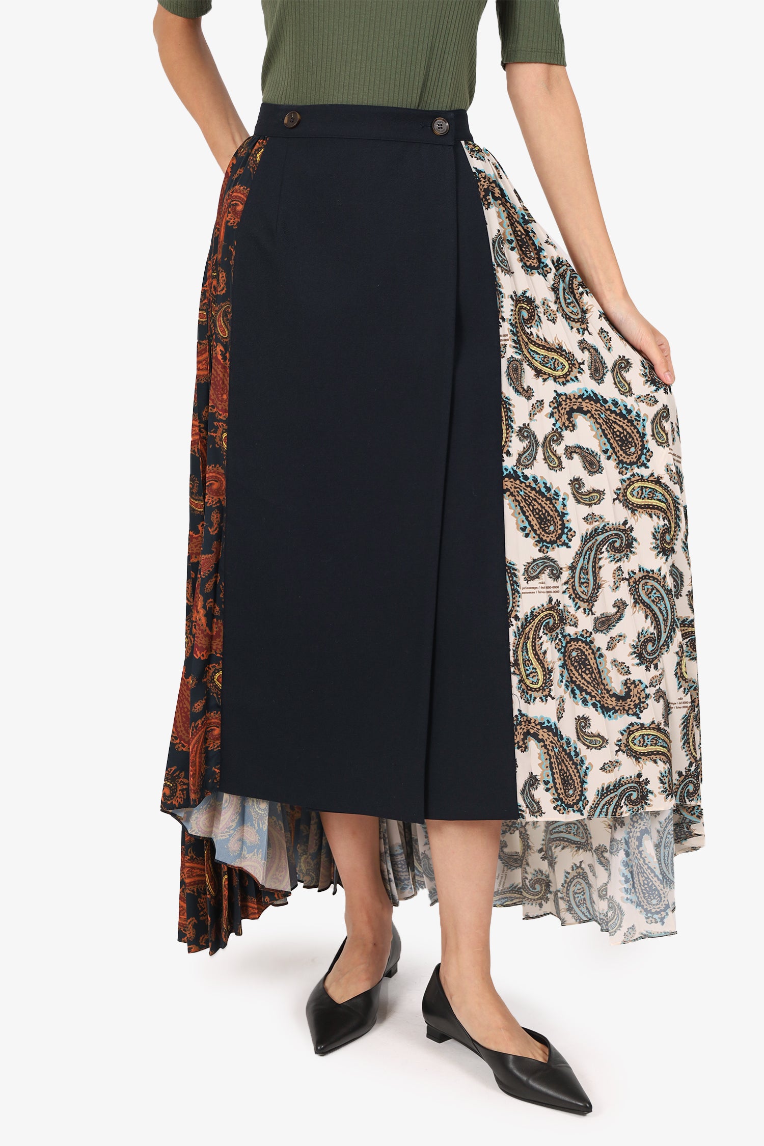 Refresh availabilityRokh Black/Multicolour Paisley Print Pleated Midi Skirt. Slip-on. Wrap design with front button-up closure. Tonal stitching.