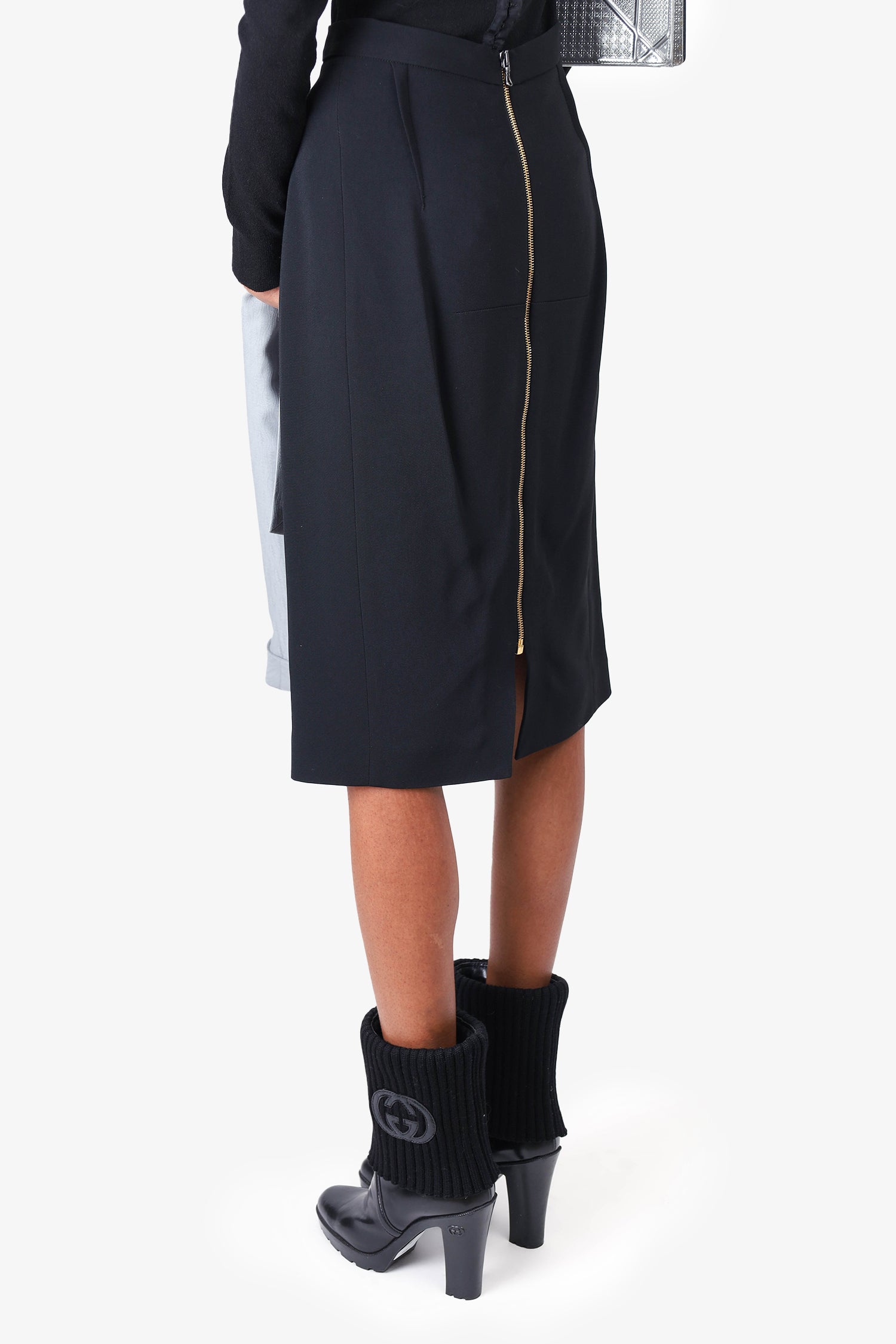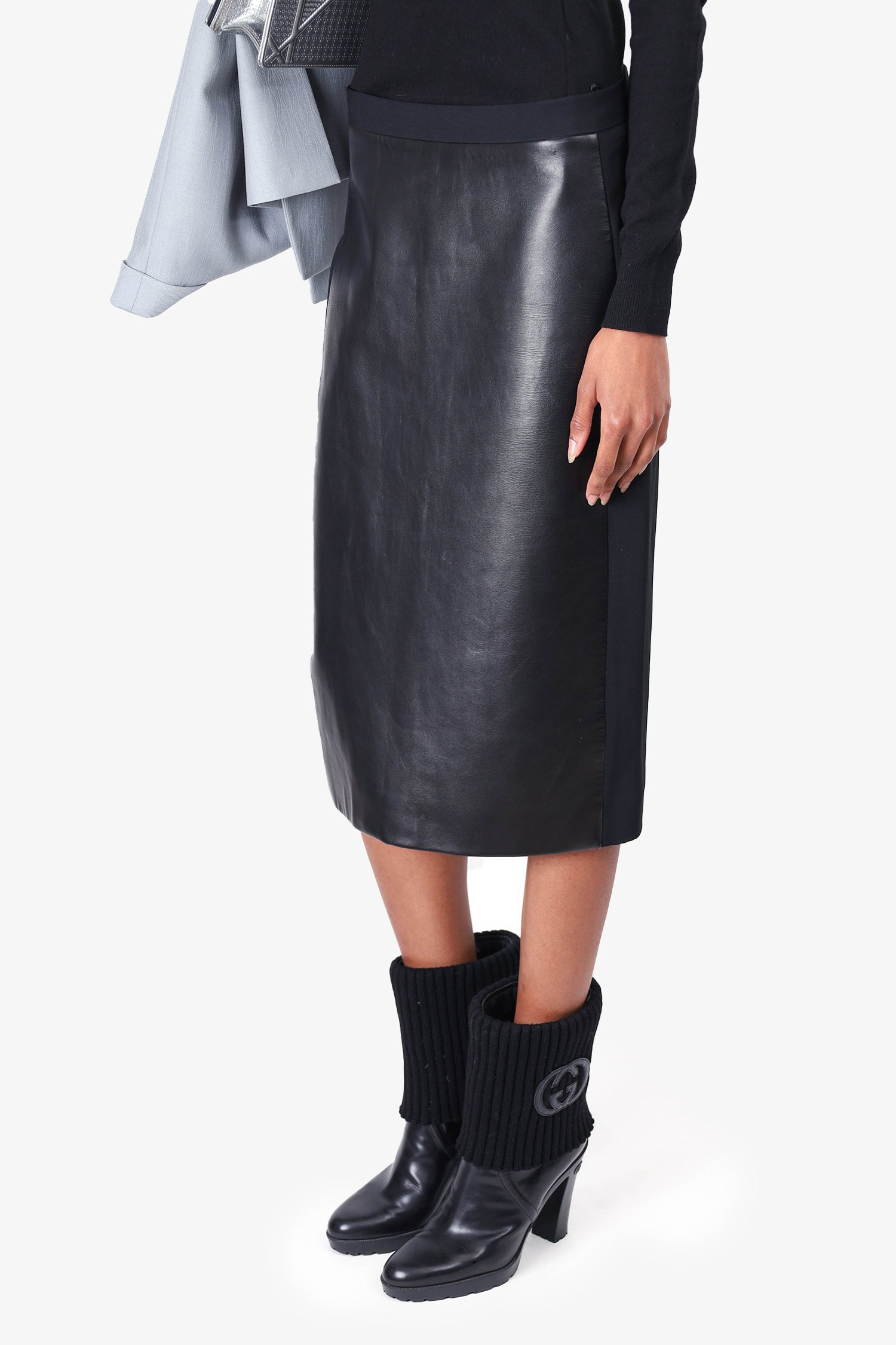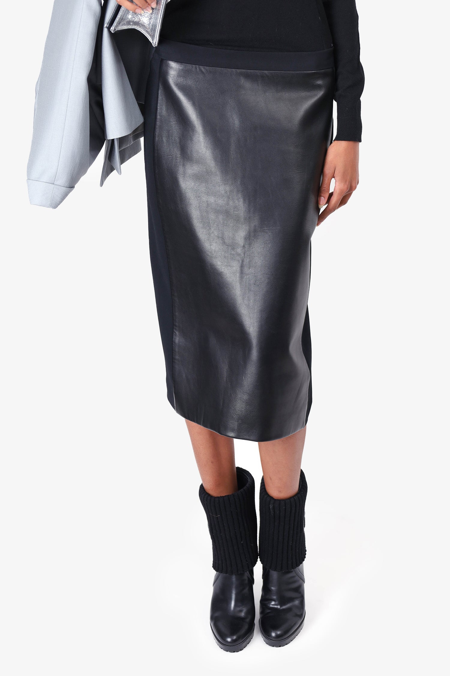 Refresh availabilityRoland Mouret Black Leather-Effect Contrast Pencil Skirt. Rear zip closure with gold-tone hardware. Partially lined. Tonal stitching.