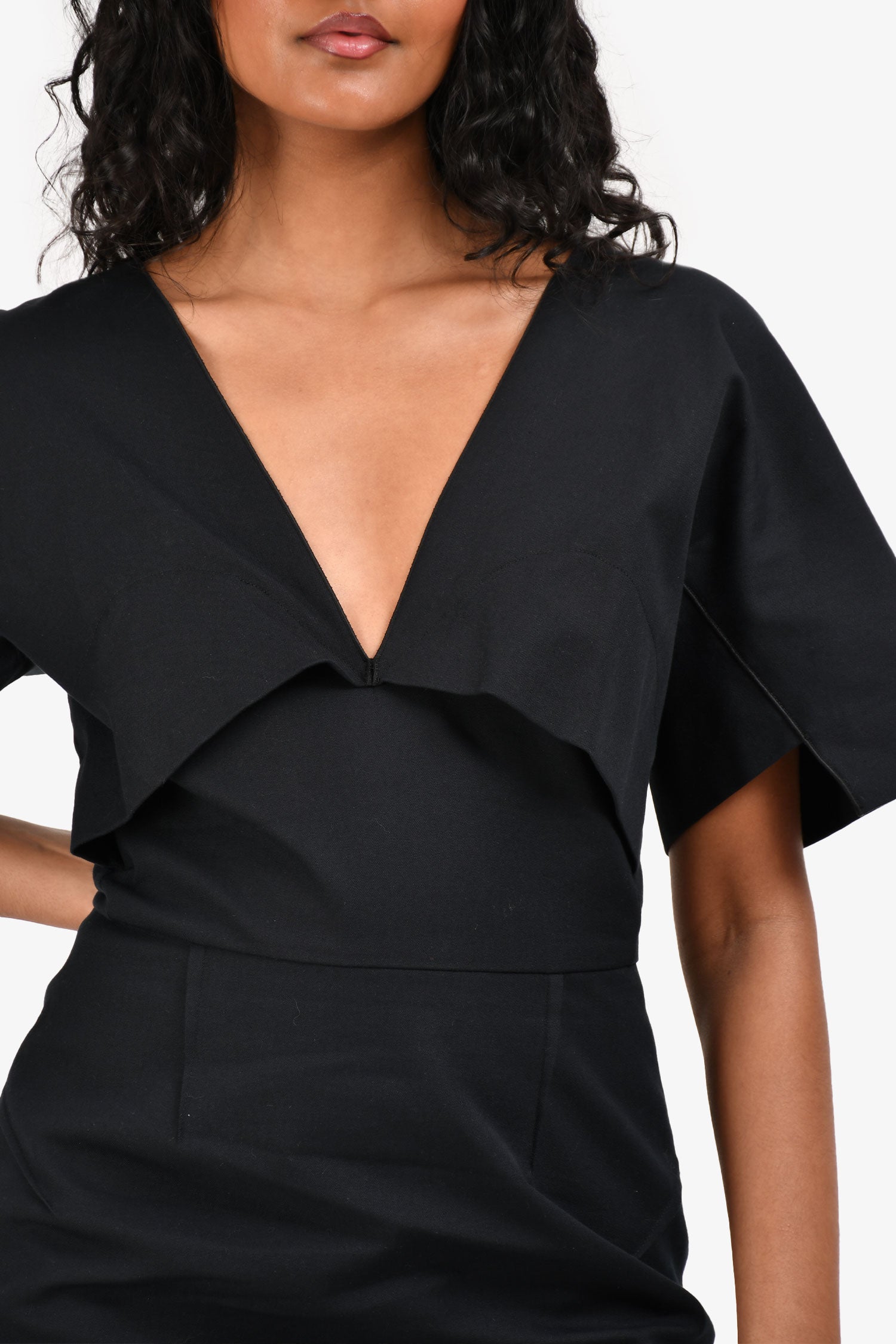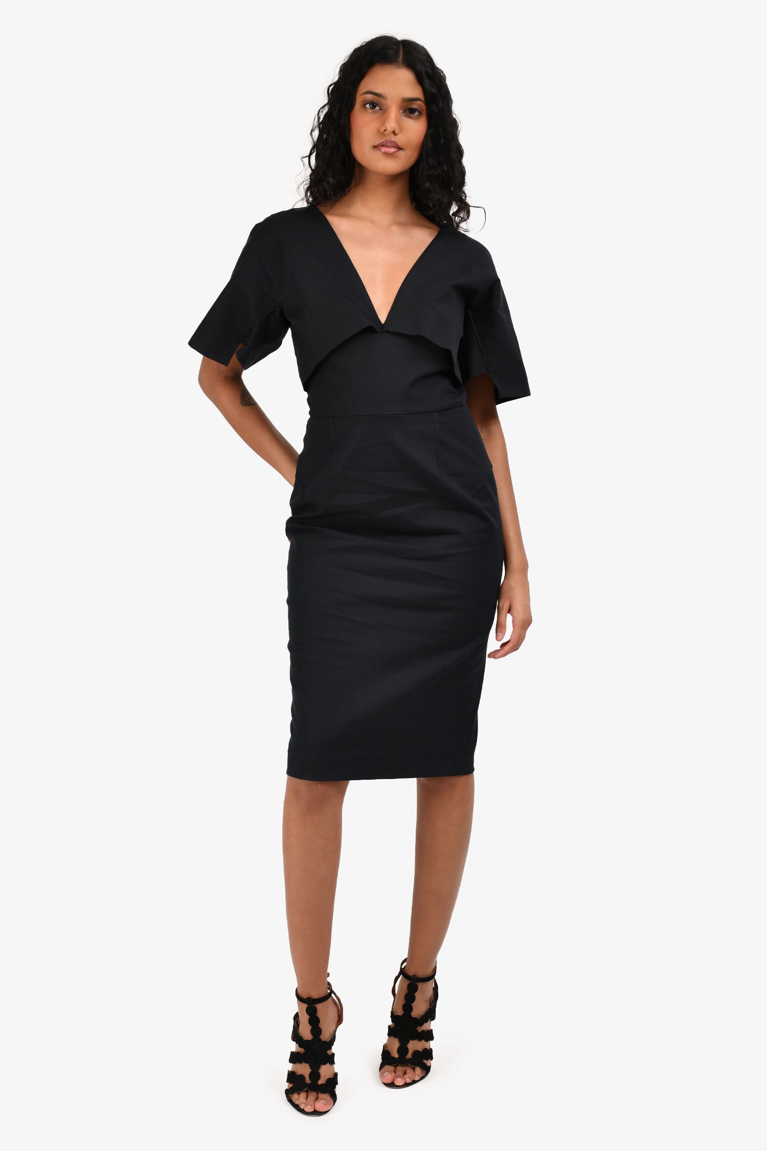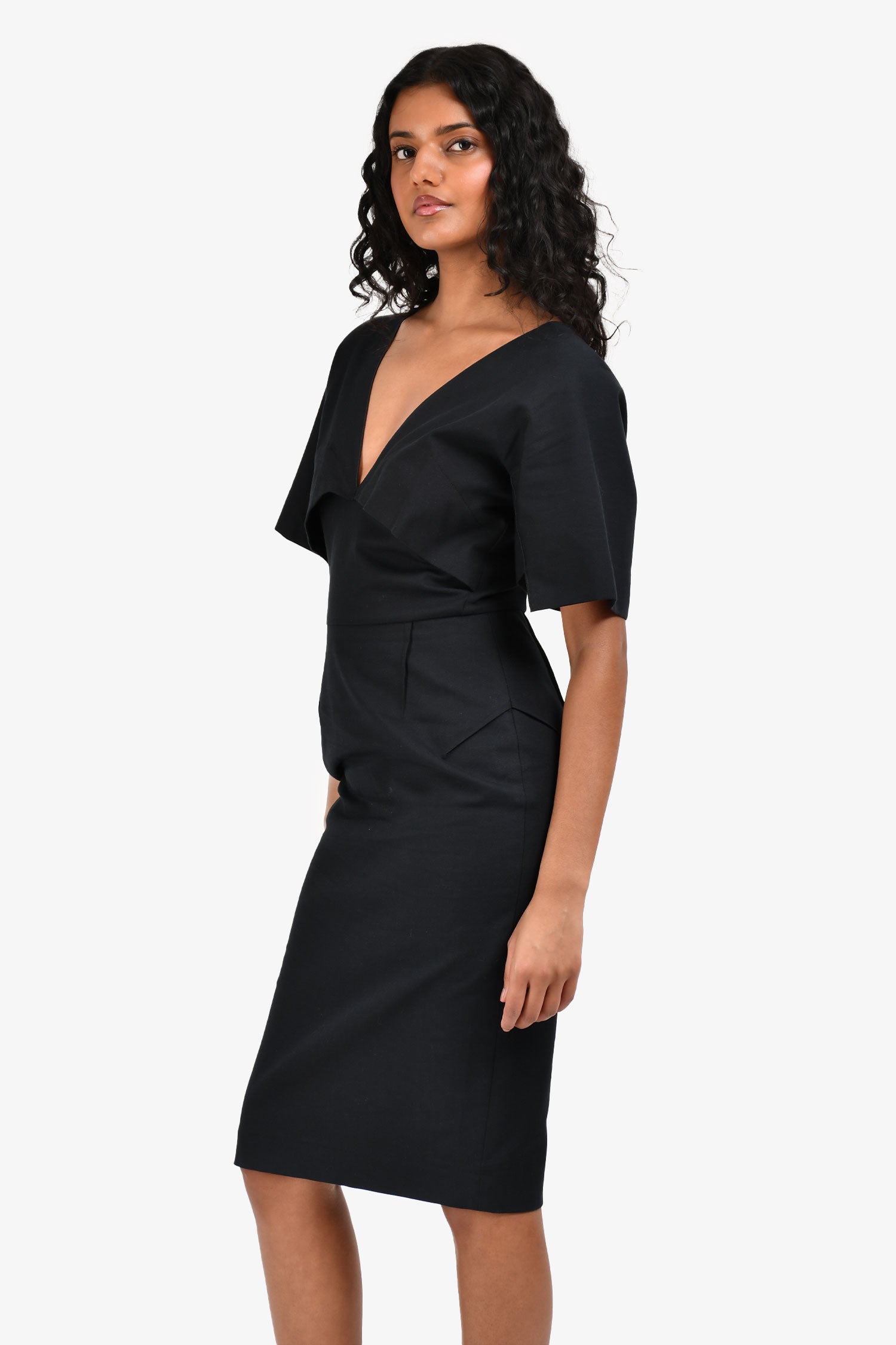 Roland Mouret Black Short Sleeve V-Neck Dress Size 6
