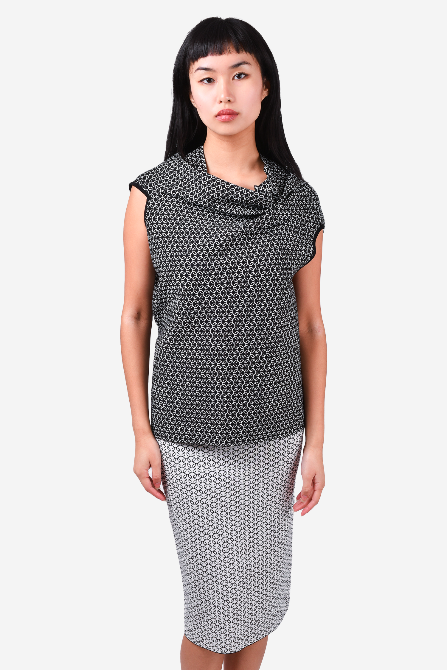 Refresh availabilityRoland Mouret Black/White Geometrical Patterned Top + Skirt Set. Top: Pull-on. Cowl neckline. Skirt: Elasticized waist. Unlined. Tonal stitching.