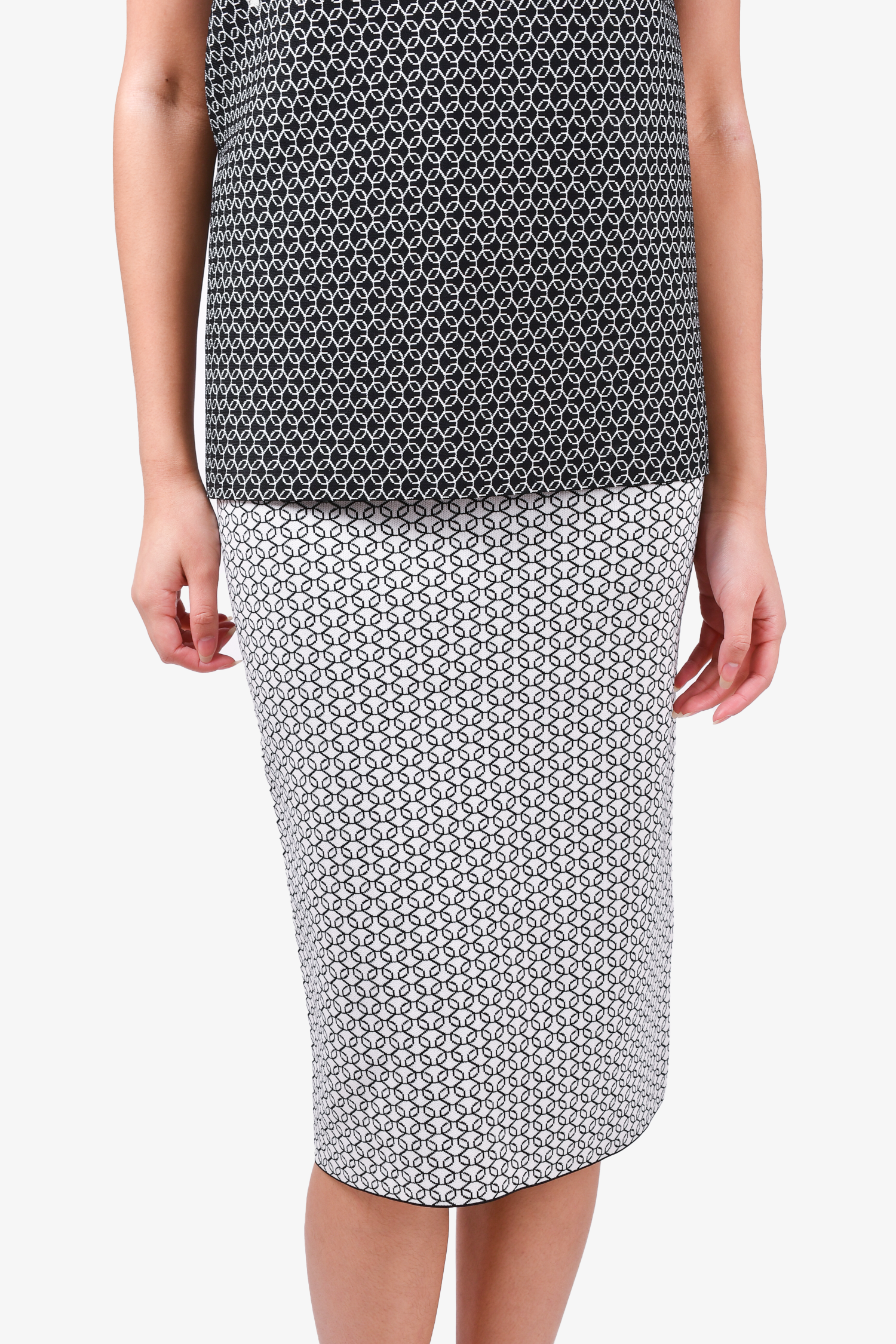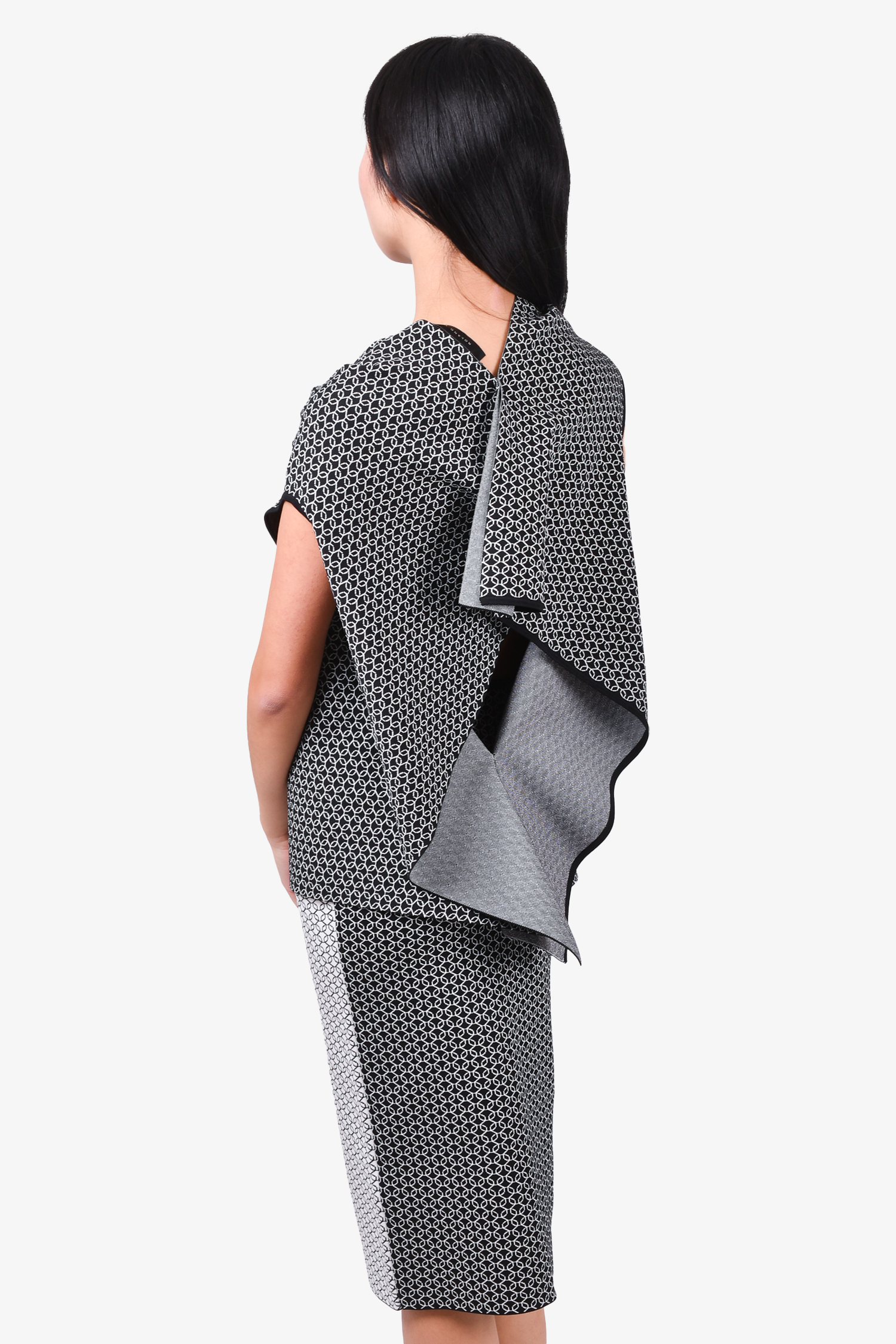 Roland Mouret Black/White Geometrical Patterned Top + Skirt Set Size S