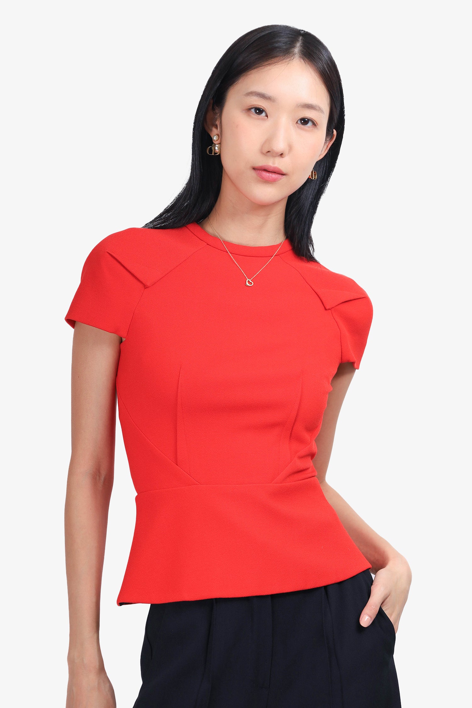 Refresh availabilityRoland Mouret Orange Top. Round neckline. Rear zip and hook closure. Peplum silhouette. Gold hardware. Lining only on bottom hem. Tonal stitching.