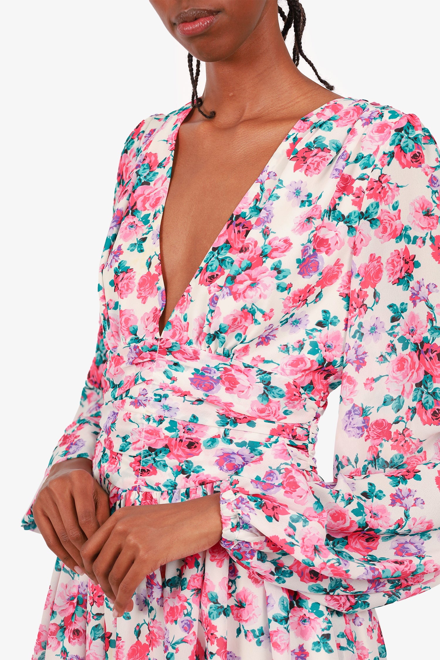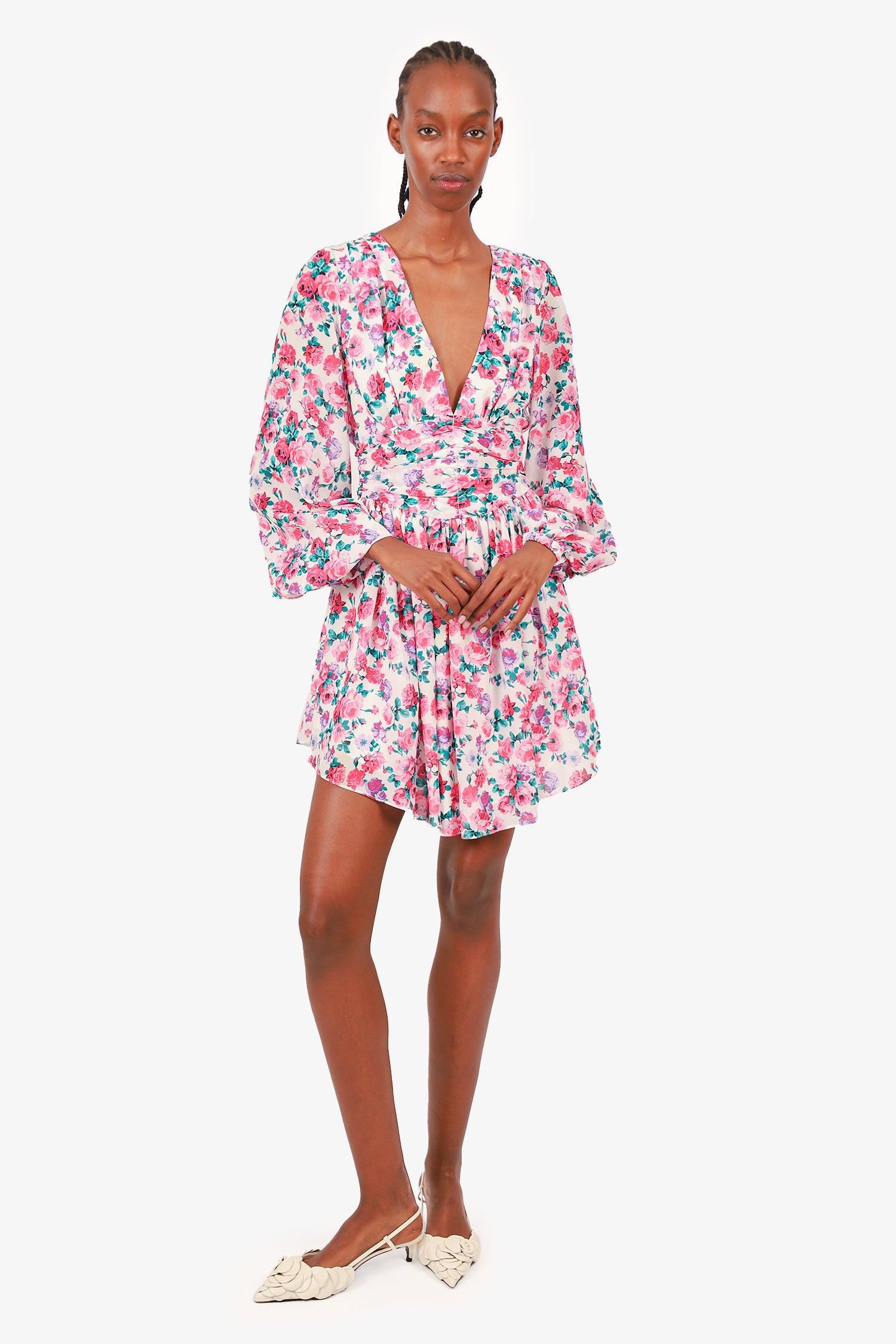 Refresh availabilityRonny Kobo Multicolour Floral Dress. Rear zip closure. V-neckline. Long-sleeve. Tonal stitching.