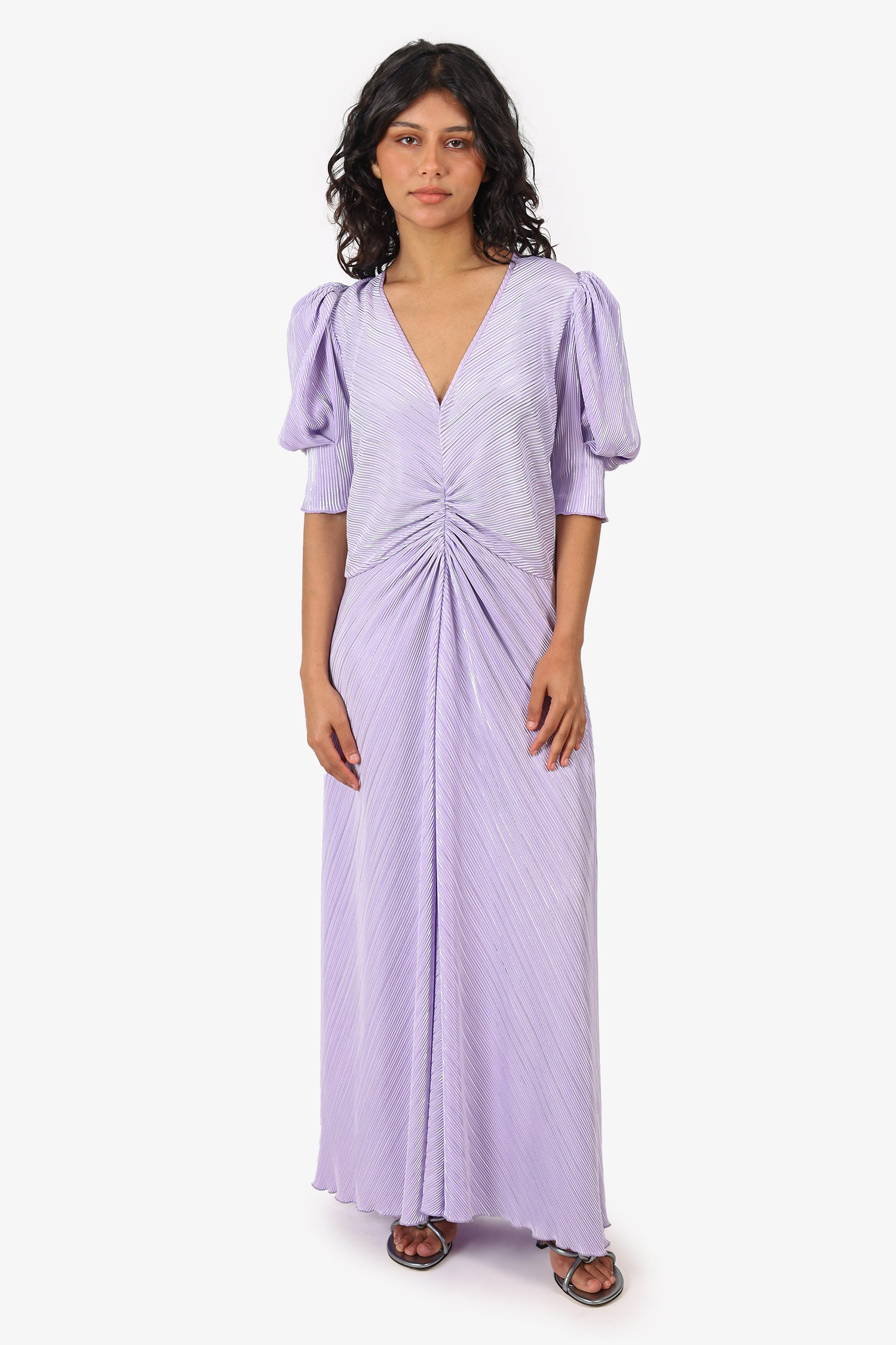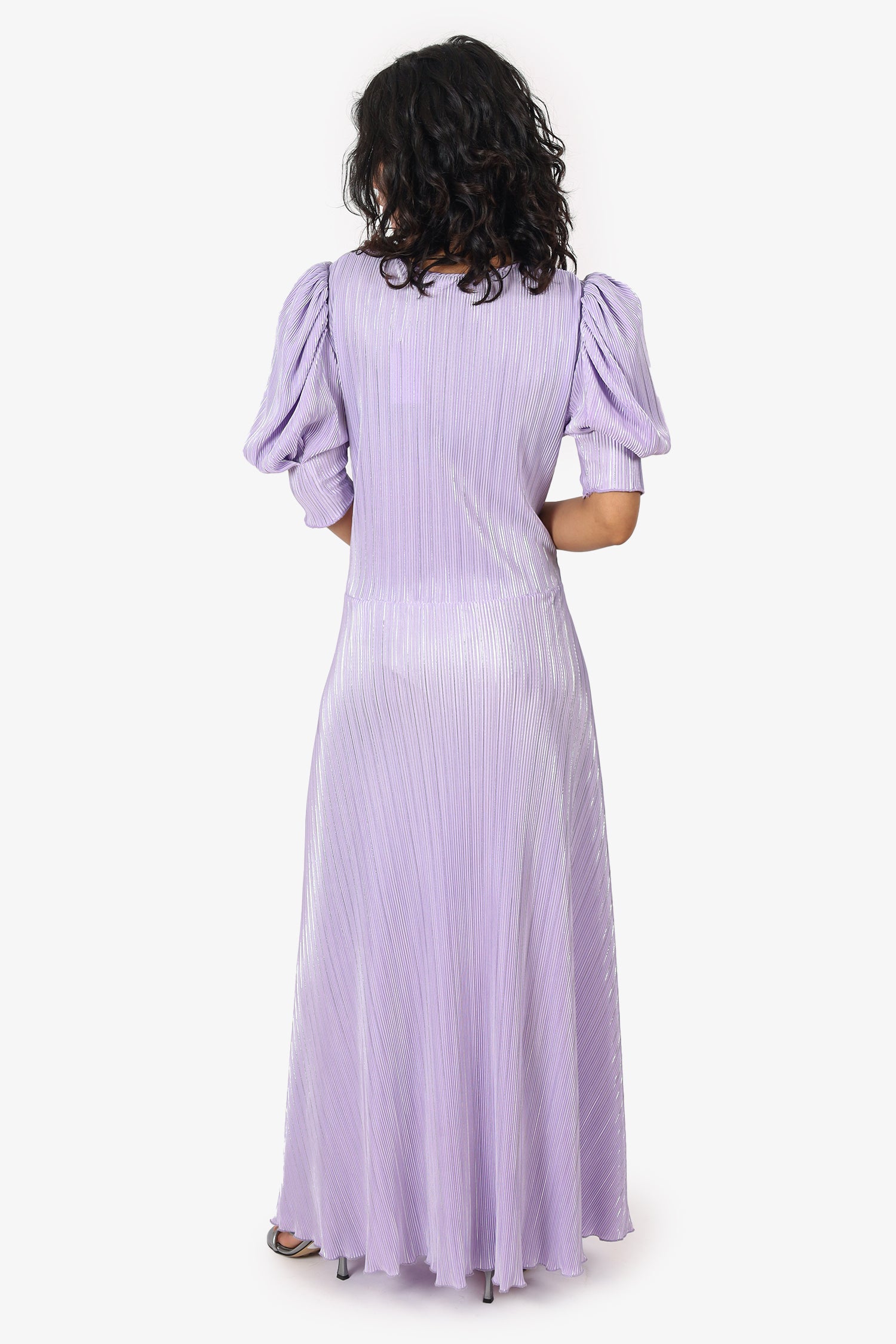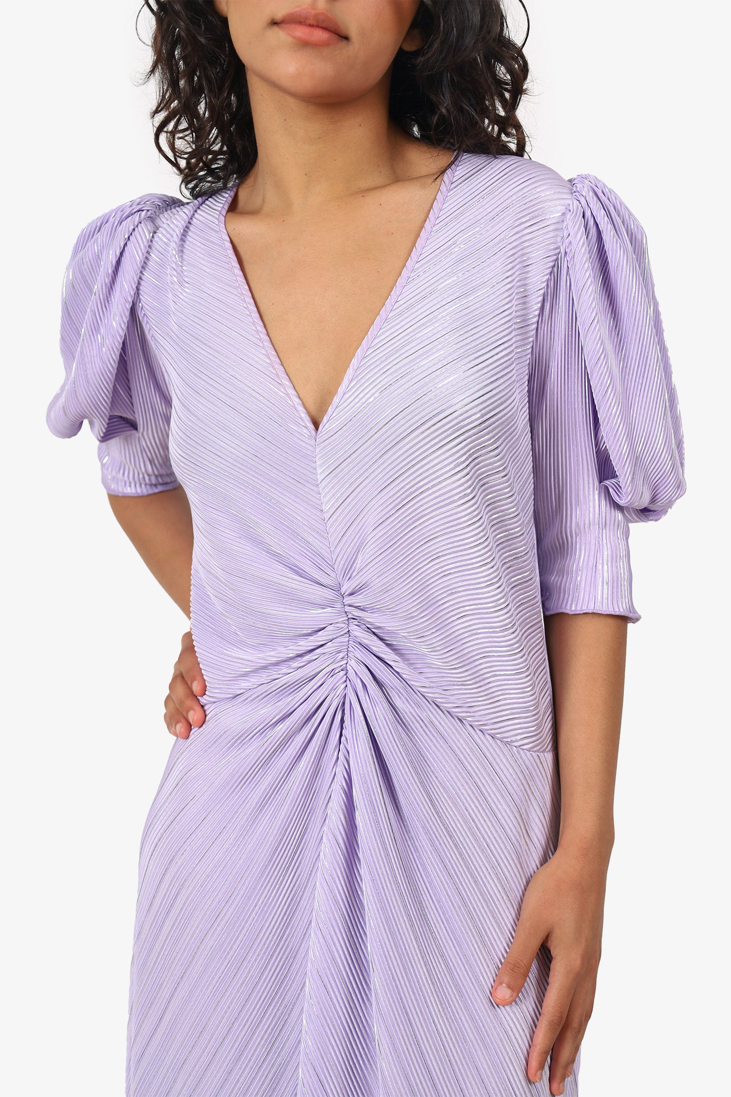 Refresh availabilityRotate Birger Christensen Purple Puff Sleeve Sierina Dress. Slip-on. V-neckline. Tonal stitching.