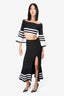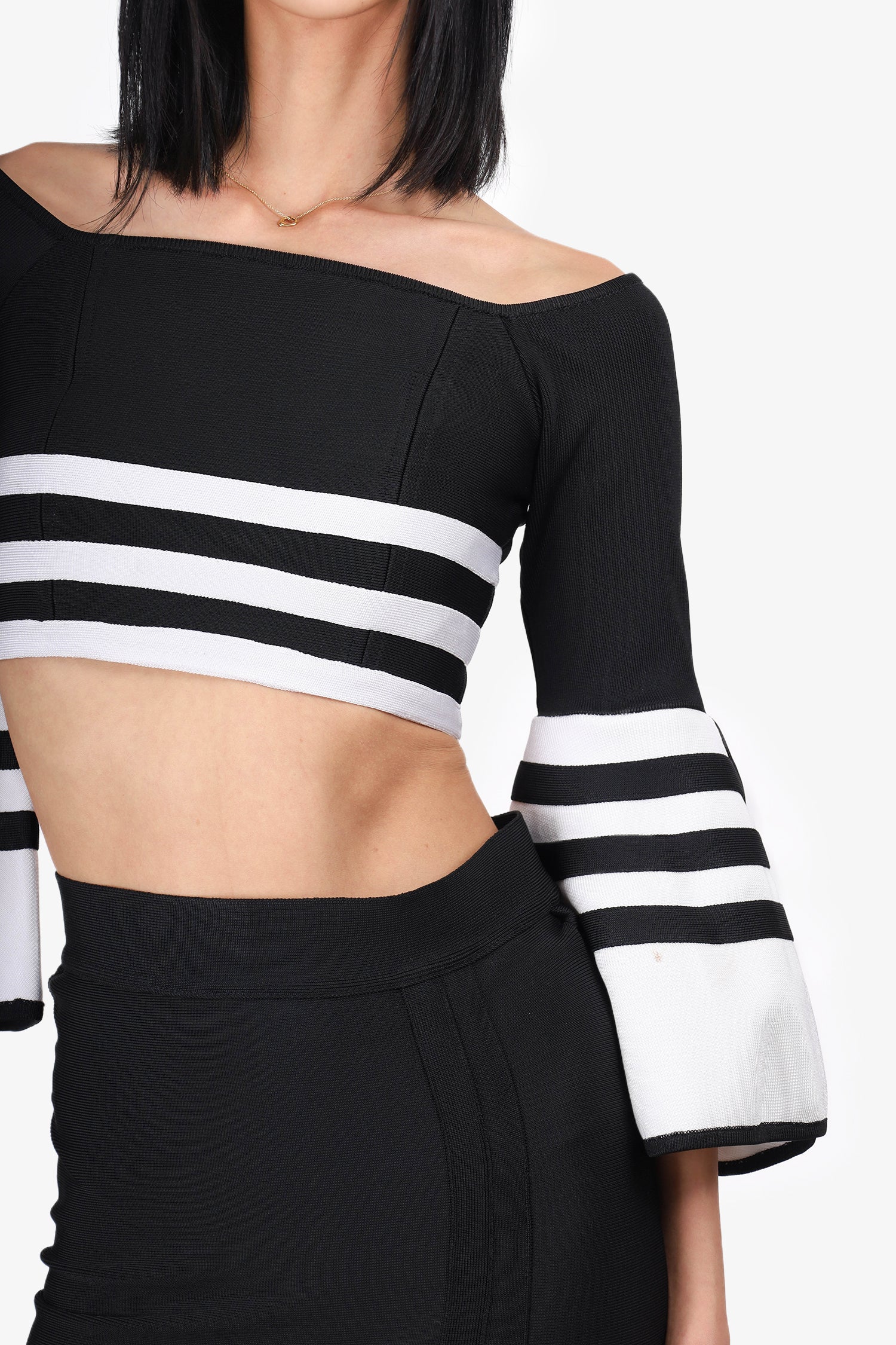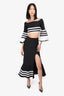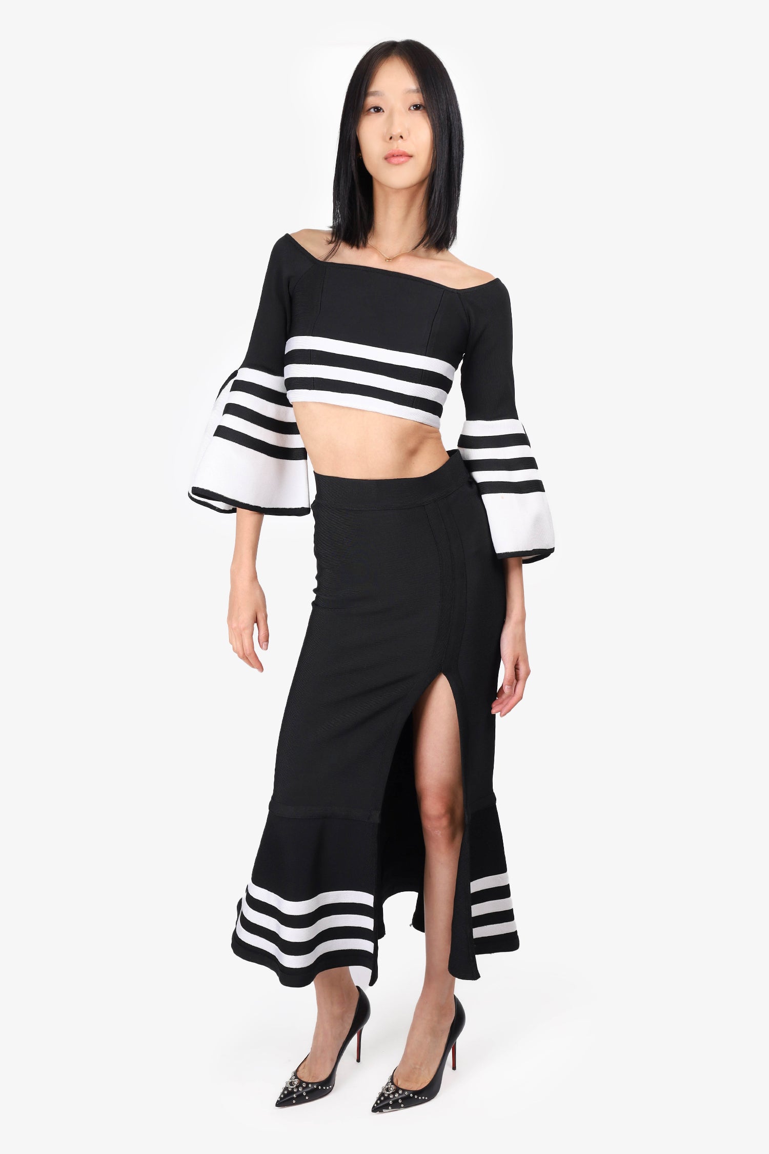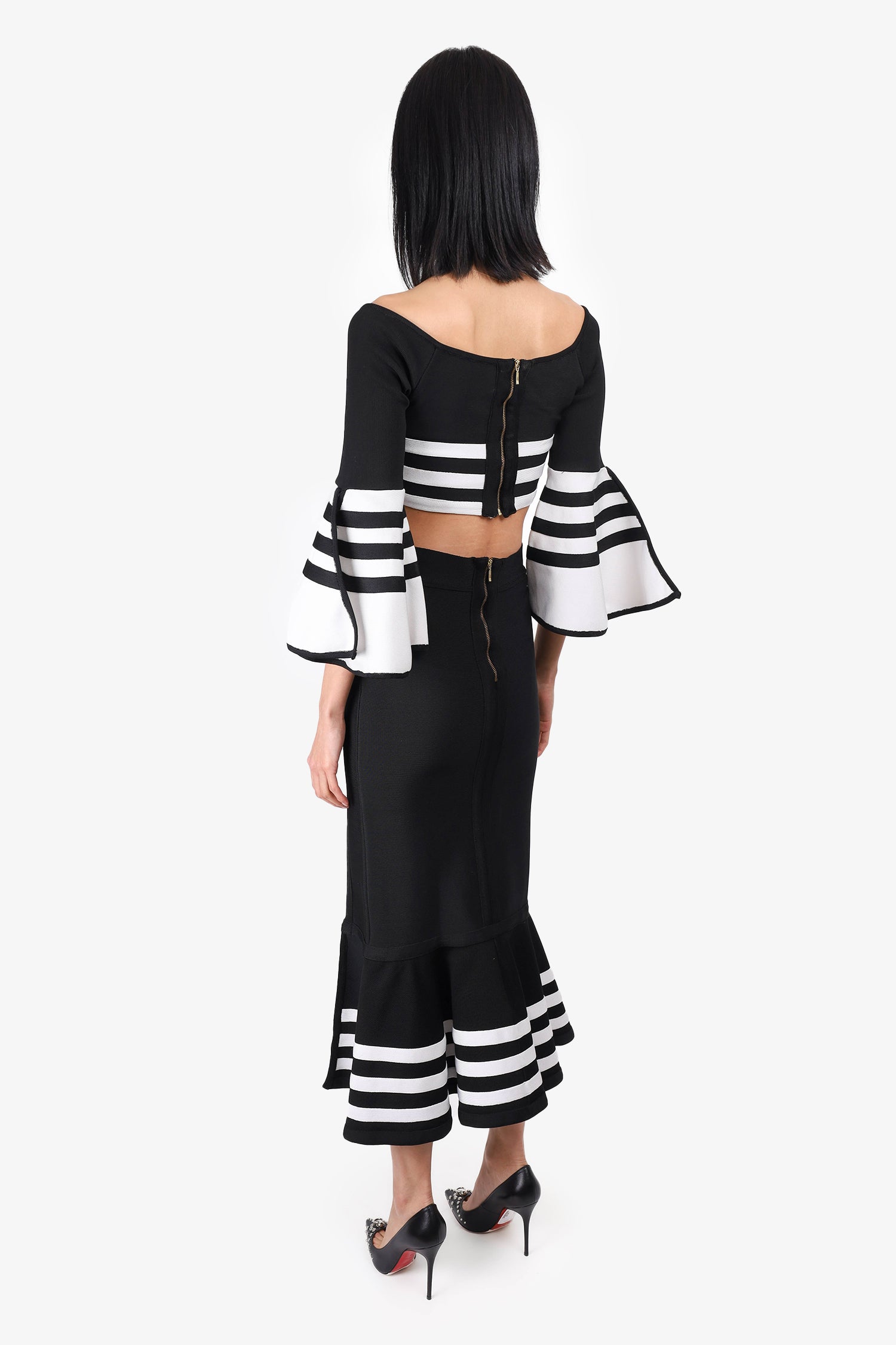 Refresh availabilityS Club Black/White Stripe Top and Skirt. Rear zip closure. Off the shoulder neckline. Tonal stitching.