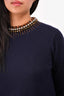 Sacai 2011 Navy Wool/Silk Crystal Embellished Cardigan Size 2