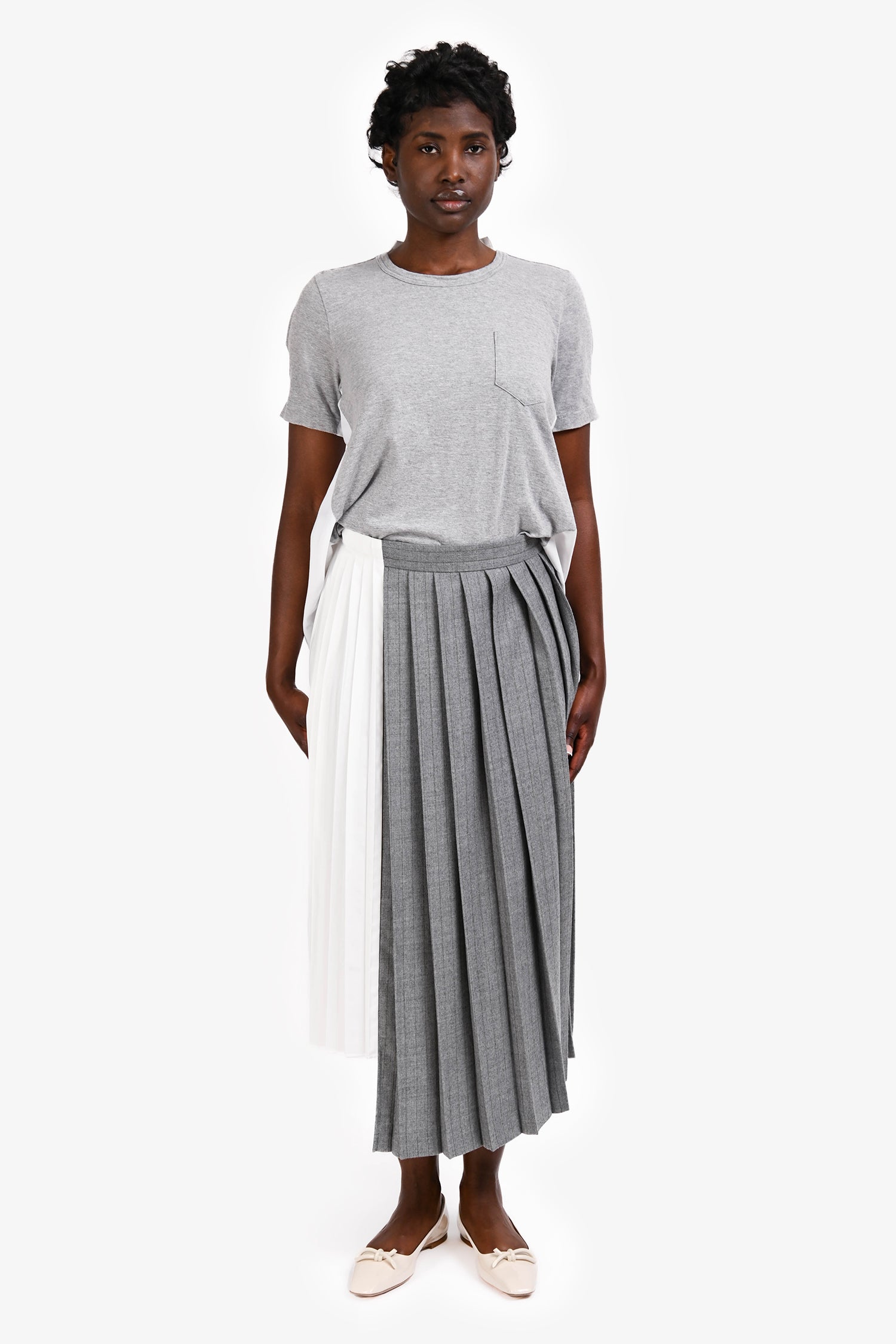 Sacai 2023 Grey/White Wool Blend Pleated Midi Skirt Size 3