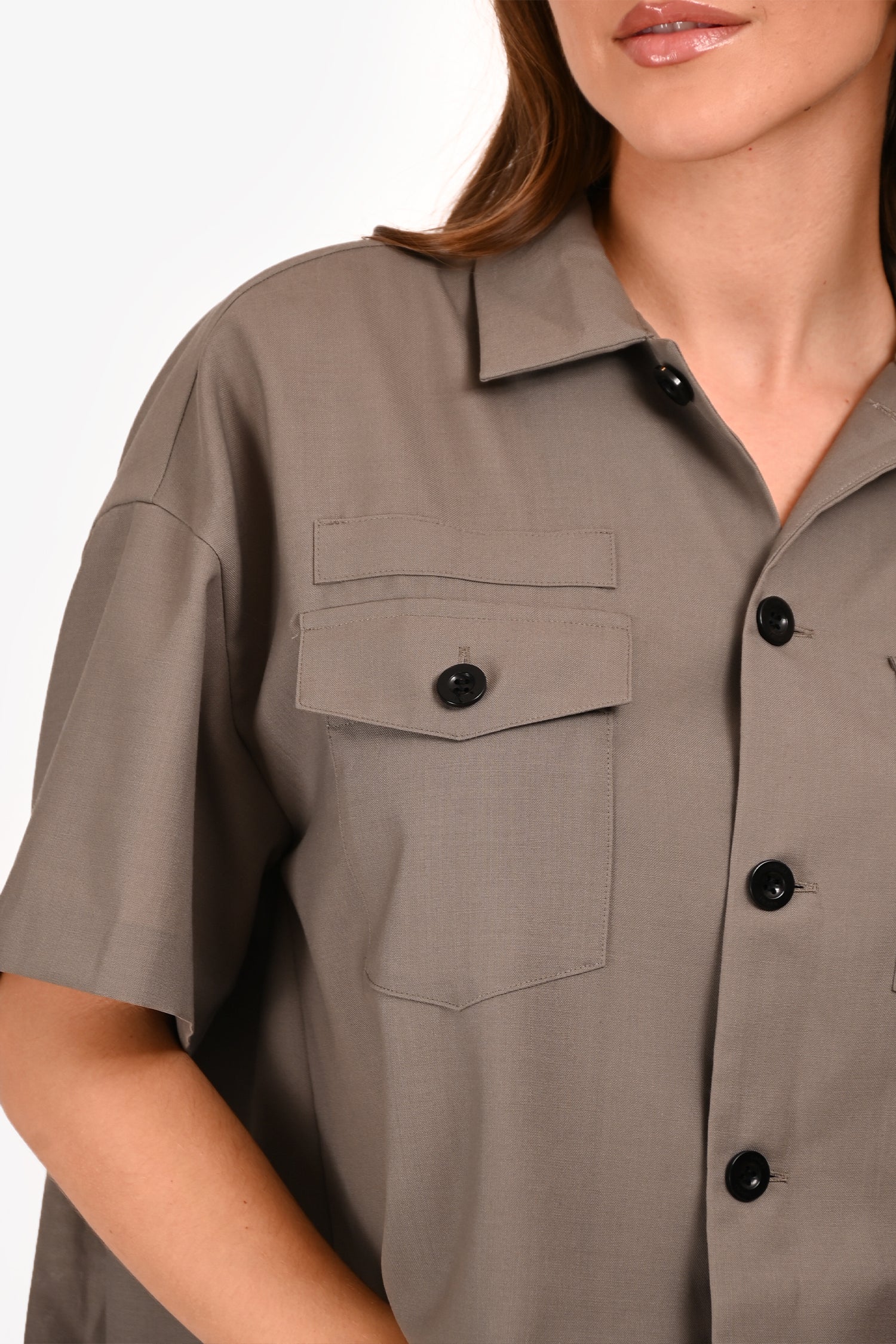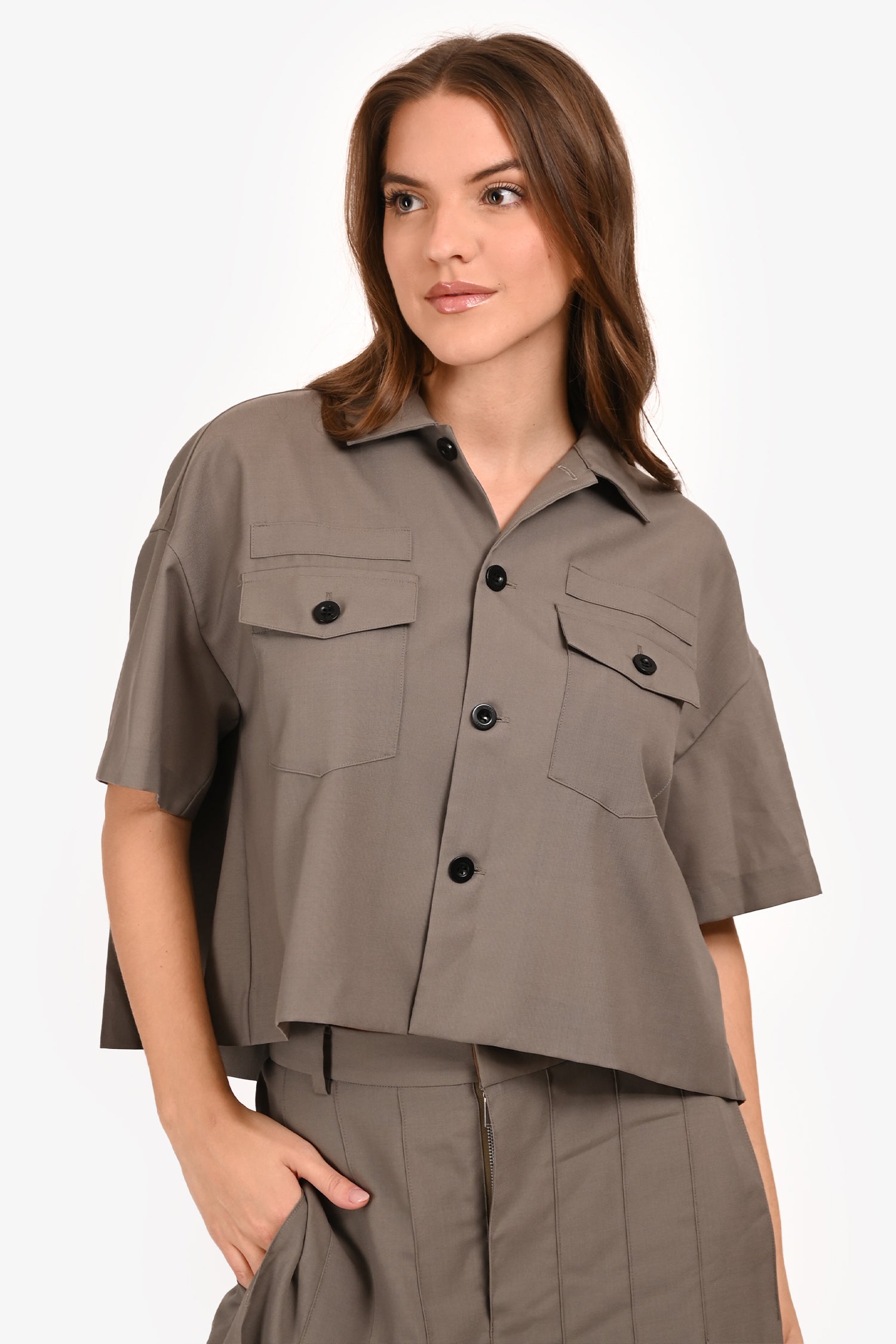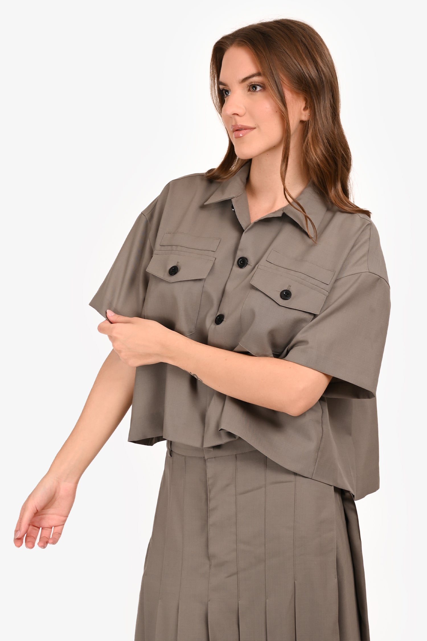 Sacai 2025 Green Pleated Back Short Sleeve Button Up Shirt Size 1