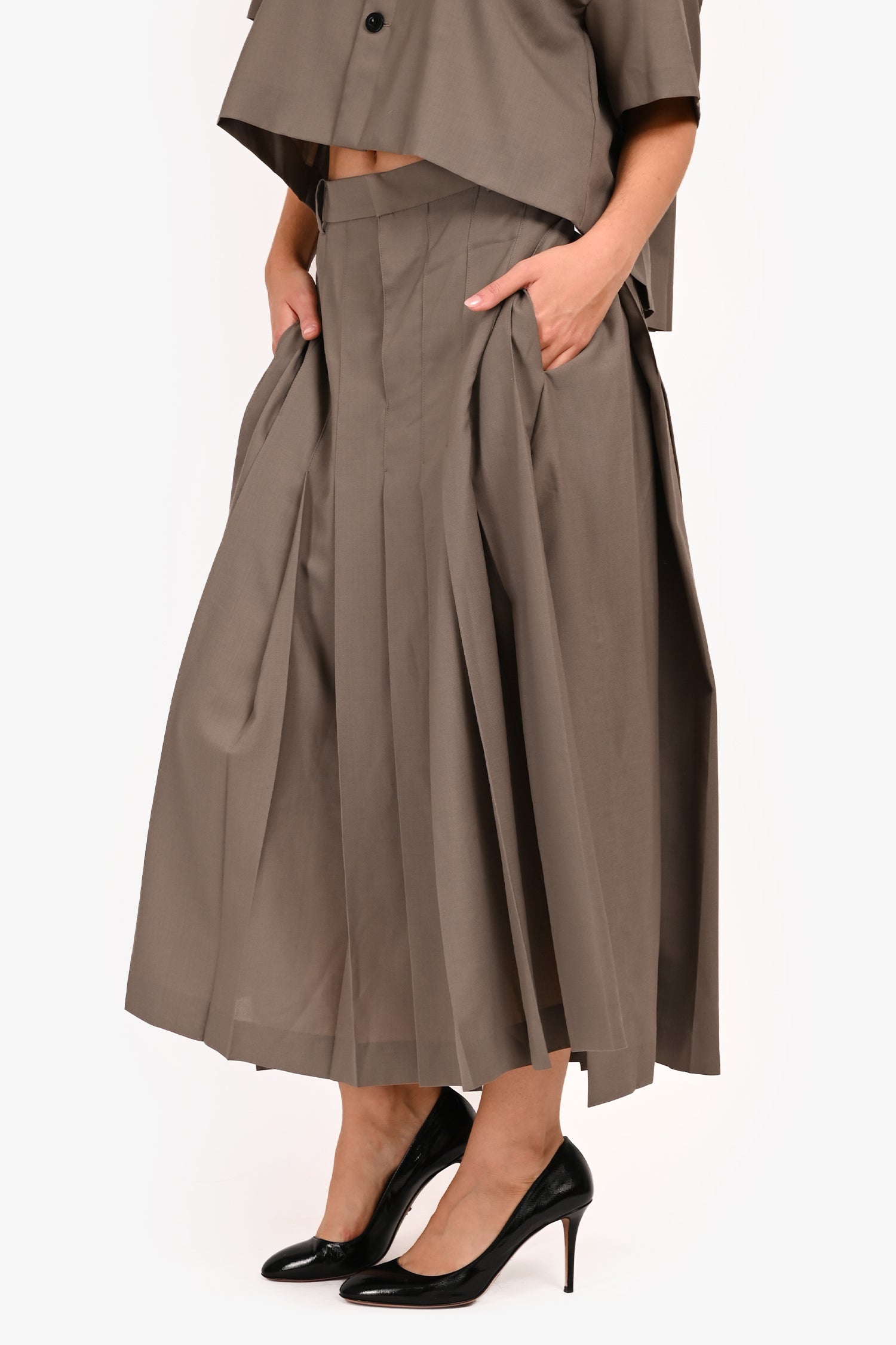 Sacai 2025 Green Pleated Midi Skirt Size 3