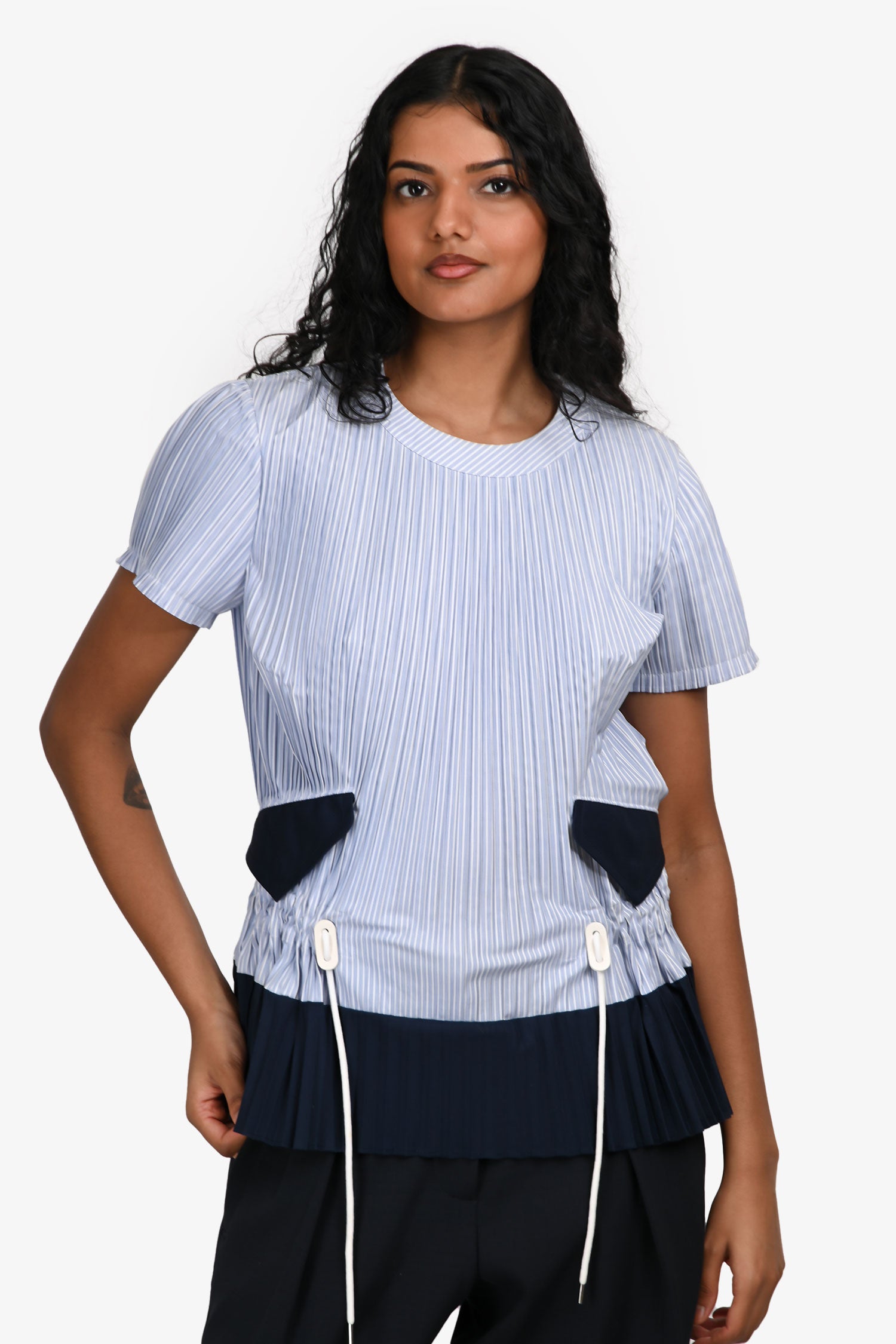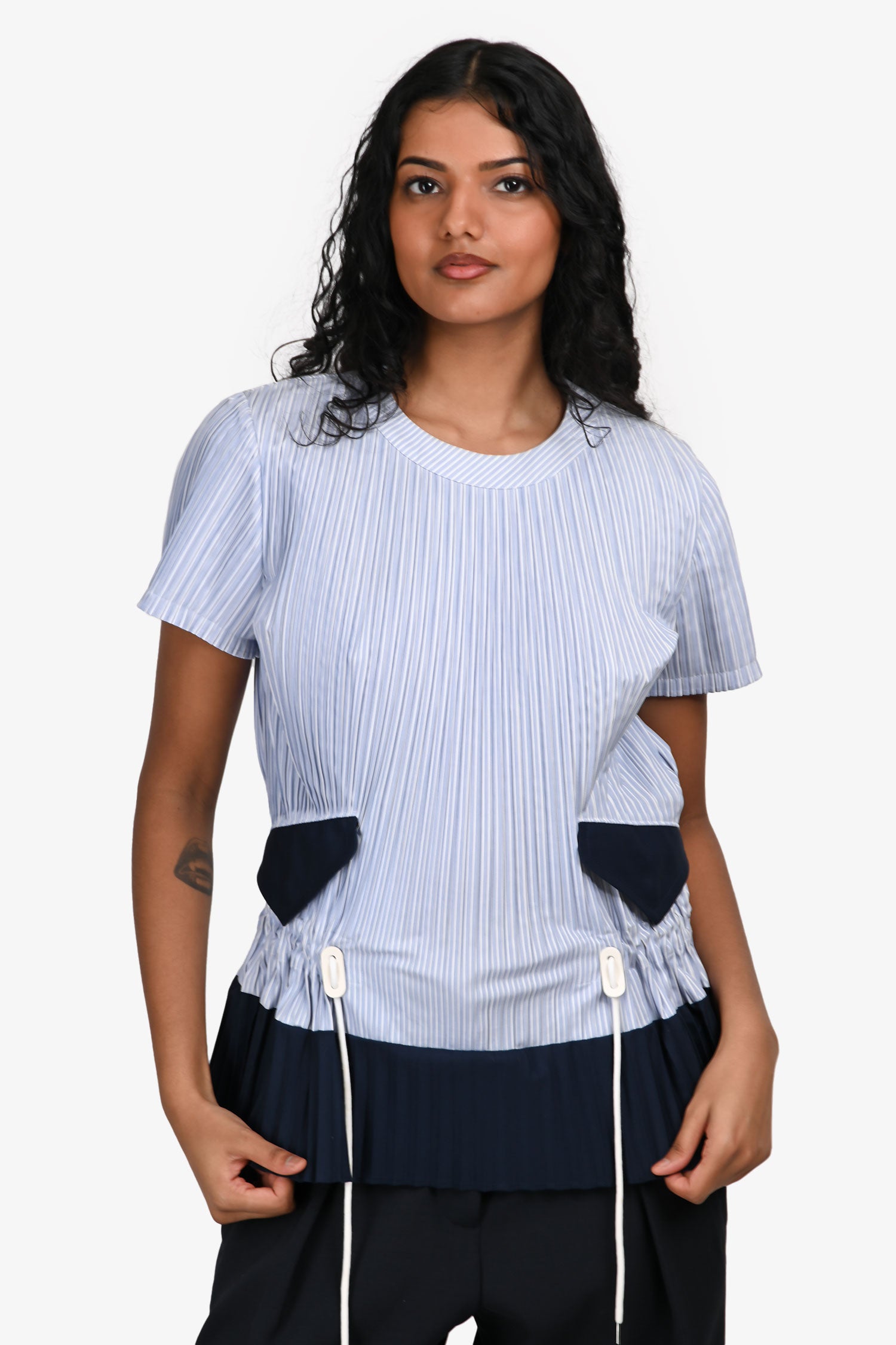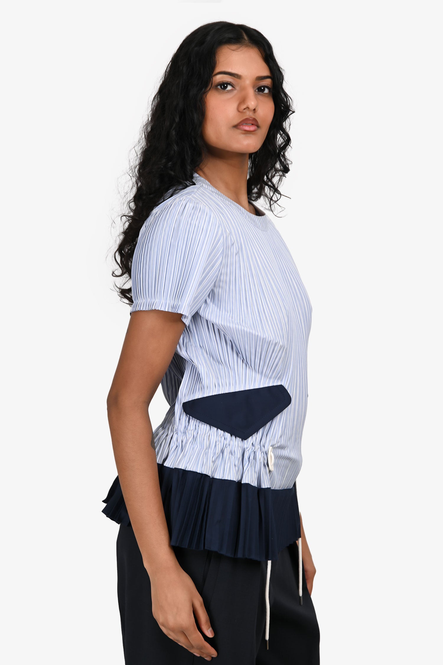 Sacai Blue Striped Cotton Front Pocket Pleated Top Size 1